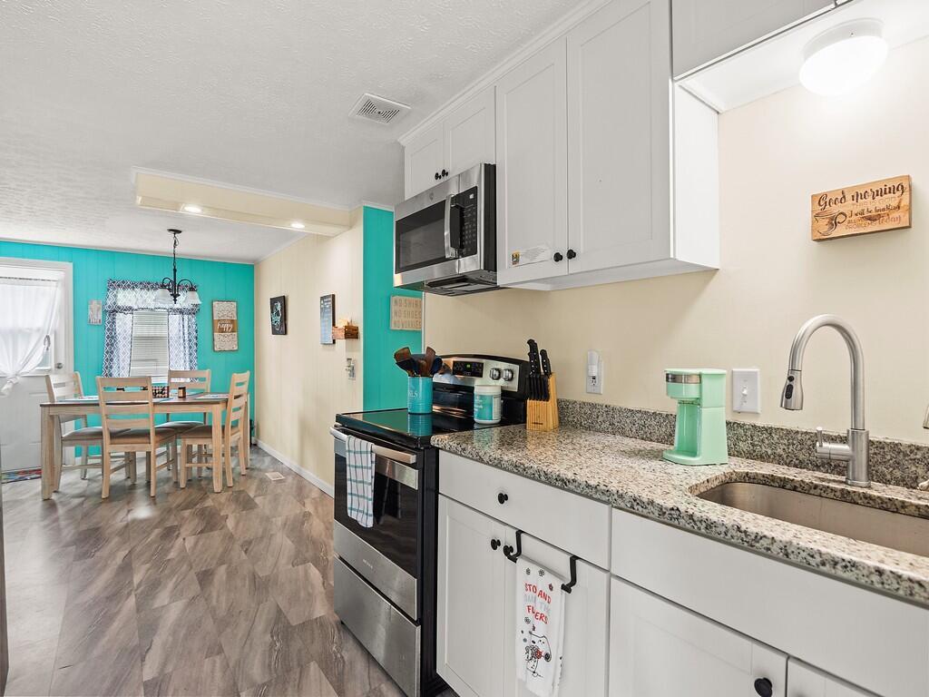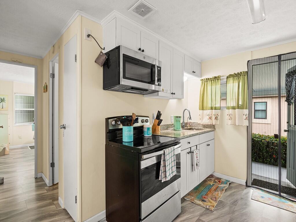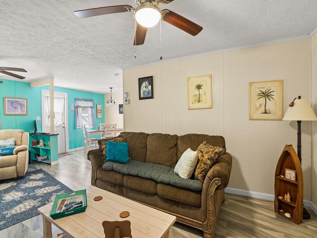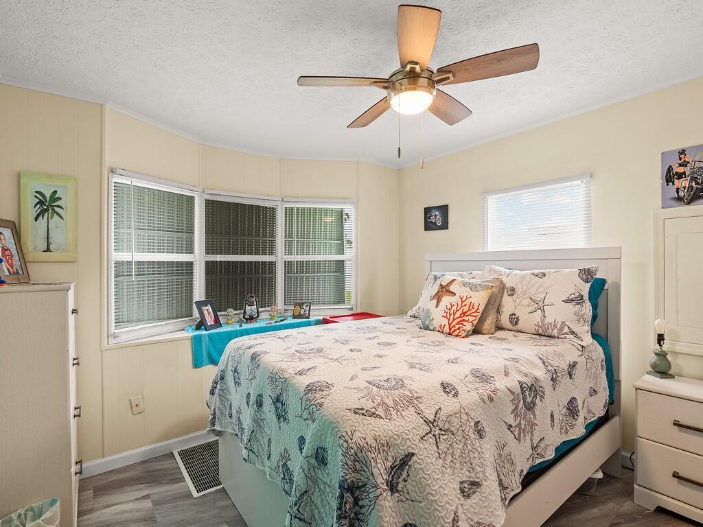 MOTIVATED SELLER for this charming 2/2 manufactured home nestled in the heart of the sought-after 55+ community of Spanish Lakes One. This inviting residence offers over 1000 sq ft of comfortable living space, thoughtfully upgraded with granite countertops, stainless steel kitchen appliances, and laminate flooring throughout. Recent improvements include a new vapor barrier, new tie-downs, fresh lattice skirting, and a 15-year roof sealant, ensuring peace of mind and long-term durability. The spacious living room and Florida room provide ample space for relaxing or entertaining. Enjoy resort-style amenities just steps from your door--swimming pool, golf course, tennis courts, pickleball, bocce ball, clubhouse, and more. Lot rent is $800 per month and includes lawn maintenance