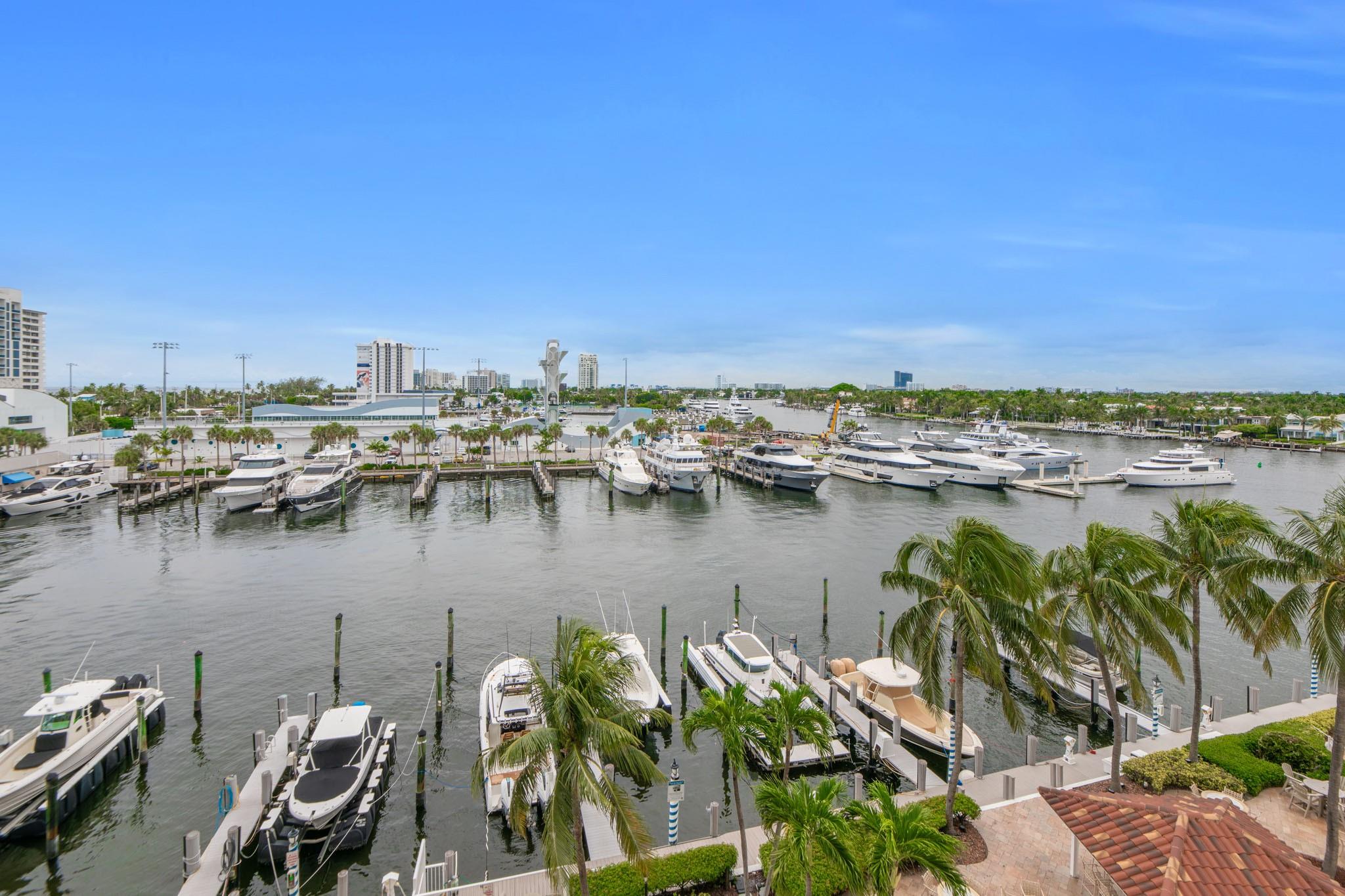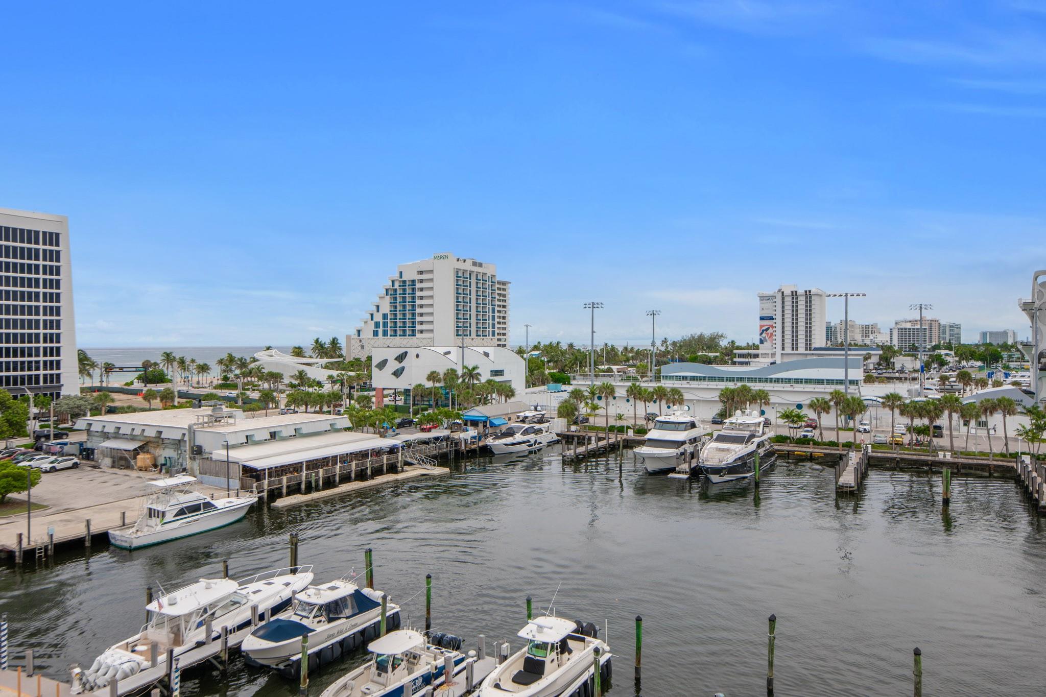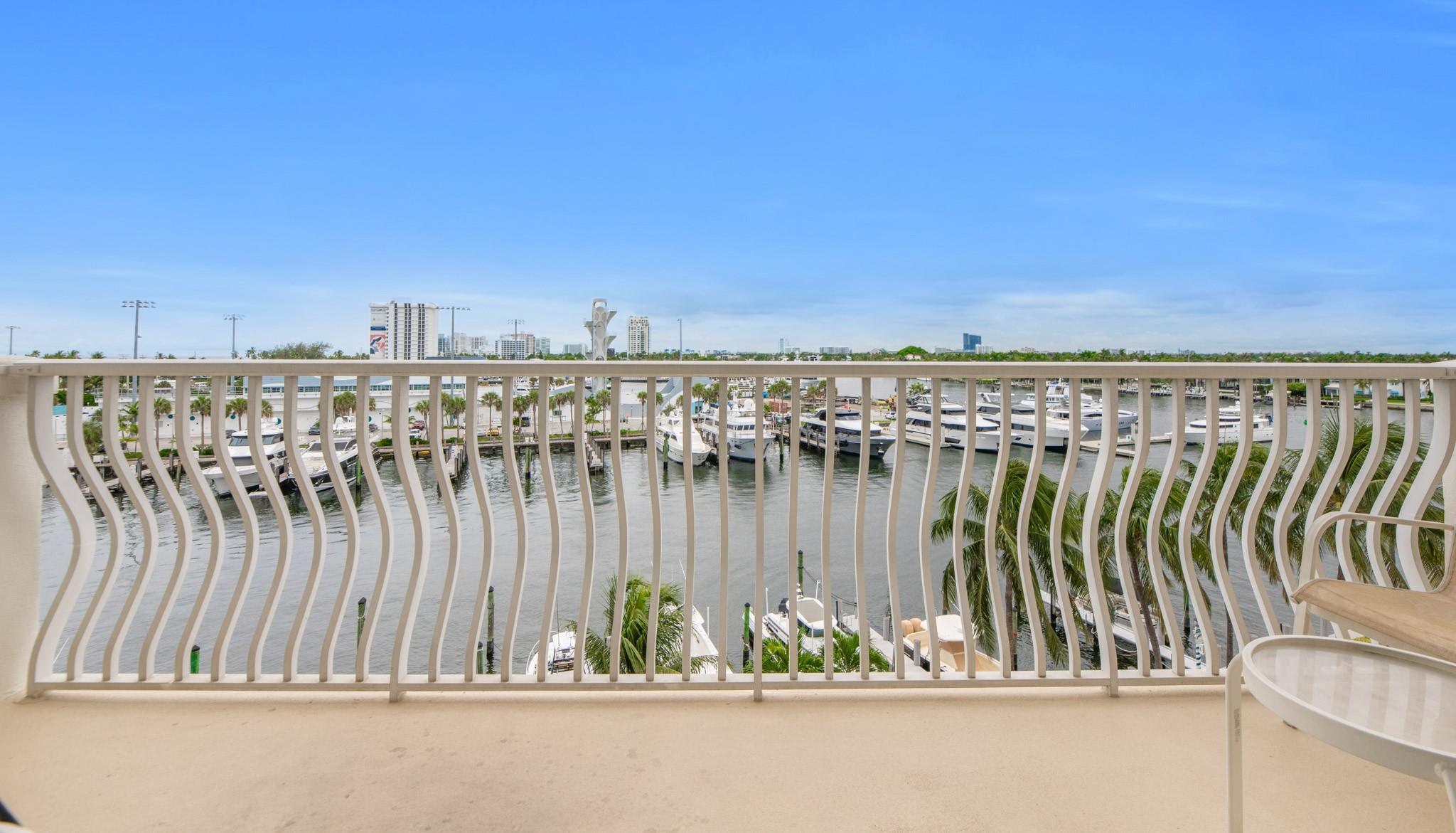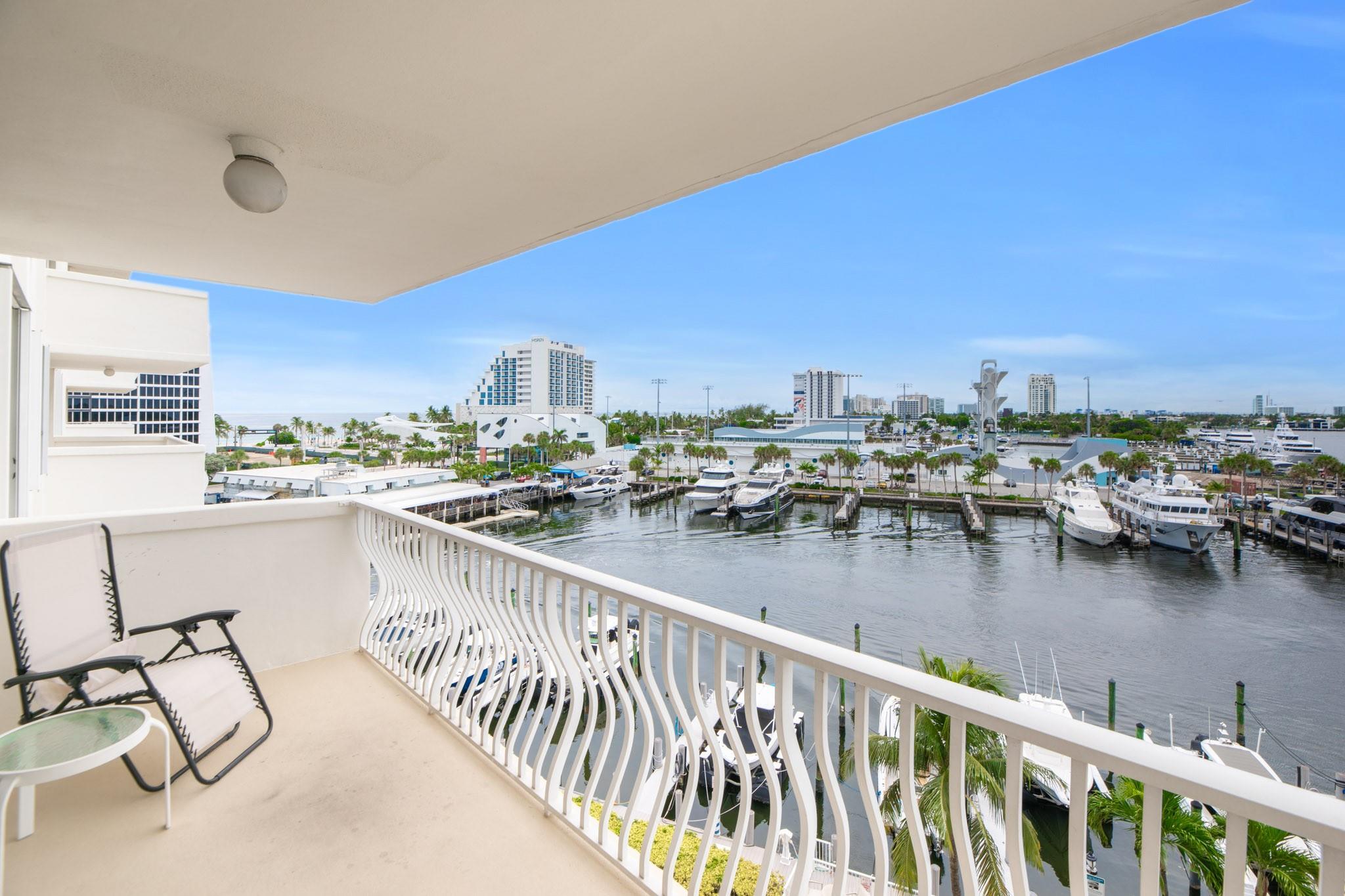 Stunning views of the Intracoastal Waterways, Atlantic Ocean and the beautiful City of Fort Lauderdale skyline. This 5th floor condo has a large balcony facing directly to the Swimming Hall of Fame (The Fort Lauderdale Aquatic Center) with the highest dive platform in the Western hemisphere at 27 meters. It has been substantially updated and in mint condition with 1500 sf, 2 bedrooms/2 baths split floor plan. The Venetian is located just across from the beach in a very desirable "Resort style" building with Tiki Bar, Spa, Pool, Gardens, Library w/ free WiFi, 24hr Security, ping-pong, billiard and a large fully equipped 24 hrs fitness center. Internet and basic cable are included in the low monthly maintenance fee. Dockage as available! A must see!