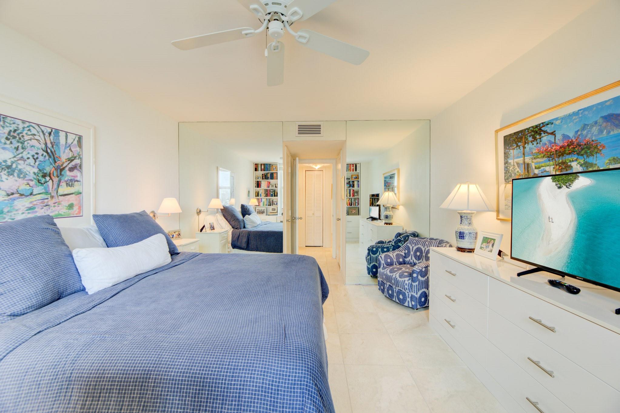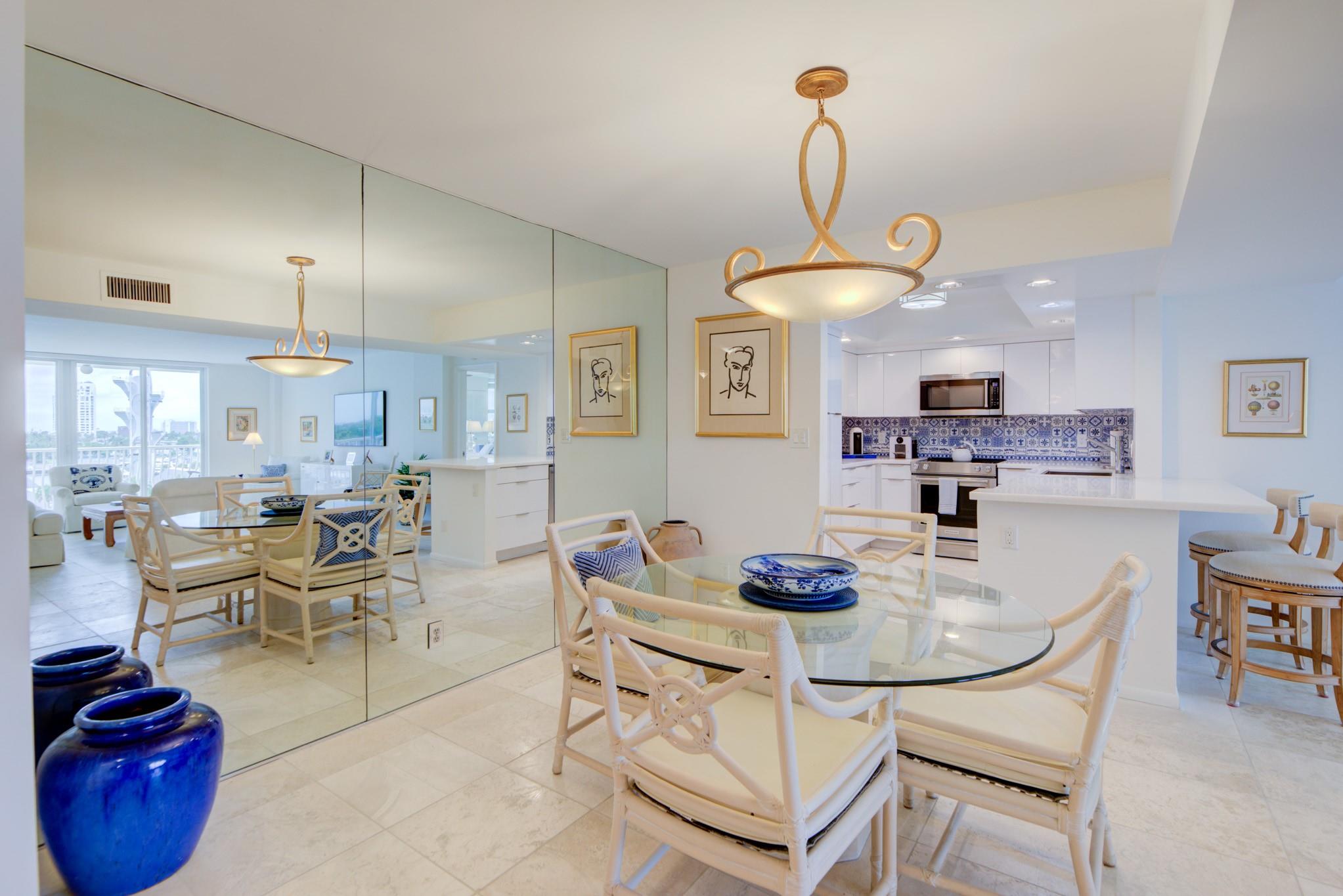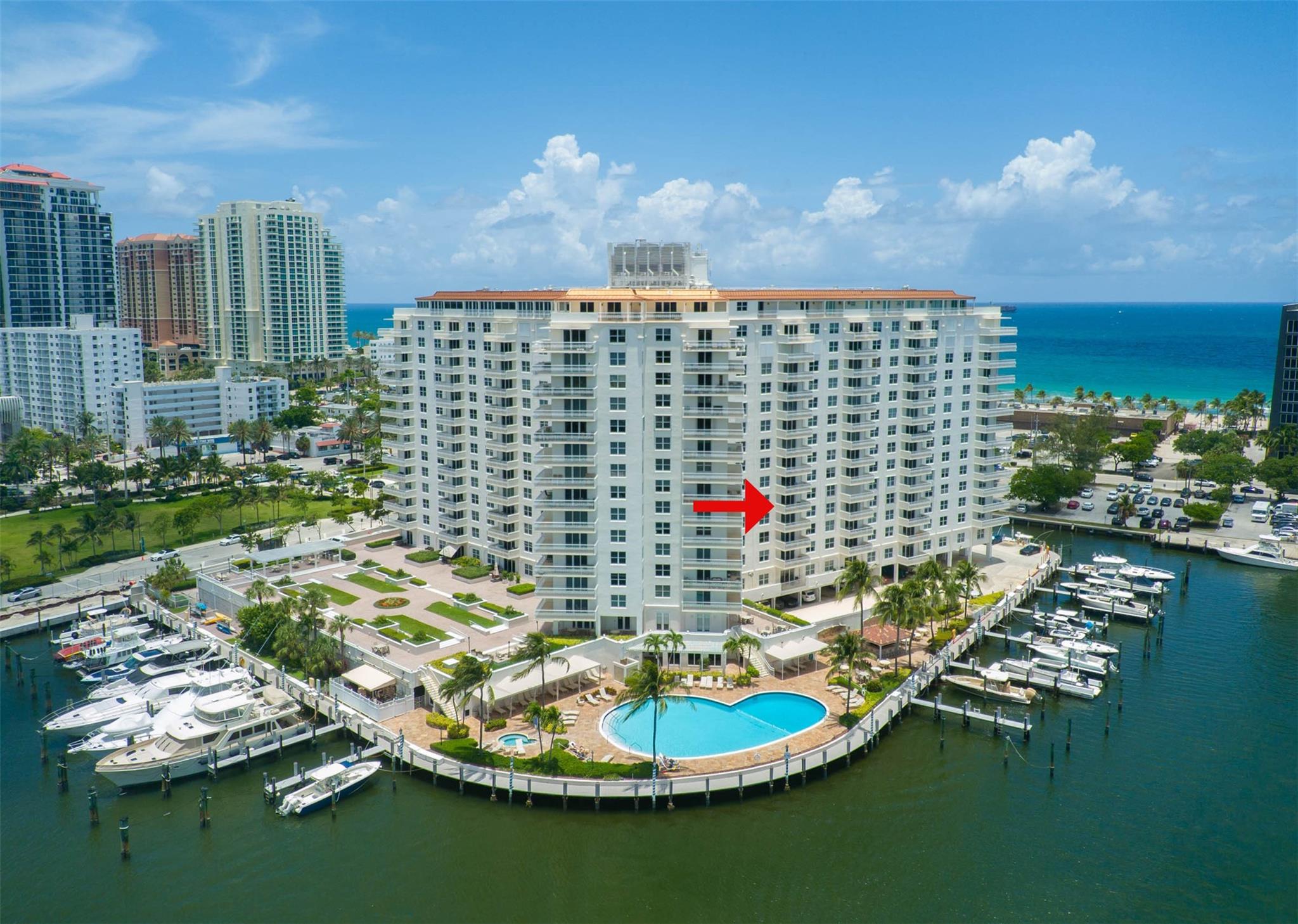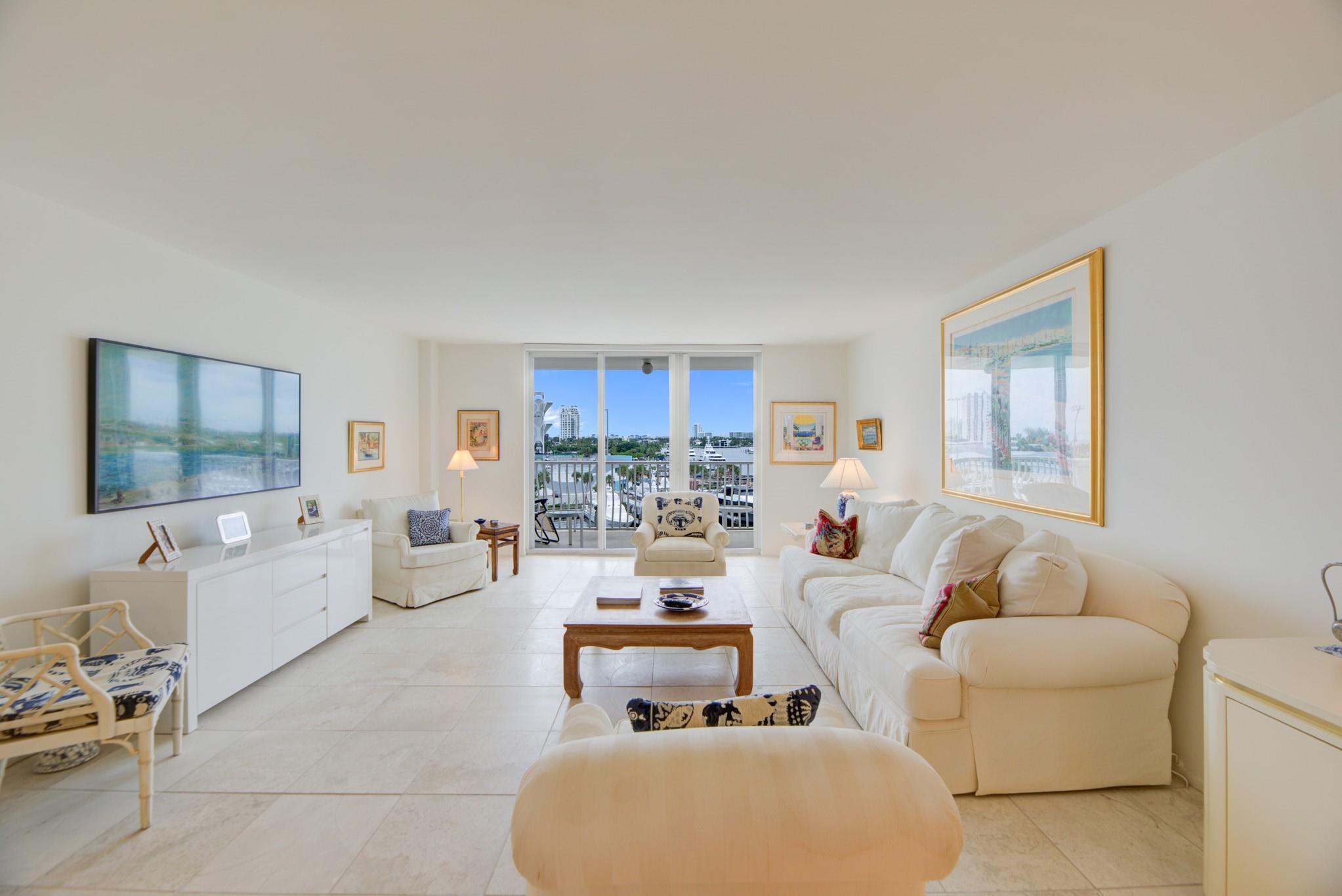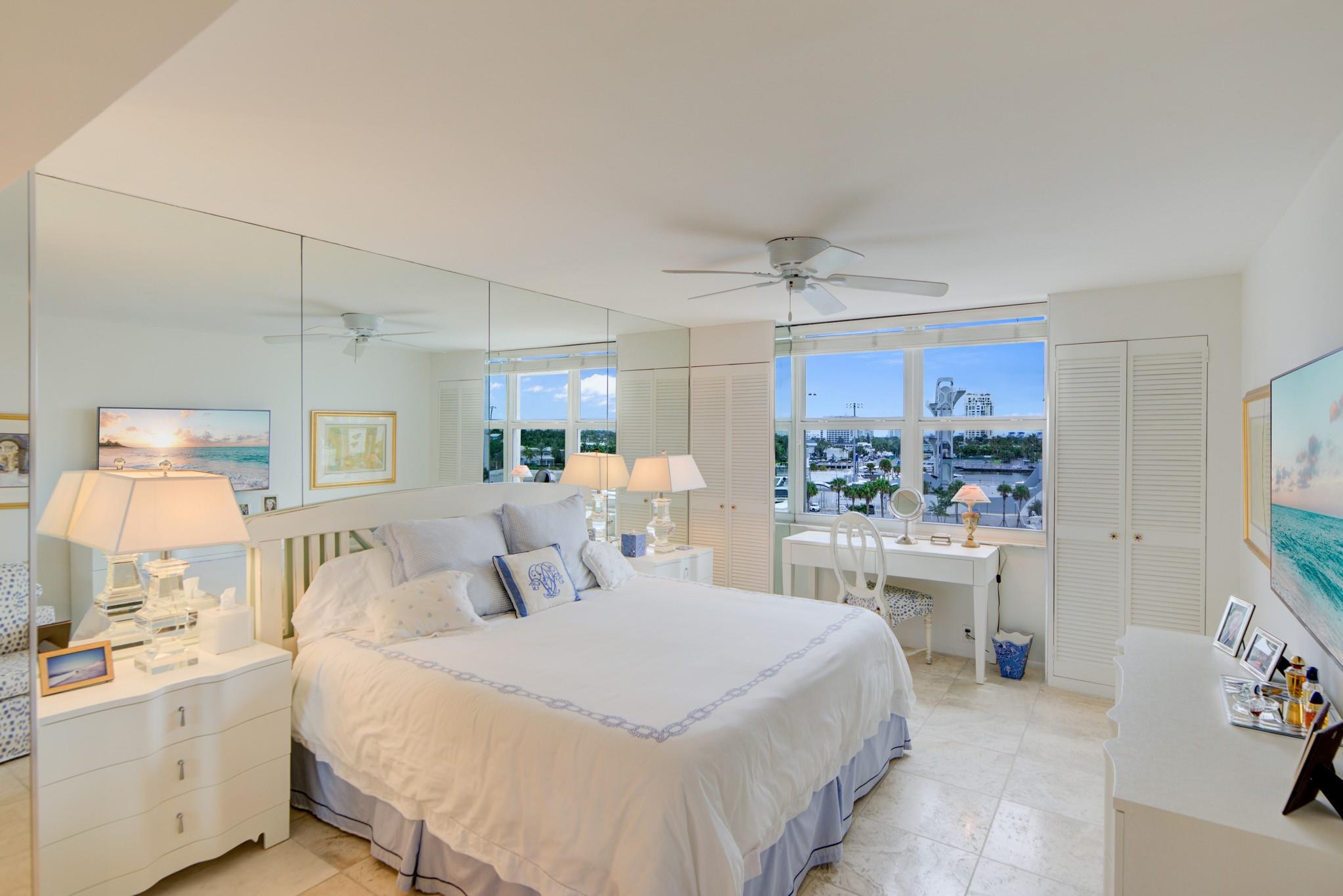 Stunning views of the Intracoastal Waterways, Atlantic Ocean and the beautiful City of Fort Lauderdale skyline. This 5th floor condo has a large balcony facing directly to the Swimming Hall of Fame (The Fort Lauderdale Aquatic Center) with the highest dive platform in the Western hemisphere at 27 meters. It has been substantially updated and in mint condition with 1500 sf, 2 bedrooms/2 baths split floor plan. The Venetian is located just across from the beach in a very desirable "Resort style" building with Tiki Bar, Spa, Pool, Gardens, Library w/ free WiFi, 24hr Security, ping-pong, billiard and a large fully equipped 24 hrs fitness center. Internet and basic cable are included in the low monthly maintenance fee. Dockage as available! A must see!