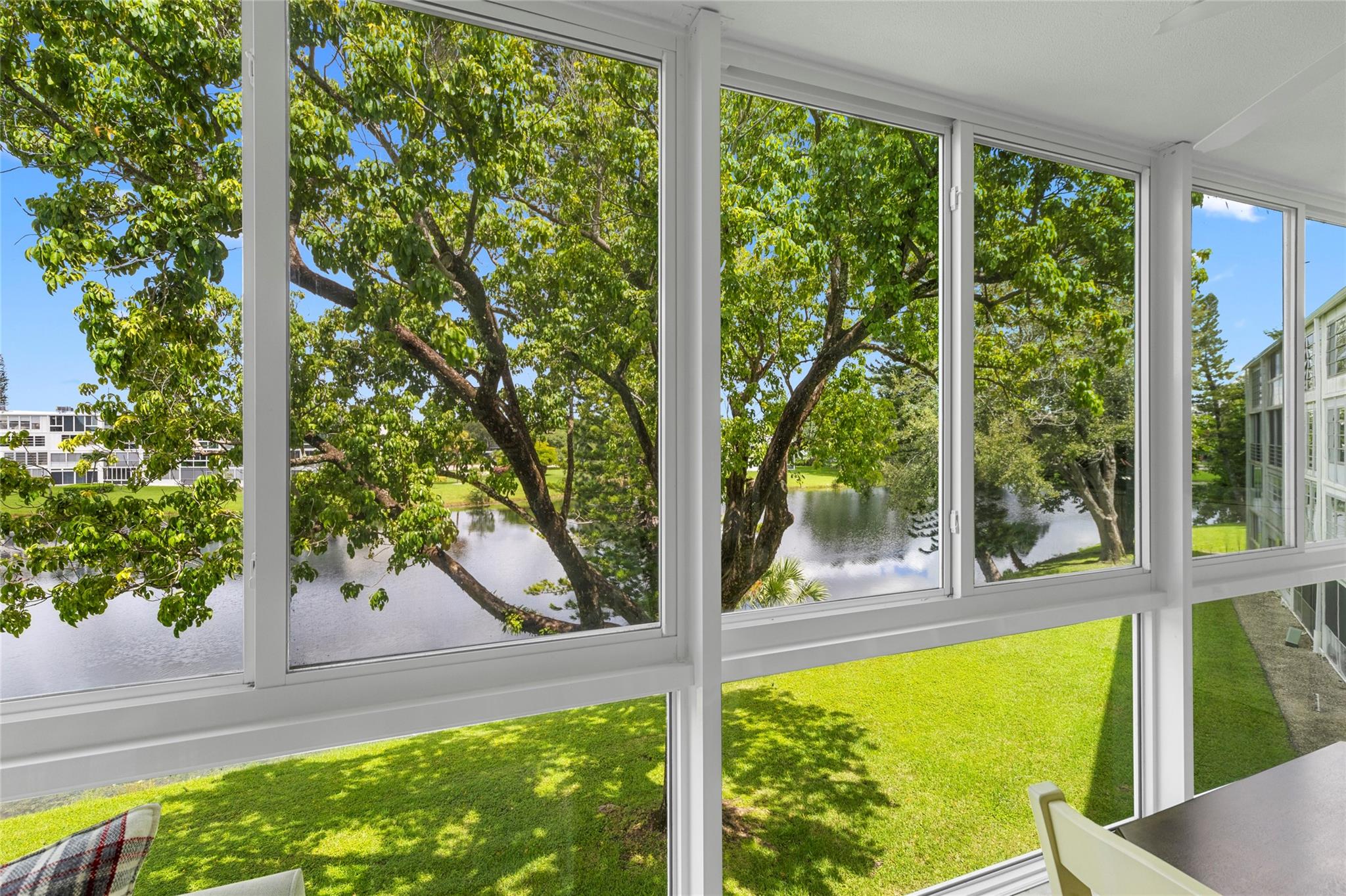 Water view condo - Century Village East. 1 bedroom and 1.5 bathroom on the 3rd floor of a desirable High-rise building. Patio/ Florida room and front door has impact windows installed in 2023. Patio is overlooking on the spectacular water view with nice and relaxing shade in the afternoon. Inside you will find bathroom with jetted tub. A/C is 4 years old. New elevator replaced in 2023. New roof replaced in 2025. Barbecue area. Condo is sold furnished. Painting in the living room and decorative items do not convey. Unit is very clean and ready to move in. 4 miles to the beach! Century Village has so much to offer. Free transportation to the shopping plazas, tennis courts, pickleball and Fitness Club with sauna, outdoor and indoor swimming pools This beautiful, safe home is waiting for you!