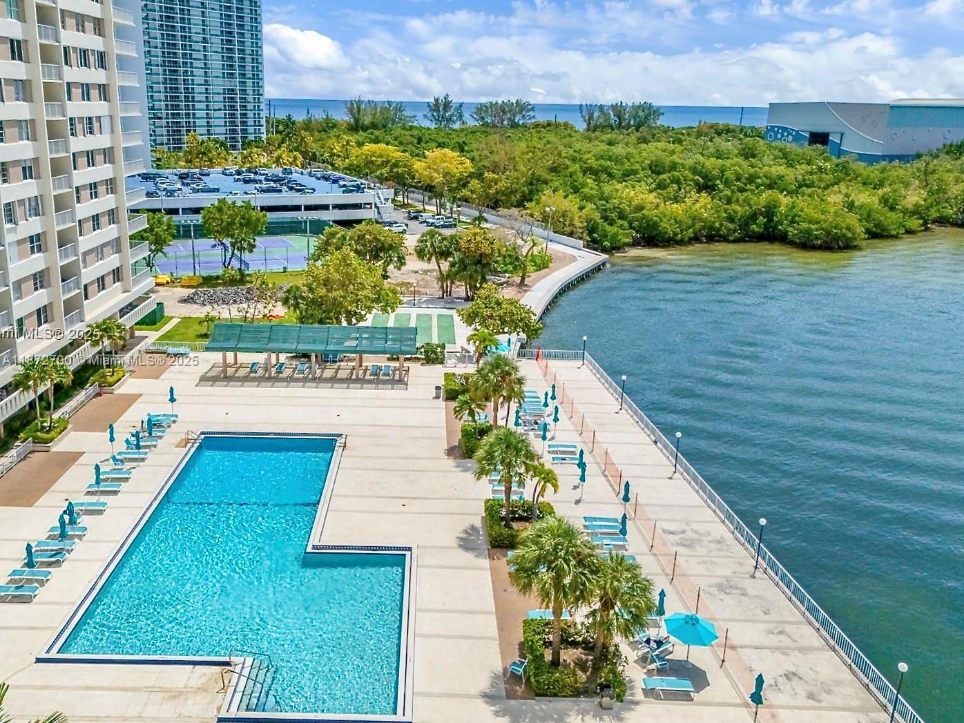 2Bd/2Bth Corner unit walking distance to the beach... a wraparound balcony and panoramic views, Impact Windows and Doors, NO popcorn ceilings, herringbone pattern marble floors, LED illuminated, anti-fog, bluetooth bathroom mirror, recessed lighting throughout, Induction slide-in range, LG 28cu.ft. French door smart fridge, beverage/wine cooler, Bosch dishwasher, modern kitchen cabinetry, quartz counters, glass tile backsplash and more! Community amenities include a convenience store, tennis courts, gym, pool, billiards/table tennis room, and business center.