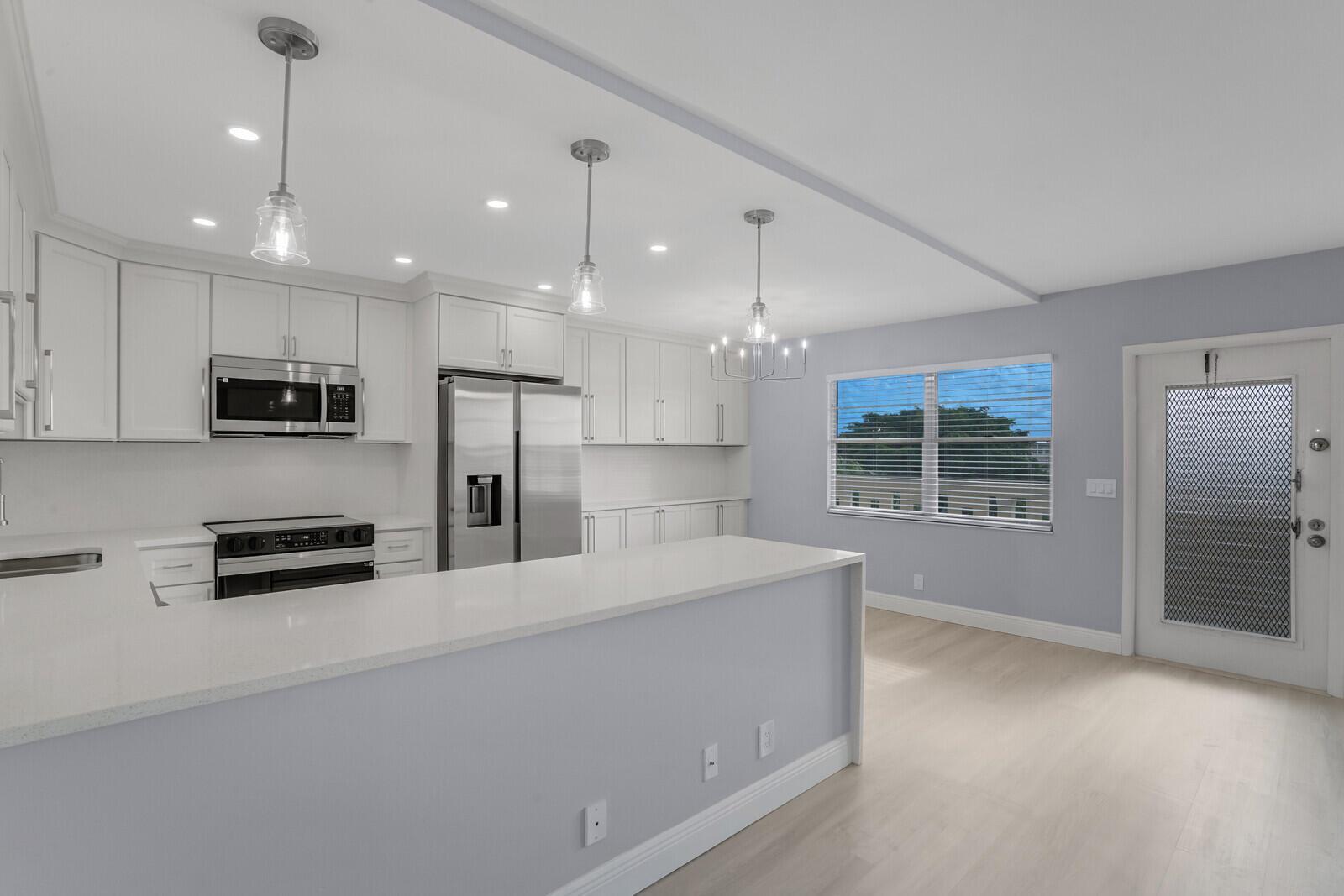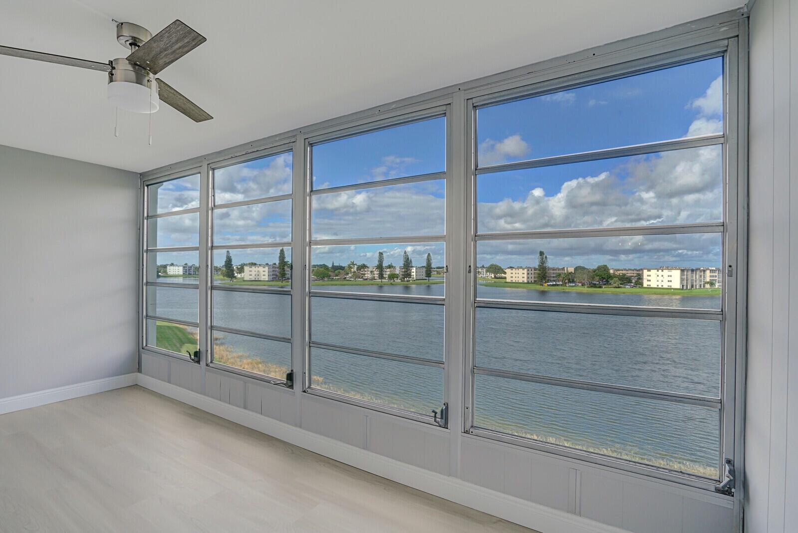 Enjoy incredible lake views from this gorgeously remodeled penthouse unit in Ainslie. Upgrades include, Luxury Vinyl flooring, expanded open concept kitchen w/ soft close cabinets, Quartz counters, Samsung appliances, double compartment SS sink, LED high hats, new fans & light fixtures. Baths have been renovated top to bottom w/ new vanities, quartz counters, new plumbing fixtures, porcelain tile walls & frameless glass shower doors. Custom shelving system installed in master closet. Amenities include internet, cable, fitness center, multiple swimming pools, movies, shows, bingo, classes, tennis, card rooms, bus transportation and close to shops and restaurant. Superb workmanship with breathtaking view. Must see!