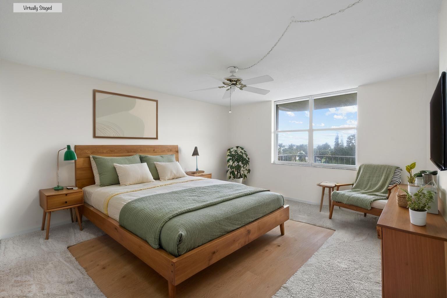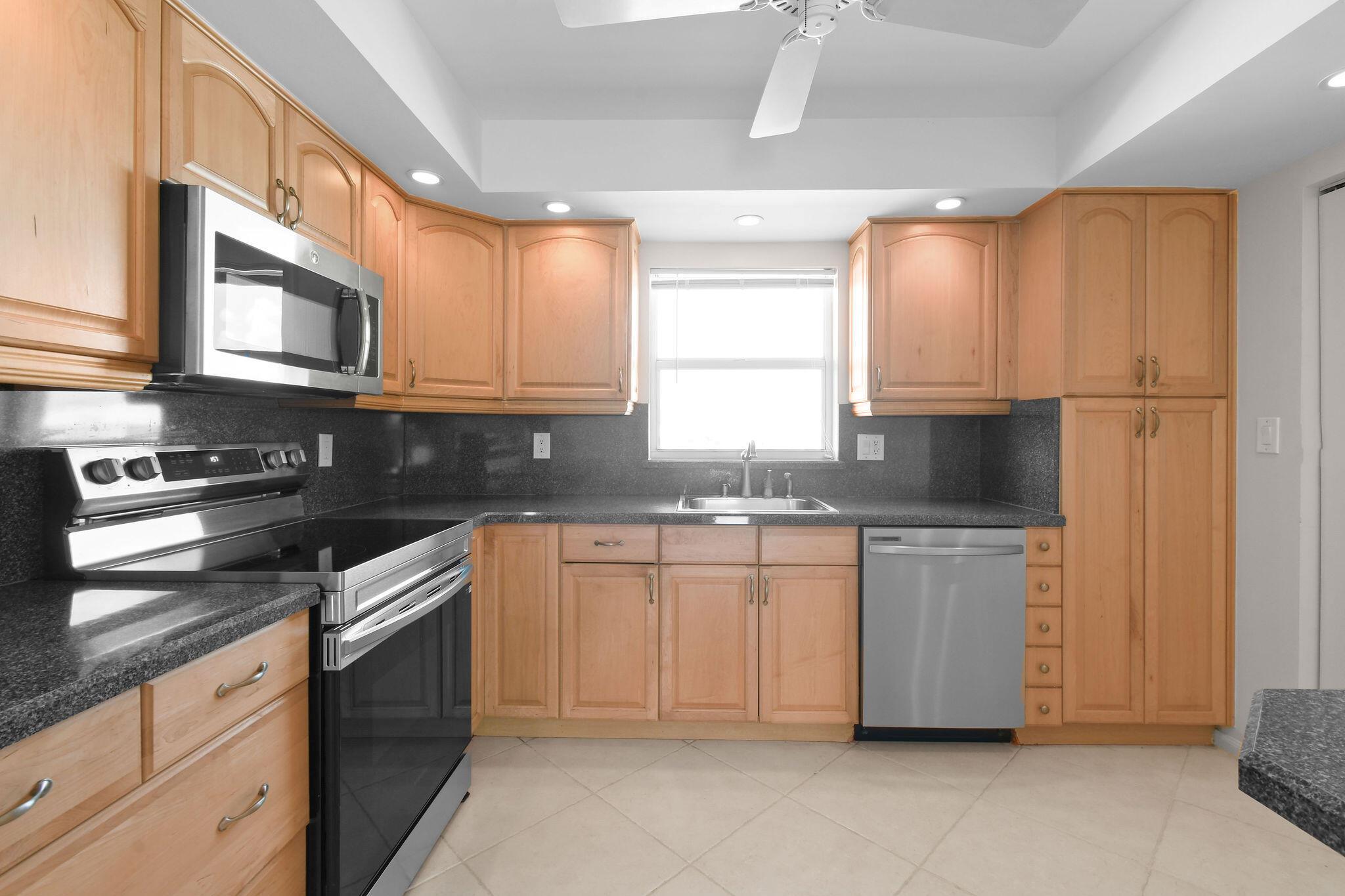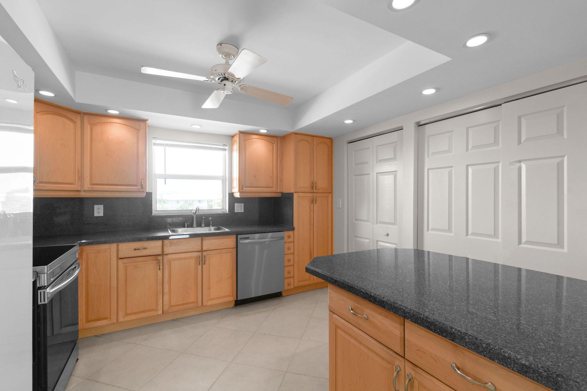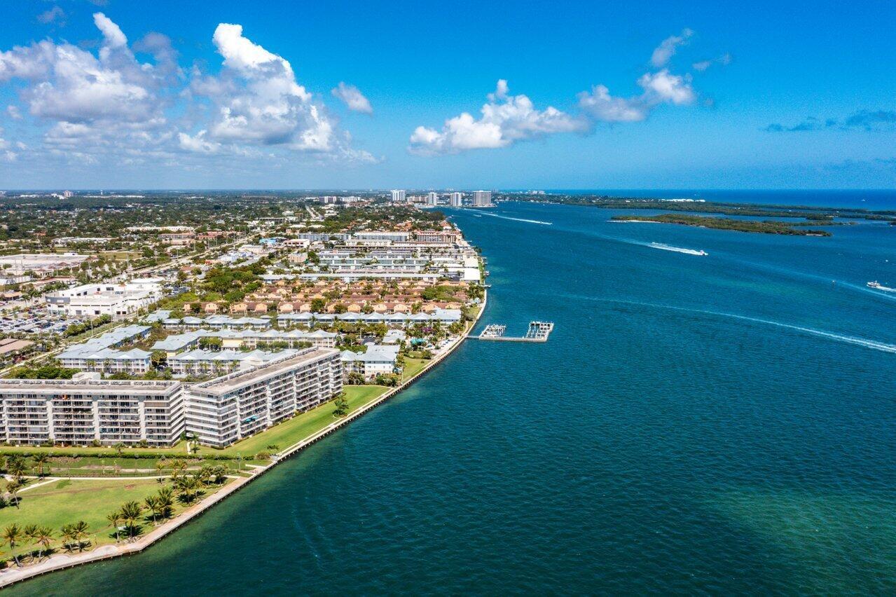Bright, breezy, and beautifully situated -- this updated corner unit offers a peaceful retreat overlooking the Intracoastal & Kelsey Park from a spacious covered balcony. The end unit includes extra windows that fill the home with natural light and features an extended kitchen with wood cabinetry, a pantry with pullout shelving, a double-shelf lazy Susan, and a peninsula-style island offering additional storage and workspace. New range and dishwasher. A closed-off laundry closet creates a clean, streamlined look. Both bathrooms are tastefully updated. Tile floors run throughout the main living areas, with new carpet in the bedrooms. Accordion shutters & more.55+, Waterfront community. Gated entry, Secured Bldgs. Covered Parking +++