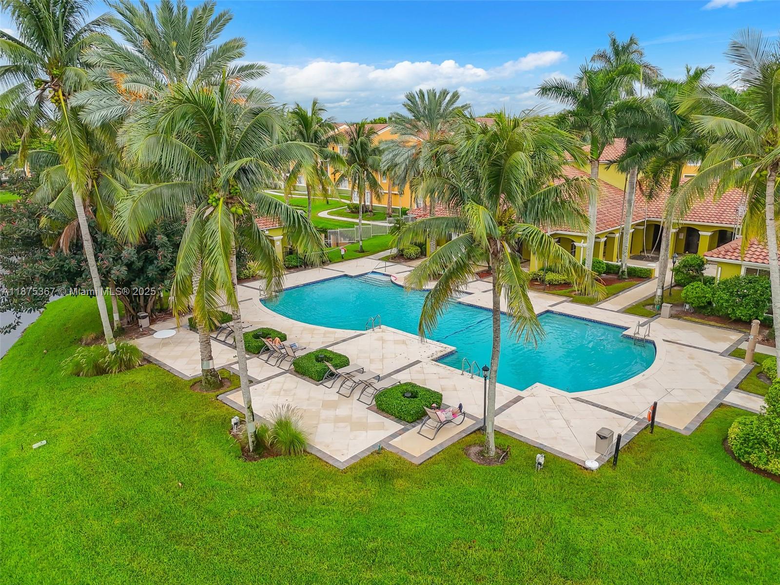 Welcome to Residences at Miramar! This spacious corner unit offers an updated kitchen with stainless steel appliances, in-unit washer/dryer, and a private balcony overlooking the tennis courts. Enjoy peace of mind with a new roof (2025) and newer A/C. Includes 2 parking spaces plus a private 1-car garage. The gated community features resort-style amenities: pool, gym, tennis court, playgrounds, and overnight security. Water included in HOA. Conveniently located near shopping, dining, and major highways. Eligible for conventional 5% down (subject to lender approval).