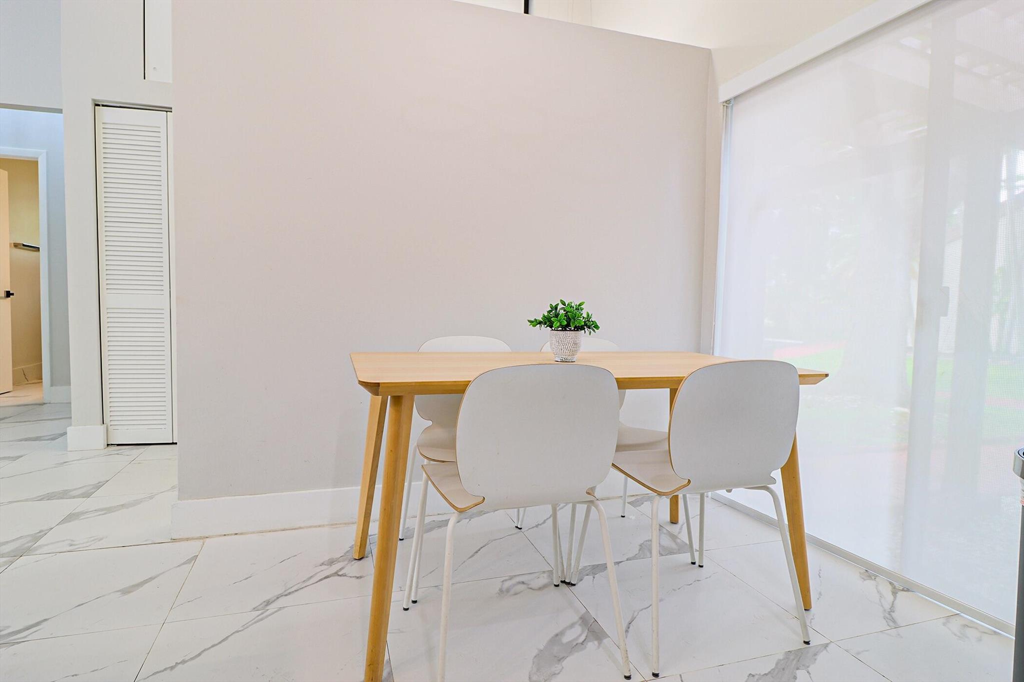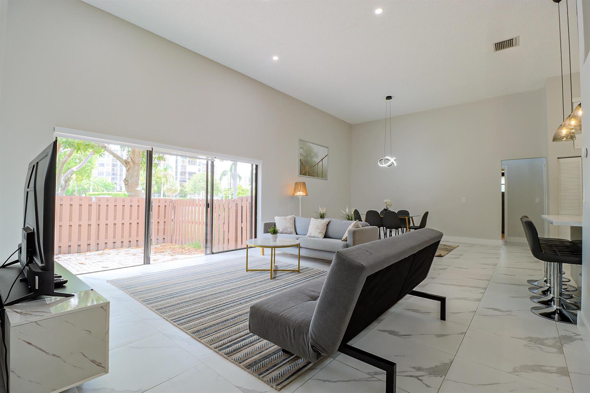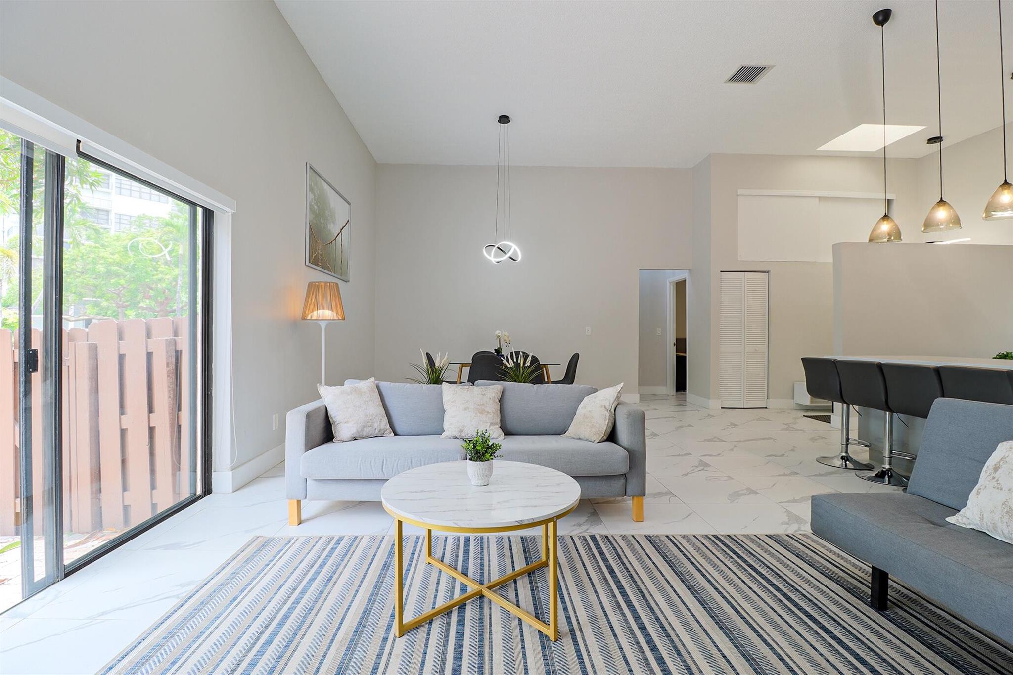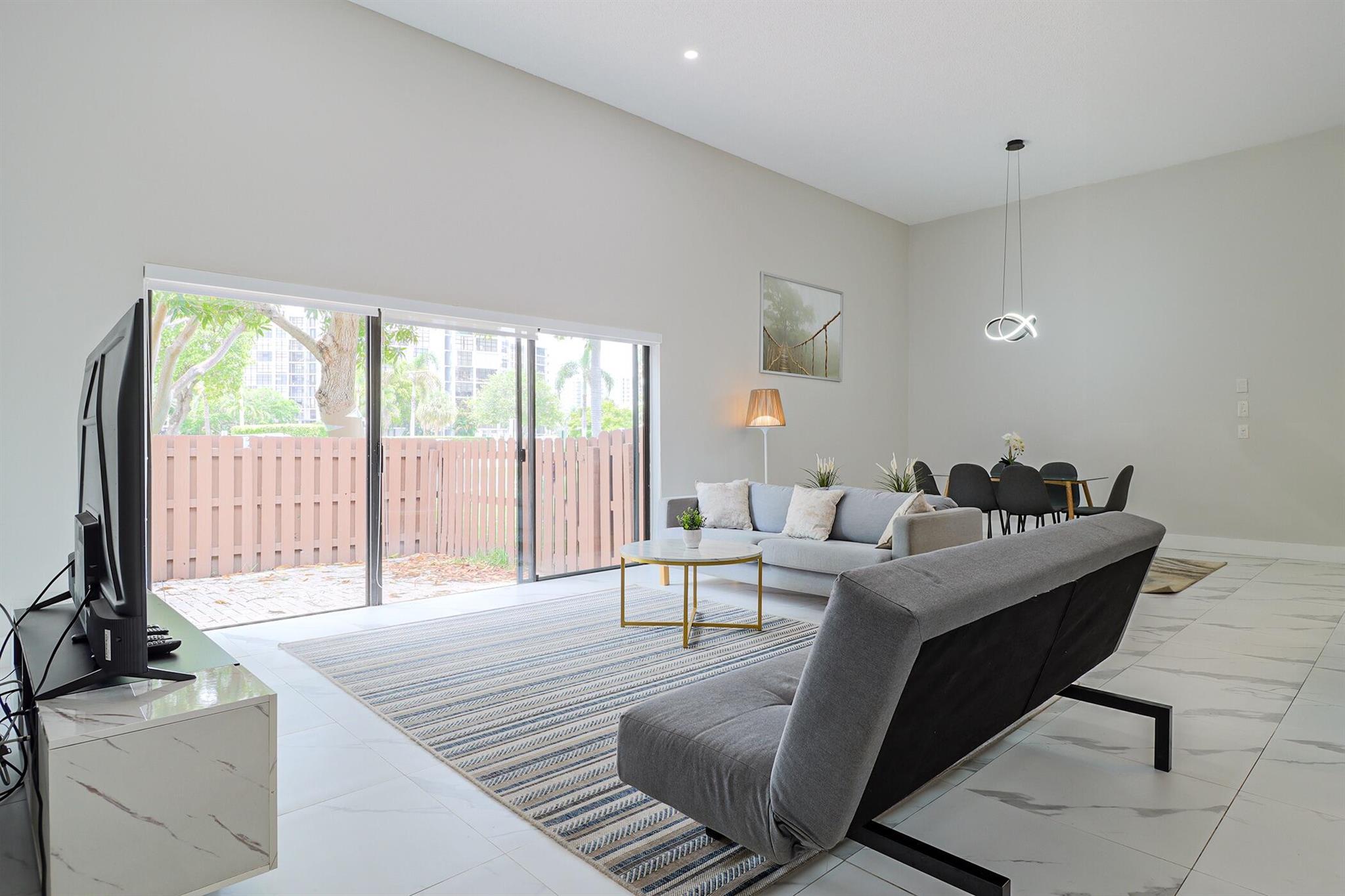 Based in the highly desirable boating community of Harbourwood Villas in Hallandale Beach, this fully renovated 3-bedroom, 2-bath villa blends modern design with coastal lifestyle. Just minutes from the beach, dining, shopping, golf, and Gulfstream Park Casino. It features an open, light-filled layout with sleek ceramic flooring, a stylish new kitchen, updated bathrooms, and all-new appliances. With two parking spaces, a private backyard with a fruit tree, and a charming walkway. The standout feature is a private boat dock and slip for up to a 45-foot vessel in the community marina, offering direct access to the Intracoastal and ocean. Offered fully furnished for turnkey convenience, with water and internet included in the HOA. This is effortless, upscale living by the water. Negotiable!