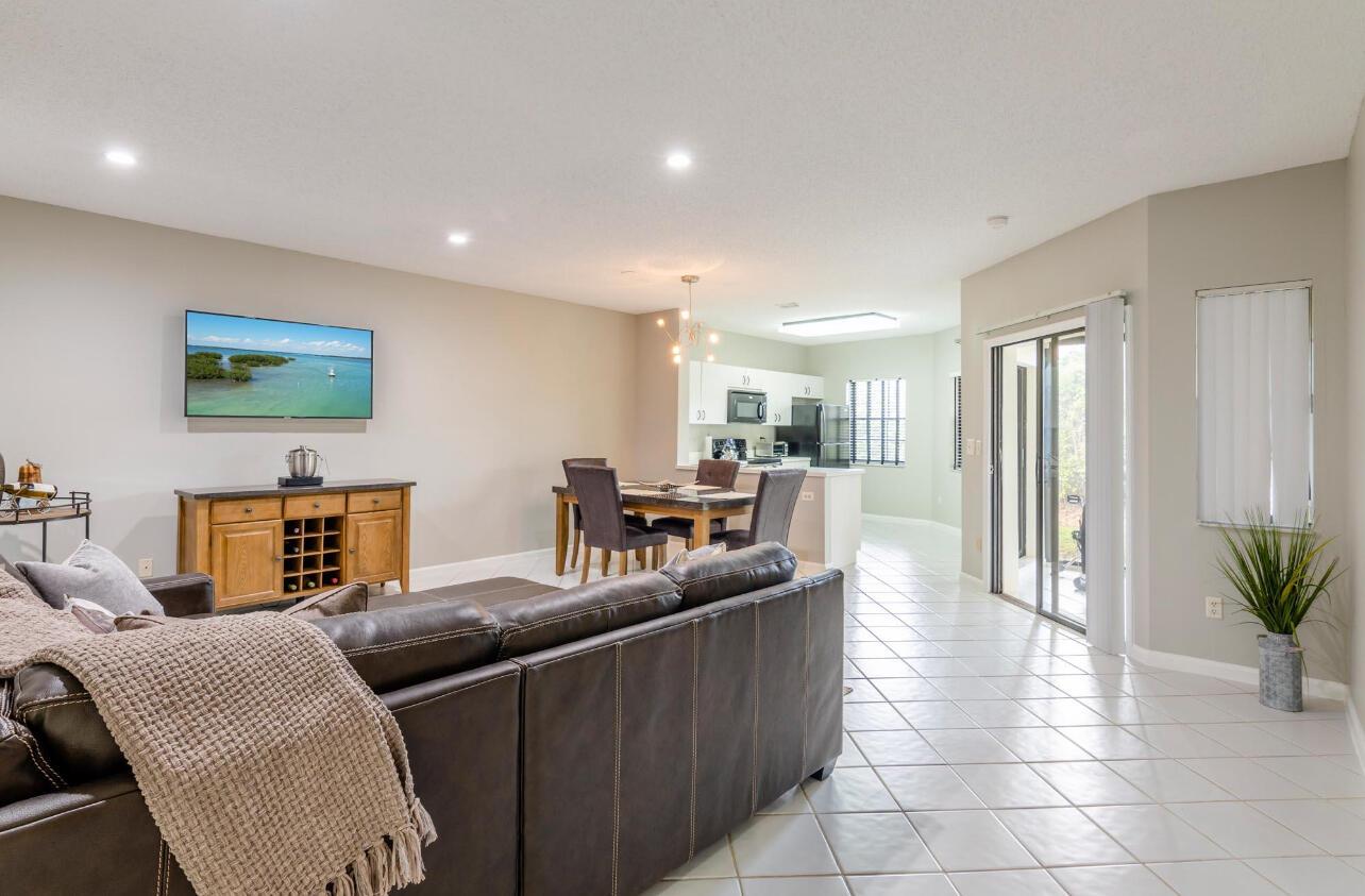 This 2 bedroom 2 bath condo offers the ease of first floor living in the beautiful 24 hour manned gated community of Boca Pointe. Living room / dining room combination, open kitchen, and a sliding glass door to your enclosed patio. The primary bedroom has a large walk in closet, sliding glass doors to the balcony and an ensuite bathroom. Washer and dryer is located inside the condo in a hall closet and there is a storage room outside by the front door. Located close to the satellite pool this condo is move in ready, being sold fully furnished and turnkey. Pet weight restriction up to 50 pounds for owners. ''A'' rated schools!