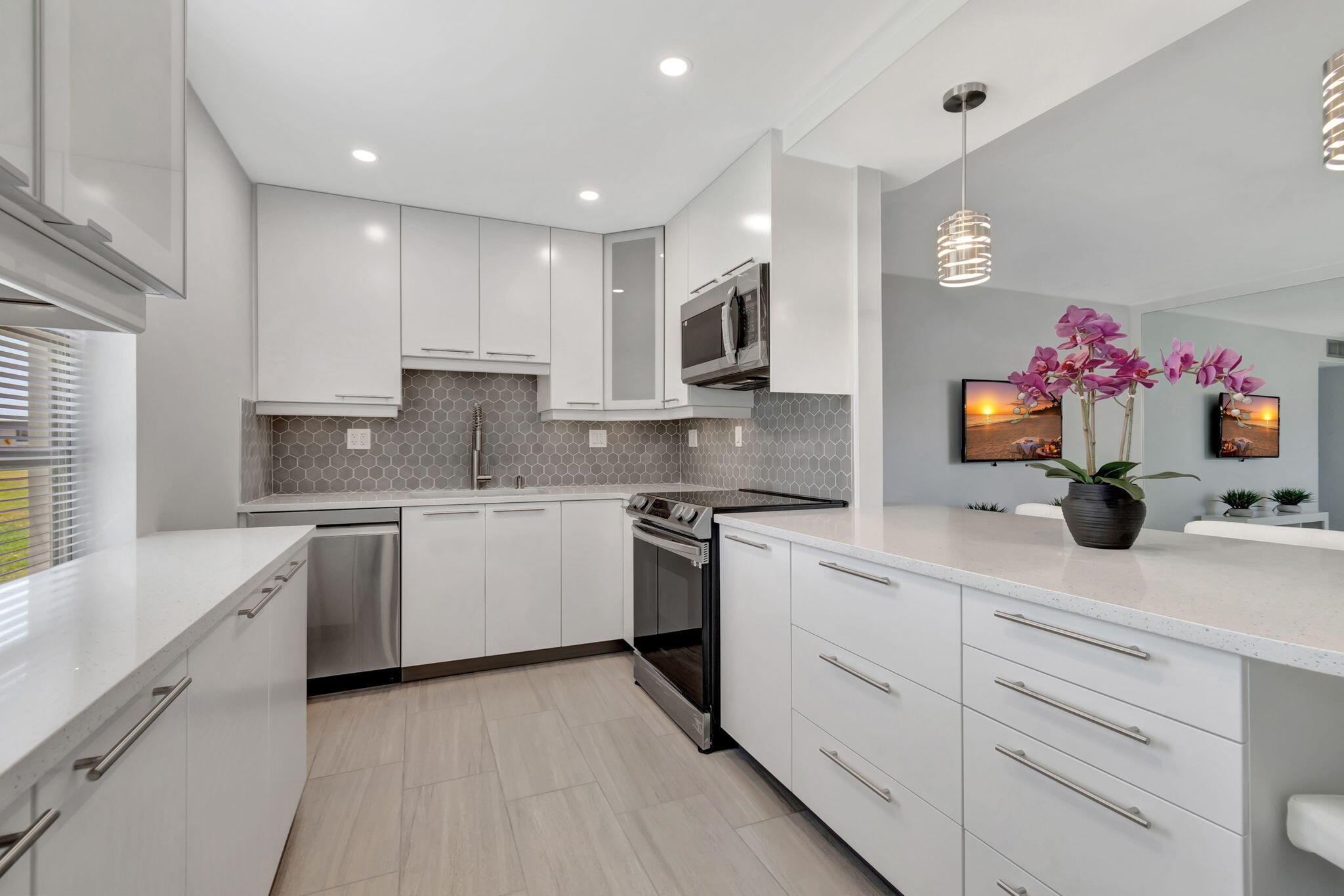 Stunning Custom Remodel!Welcome to 164 Normandy Lane, Delray Beach -- a rarely available, ground-floor corner condo completely transformed with designer finishes and custom details throughout. This luxury residence features elegant porcelain flooring, and breathtaking golf course views. The gourmet kitchen offers sleek cabinetry, quartz countertops, and stainless steel appliances, while both bathrooms showcase spa-inspired elegance with modern tile and premium fixtures. The spacious primary suite is a serene retreat filled with natural light and refined touches. Ideally located near the entrance with convenient parking, this move-in ready home sits within a vibrant 55+ community offering world-class amenities including golf, tennis, pickleball, pools, fitness center, clubho