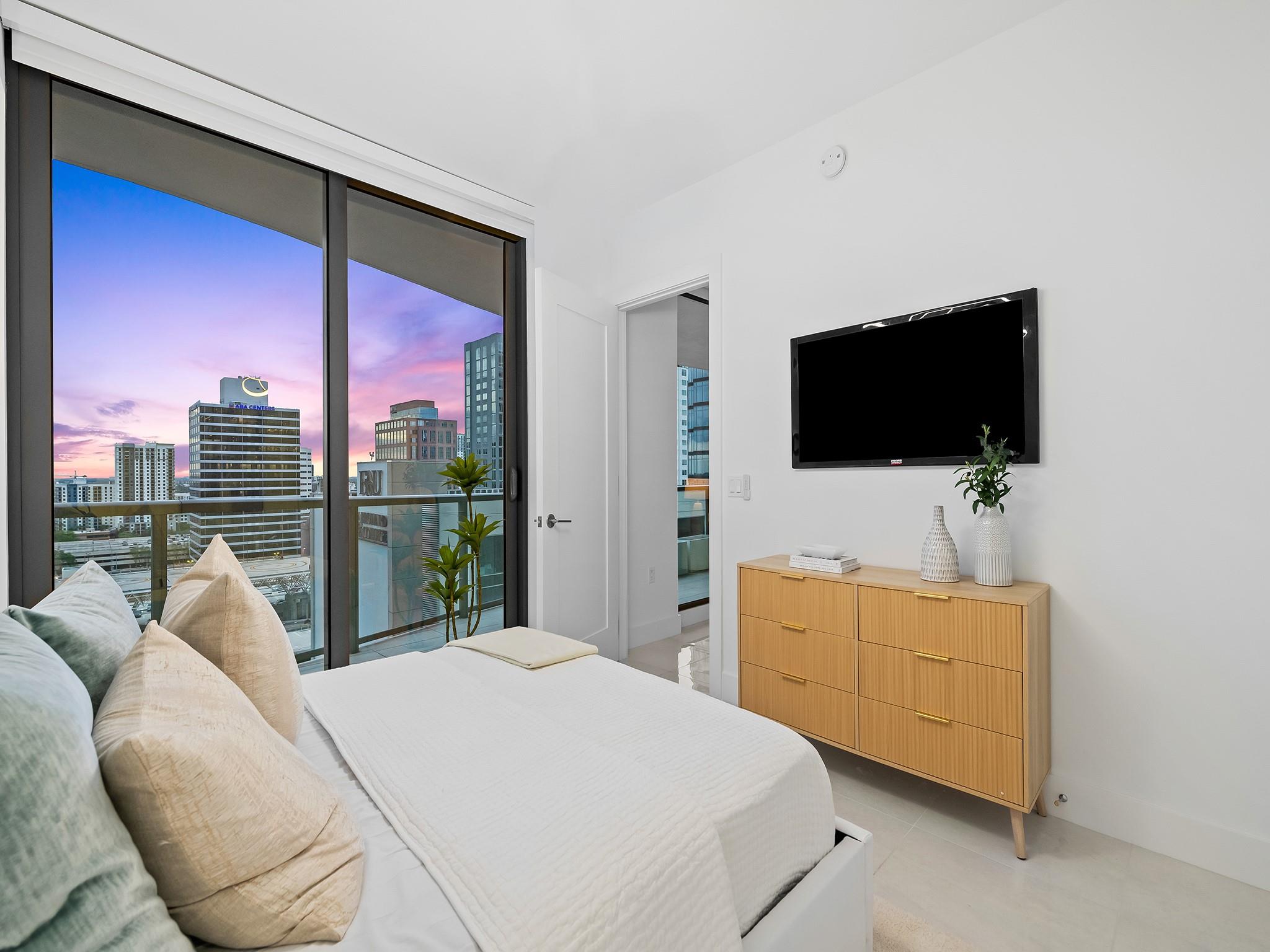 Welcome home to 100 Las Olas located in Fort Lauderdale’s retail and entertainment corridor. The newest luxury condo residence in the marketplace offers premier finishes, lifestyle amenities, and walkability. Our unit is the desired B Model which provides the owner a fantastic open living concept, seductive sunsets, park and city views, a split 2 bedroom + den floor plan, offering 2.5 bathrooms. Residents access their units through a semi-private foyer which is shared by just two units per floor. Unit 1802 offers air conditioned storage unit and 2 parking spaces. The owner choose some of the highest builder finishes available and upgraded the closets. We look forward to hosting you for your exclusive unit and building tour!