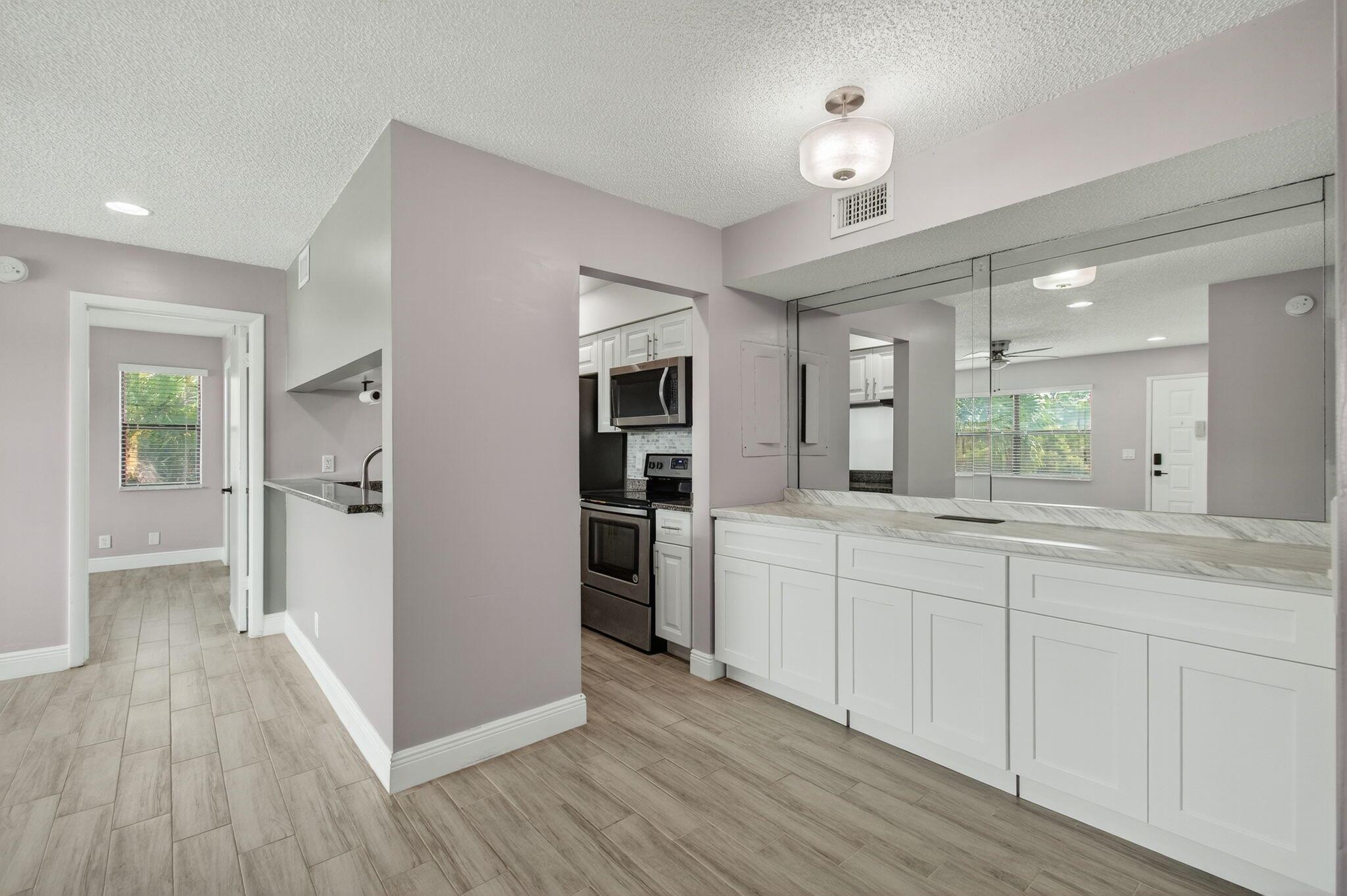 Charming and cozy 2nd-floor condo in the desirable ''All-Age'' section of Lucerne Lakes! This inviting 2-bedroom, 2-bathroom home boasts nicely sized bedrooms and modern upgrades, including granite kitchen counters, stainless steel appliances, and new flooring throughout. Stay comfortable year-round with a 2017 AC and water heater, plus a 2023 washer and dryer for added convenience. Enjoy peace of mind with metal panel hurricane protection. The main bedroom features a spacious walk-in closet. Attic space, accessible from the screened-in front porch, provides extra storage. Conveniently located near grocery stores and Florida's Turnpike for easy access to shopping and travel. Perfect for those seeking a move-in-ready home in a vibrant community!