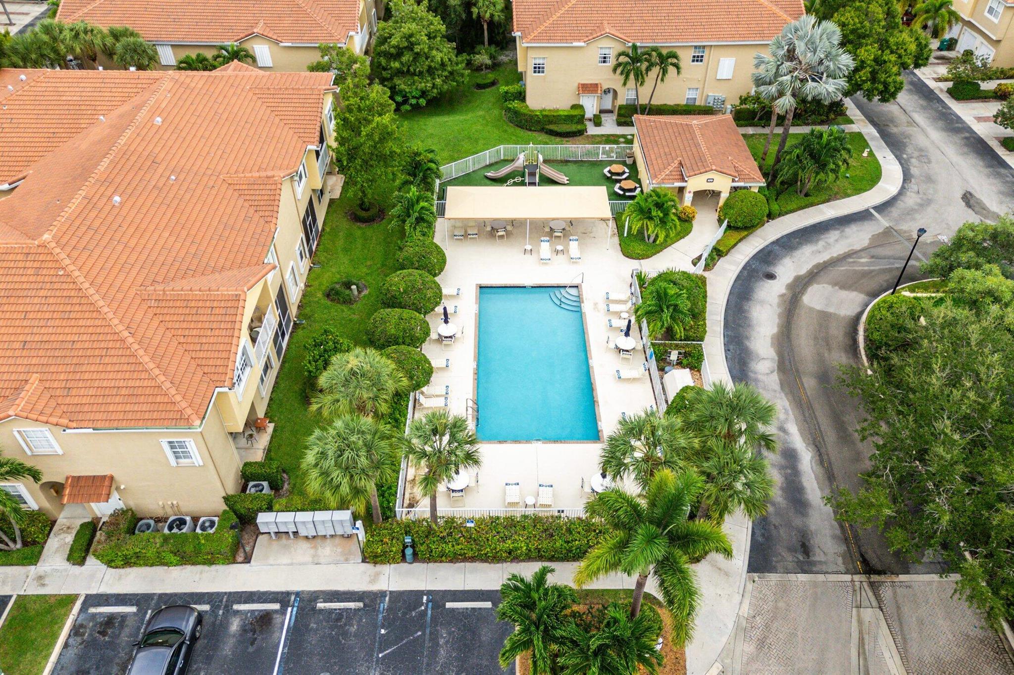 Charming 1,664 square foot townhouse residing in the heart of Tequesta. Offering three bedroom, two full baths, powder and one car garage. Finishes and noteworthy attributes; plantation shutters throughout, 2024 roof with assessment paid in full, granite kitchen countertops, wood flooring on stairs and throughout the second level, screened in patio, epoxy flooring in garage, complete impact windows and accordion shutters, ring doorbell, water heater installed in 2024 and pool view.