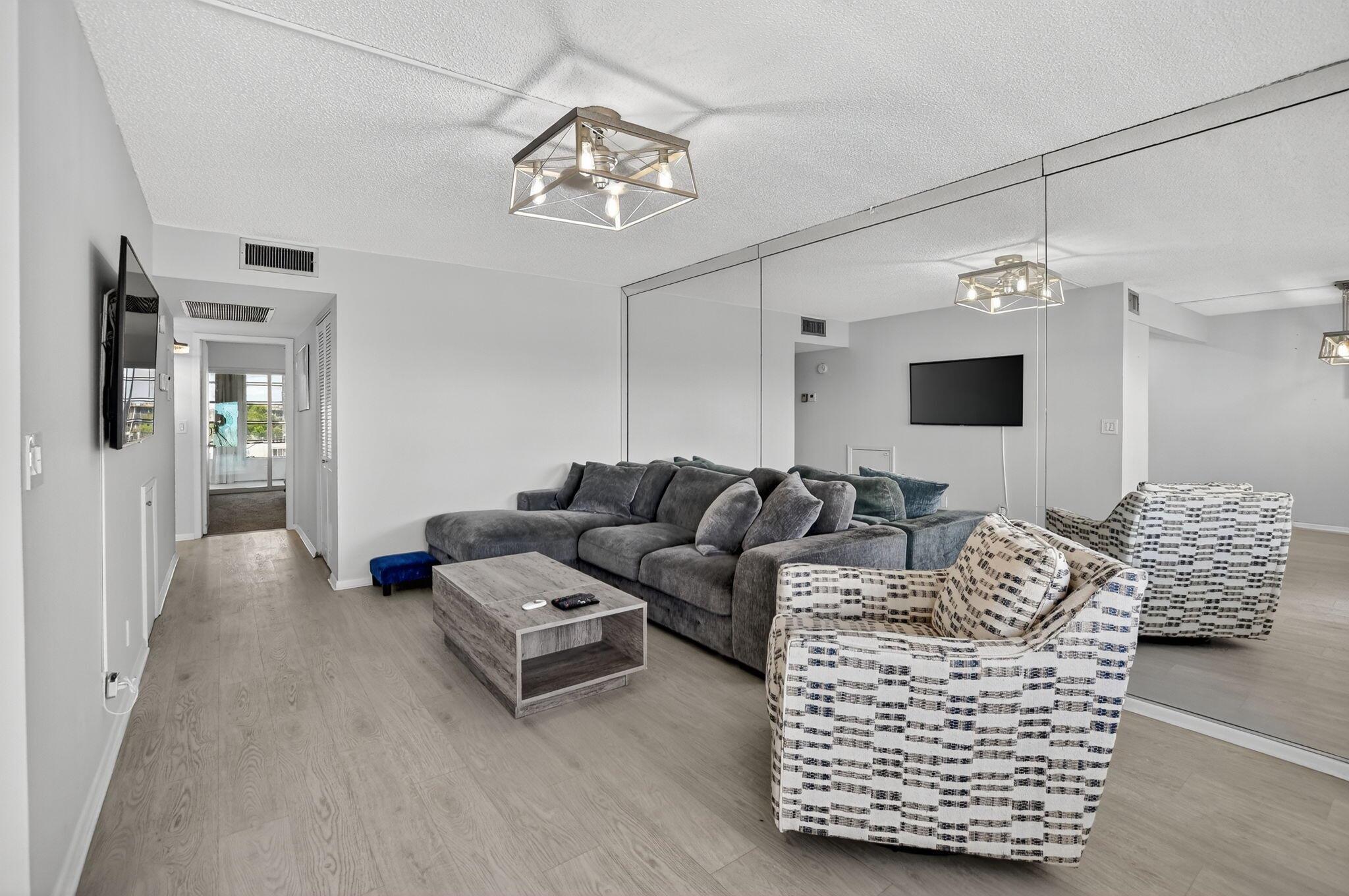 Step into a bright and airy 4th-floor apt featuring a stunning, updated kitchen with quartz countertops and modern stainless steel appliances. The spacious living area boasts elegant wood-look flooring, creating a warm and inviting atmosphere. Nicely furnished with TV's.Relish breathtaking lake views from your enclosed patio, accessible through two sliding doors. This home is perfectly situated across from the Rexford pool and close to house of worship and clubhouse. Century Village offers a true resort experience with an array of amenities, including a fitness center, live shows, movies, courtesy buses, classes, bingo, card rooms, and organized trips. Stay active with tennis and pickleball, or enjoy the convenience of nearby shopping and restaurants.