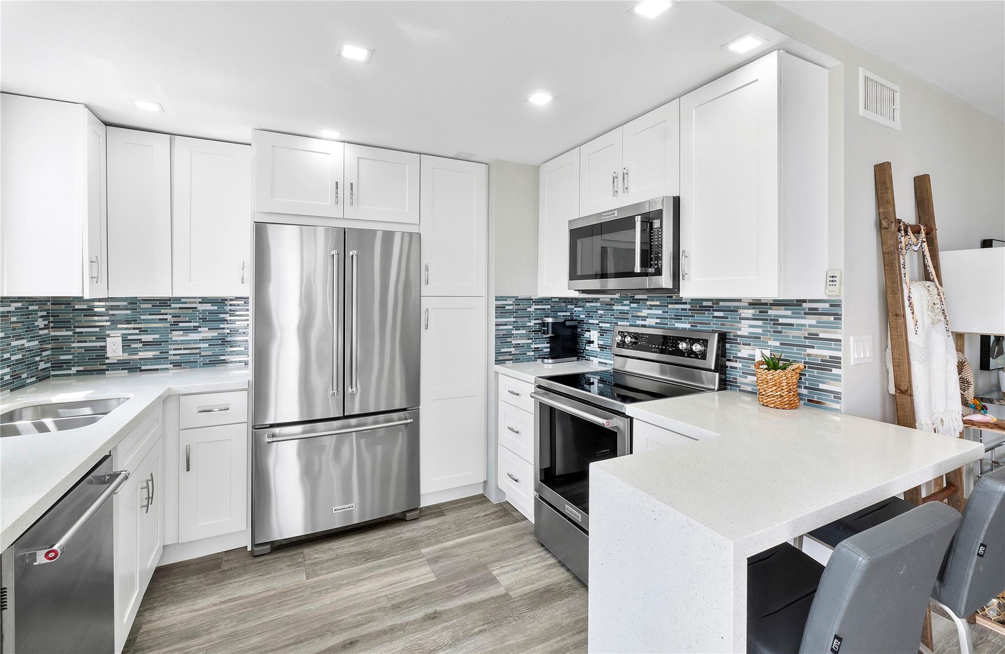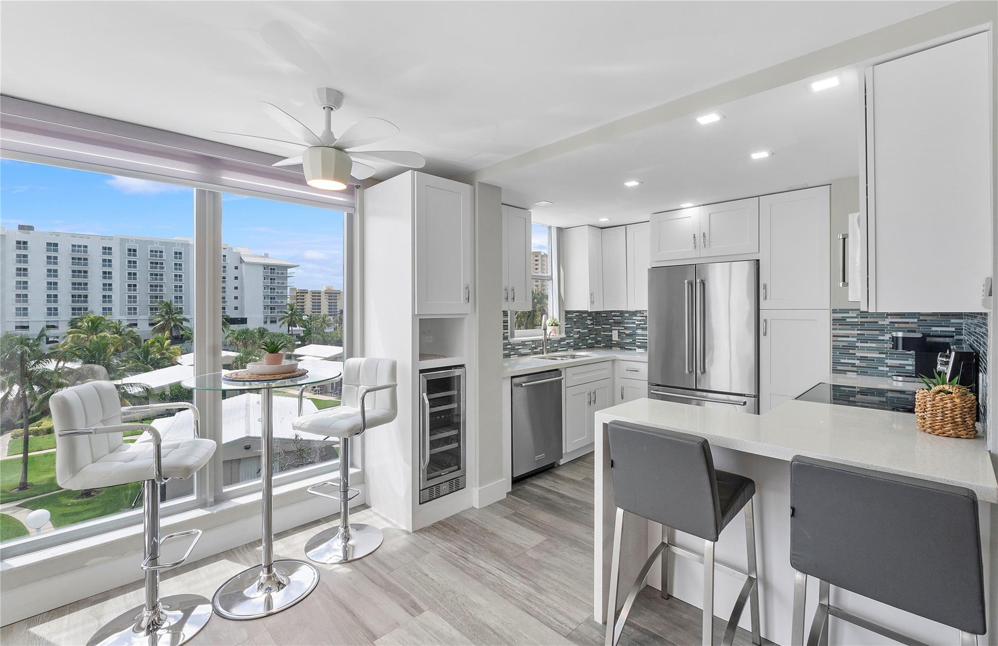 Gorgeous Turn Key & rarely available south facing 2 Bedroom + office w/ murphy bed & 2 Bath condo in the Pompano Aegean w/ spectacular ocean views. This 1650 SF unit has been completely renovated & includes a 3rd room/den withcustom built-in bed & desk. New upgraded & expanded kitchen w/ Stainless Appliances & built-in Wine Cooler. Updated Wood Plank Tile flooring, Custom Closets & Window Treatments plus Washer and Dryer in unit! Secure parking garage with assigned space & ample guest parking. Located on a wide section of the beach south of the Pompano Pier! Building amenities include: Pool, Spa, Beach Access, Fitness Center, Recreation Room, Library, outdoor grills and more! All certifications are complete! Assessment already paid for interior hallway & common area beautification.