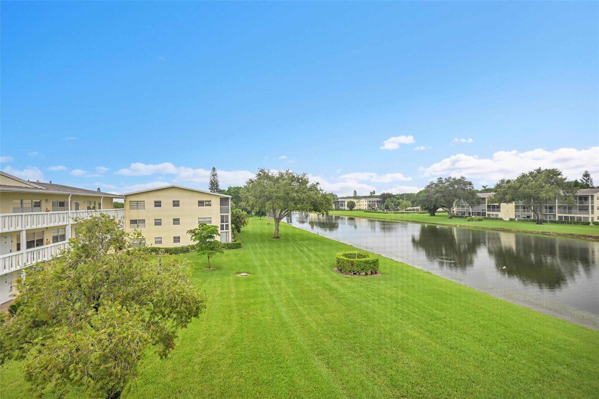 AMAZING Waterfront Views from this Corner Unit with Extra Windows on 3rd Floor (ELEVATOR). Waterfront Screened Balcony which also includes Oversized Outside Storage Closet & Unit is Being Sold Furnished. Renovated Kitchen & Half Bathroom, Water Filtration System in the Kitchen Sink, LED High Hat Lighting, Garbage Disposal, Main Bathroom has Tub & Shower Combo with Glass Enclosure, A Frosted Window & Handrails, Both Bedroom Closets have Built-In Cabinetry, AC was installed 2022, Updated Electrical Panel. Amazing Community! Century Village Features a Courtesy Bus, Clubhouse, Theater, 2 Synagogues, 17 Outdoor & 1 Indoor Swimming Pools, 12 Tennis & Pickleball Courts, Bocce, Shuffleboard, Fishing, Cable, Internet & much more. You Will Love Where You Live, Work & Play! WELCOME HOME!