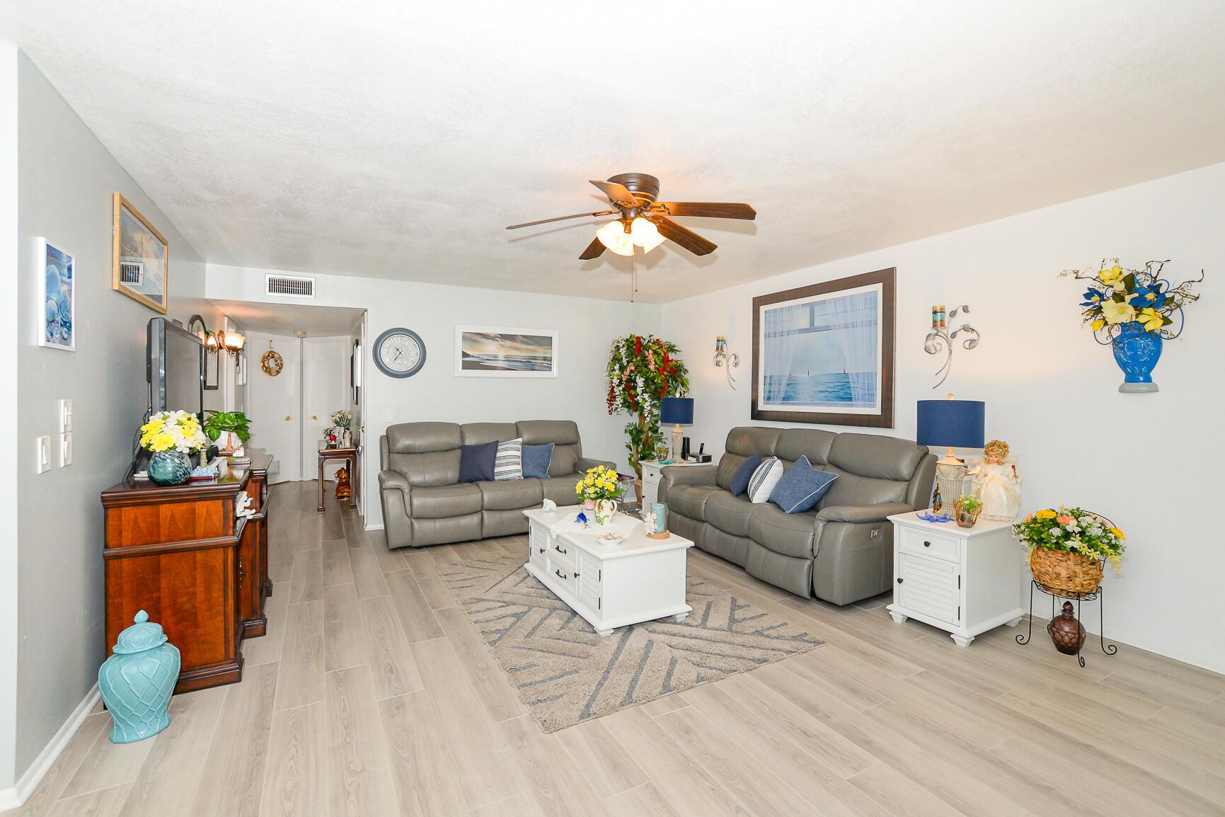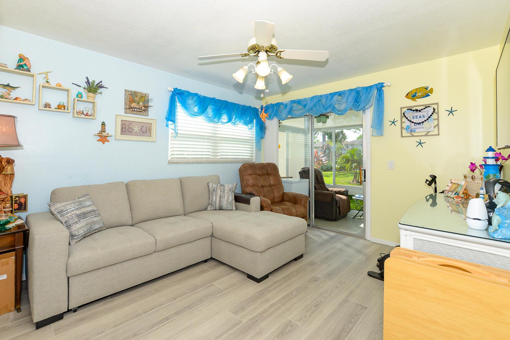 Own one of the best homes in the whole community. The largest of all the units, the Woodrose, which has been completely updated from floor to ceiling with impact windows, new impact glass enclosure for Lanai, tile, granite countertops, new cabinets, new flooring throughout, fresh paint, water filtration system, new vanities and new custom tile ensuite shower with glass door. Unit also has been upgraded to have a washer and dryer. Perfect location in the community with lovely garden view from Lanai. Quiet and beautifully maintained community which is in the heart of everything with no city taxes. Cable, internet, water, trash removal, home phone, sewer, roof replacement, exterior maintenance and exterior pest control all included! Never be bored again, enjoy community clubhouse,