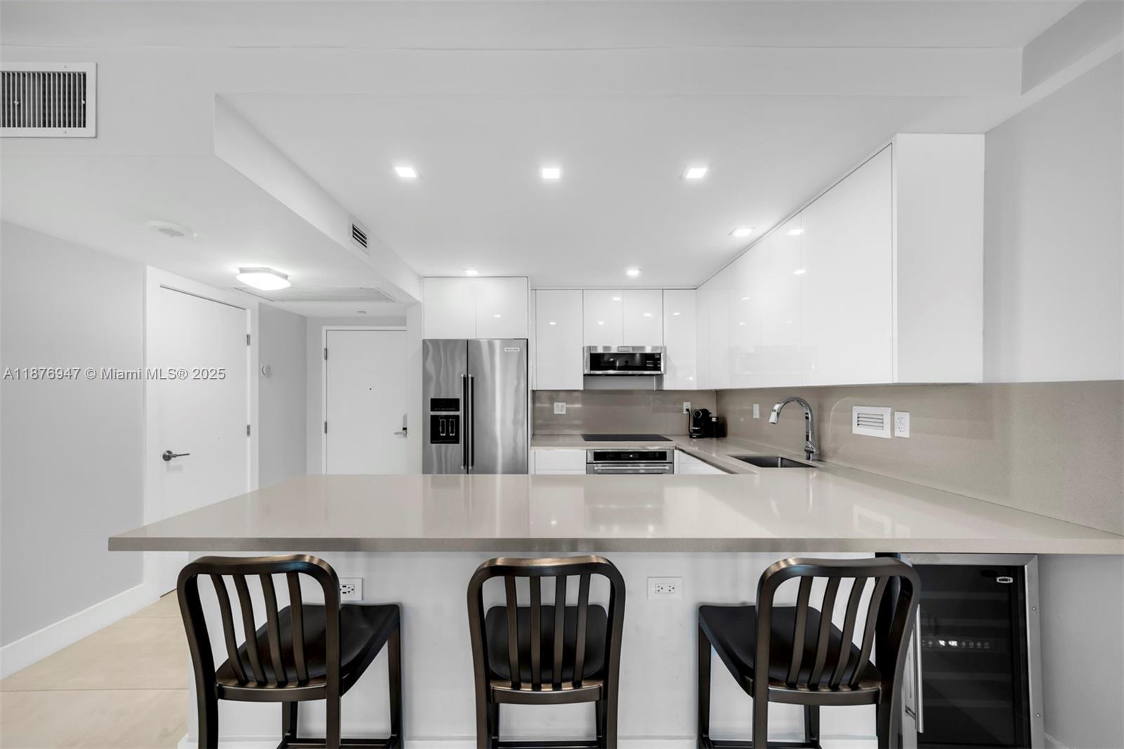Discover this beautifully renovated, turnkey residence in the stunning Roney Palace! This spacious 1 bed, 2 full bath unit features the largest 1-bedroom floor plan in the building, an open sleek kitchen, wine cooler, washer & dryer, automated blackout shades throughout, and is offered fully furnished. The oversized bedroom suite features a large walk-in built-out closet and additional storage space. The newly completed resident pool deck features cabanas and truly feels like an oasis. Residents also get to enjoy the luxurious amenities of the 1 Hotel, including 2 oceanside pools with full-service cabanas, 600 ft of beachfront with umbrella/chair service, 24hr valet, Anatomy Gym, Bamford Wellness Spa, and unique dining venues. Short-term rentals allowed with a minimum of 30 days.