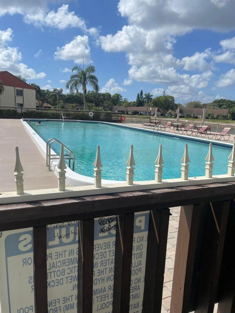 Beautifully renovated unit, with water view facing east. Large pool, updated appliances, no carpet, walking trail around lake. Gated community.