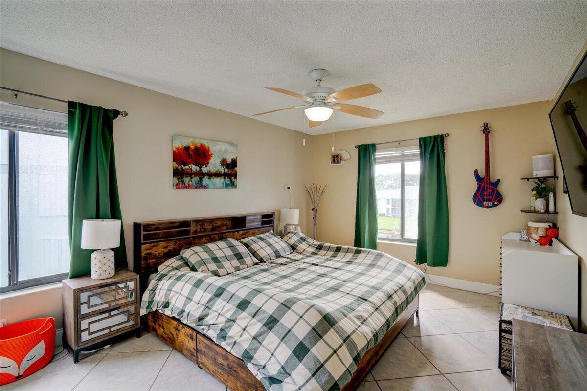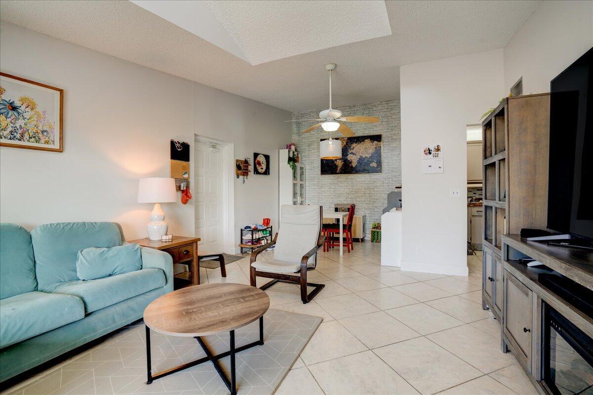 Lovely 2 bed/2 bath condo, located on the 3rd floor with vaulted ceiling, lots of natural bright lighting, tile throughout, and stunning views of the serene lake with fountain in an all age community. AC 2023, Kitchen Appliances 2022, Water Heater 2019, roof 2023. This gated community has a fenced in pool, clubhouse, tennis/pickle ball court, and tons of guest parking. (1) assigned parking space and guest spaces available. No Lease first 2 years. Great central location close to I95, turnpike, outlet mall, downtown, and the beach. Monthly HOA fee includes basic cable, internet, and water.