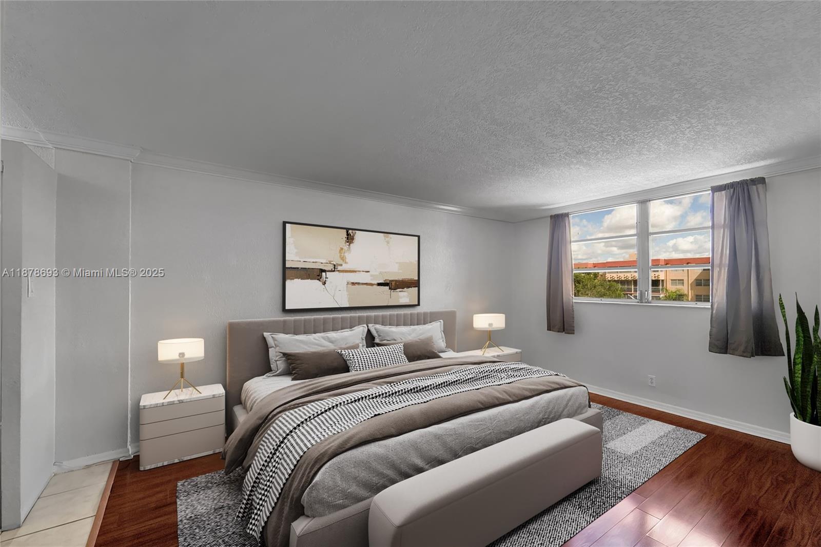 Great community & unit. This unit was just professionally painted and cleaned. Updated kitchen and bathrooms. Large kitchen has an eat-in area with a window. 1/2 bath for company. The large great room is all tiled and opens up to the balcony that is screened for your enjoyment. The bedroom is also large and has wood laminate flooring. It has a walk in closet and additional built in closet behind the sliding doors. NO popcorn ceiling. Crown molding throughout.Association is well managed by professional management, FULL RESERVES, NO ASSESSMENTS,completed the 40 year certification, low monthly maint. Pets are allowed and 2 vehicles, plenty of guest spaces. Association's credit score requirement is 650.Rapid approval. Great for 1031 exchanges and investors~ move in ready and rent right away!