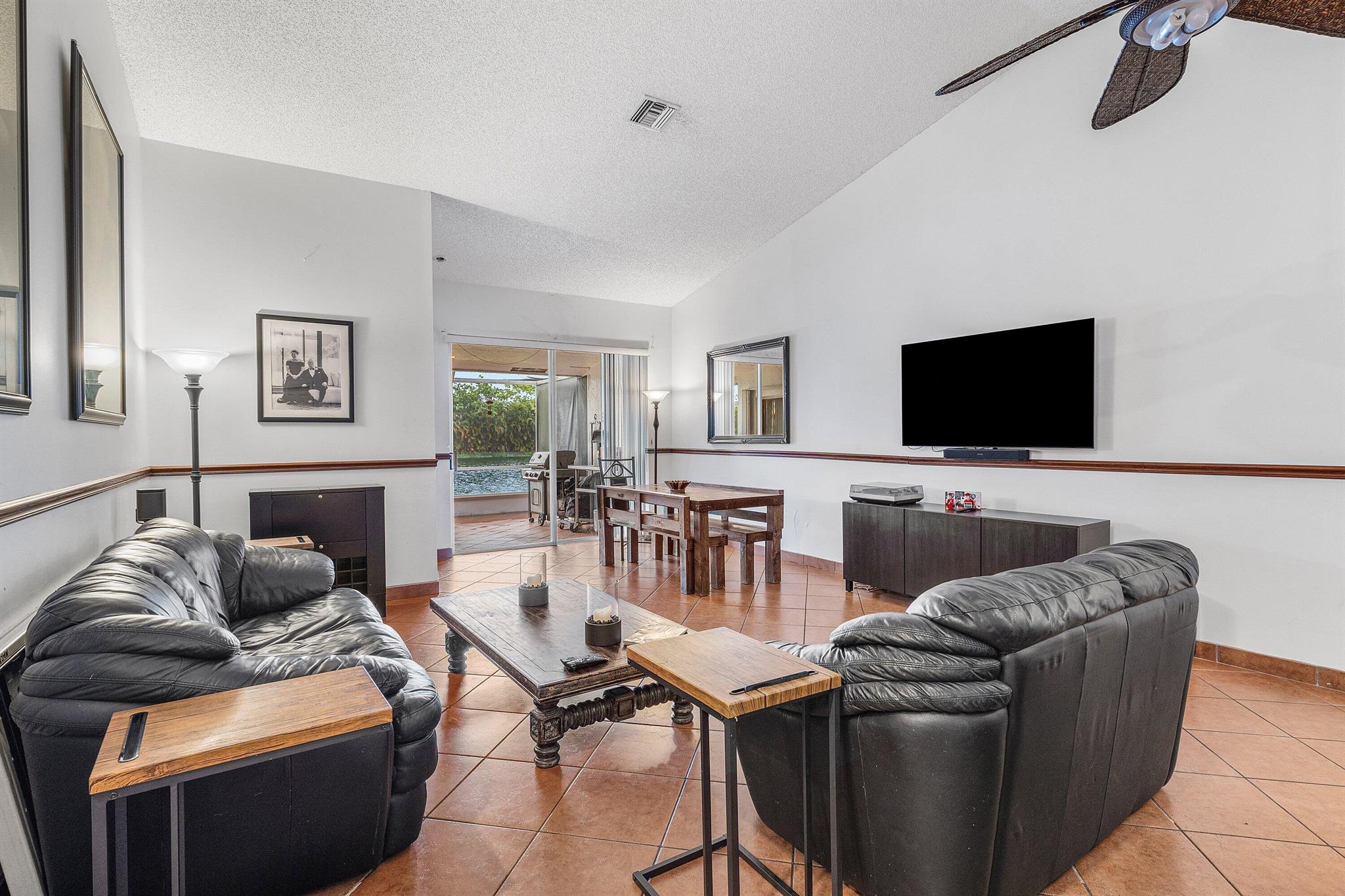 Nestled in the beautiful tree-lined community of Villa San Remo, this spacious 3BD/2BA villa offers vaulted ceilings, an east-facing lake view, and a screened lanai for serene indoor-outdoor living. Thoughtfully updated over the years, it's move-in ready while leaving room for your personal finishing touches.The kitchen features wood cabinetry and a new stainless-steel refrigerator. The primary suite boasts a walk-in closet, while the split bedroom floor plan provides comfort and privacy for family or guests.Additional highlights include a 2020 roof, full accordion shutters, and HOA-maintained roof and lawn care for worry-free ownership.