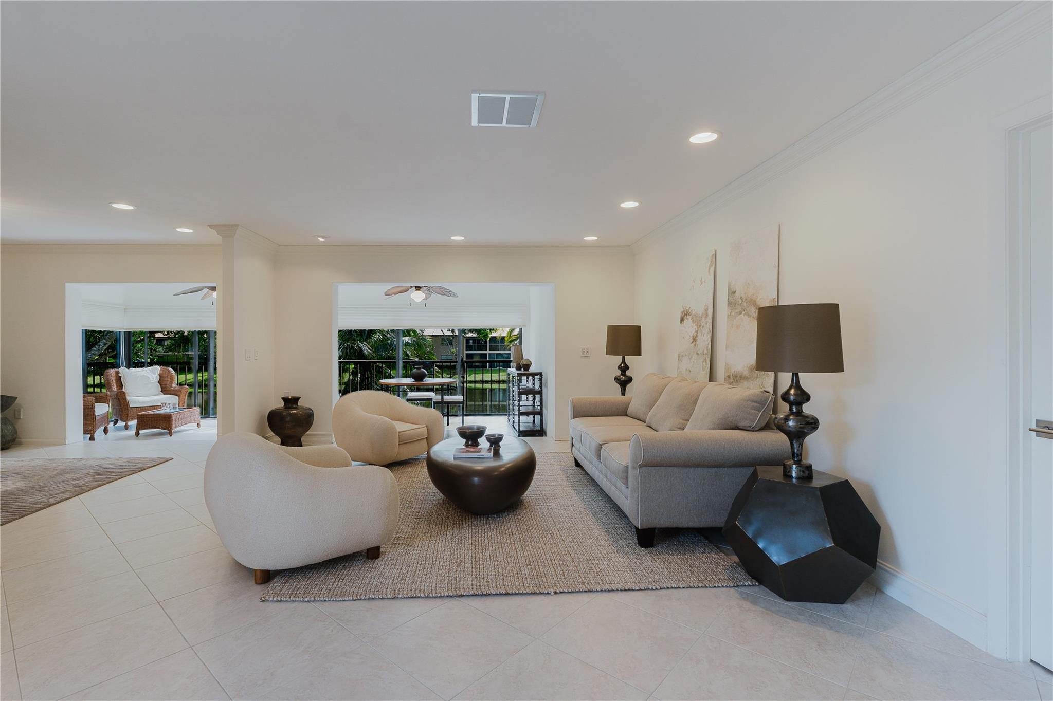 Sophisticated 3 bedroom, 2 bathroom residence in an exclusive 55+ gated Boca Raton community. Designed with spacious scale and contemporary elegance, this home offers serene pond views, refined modern finishes, and a peaceful ambiance. The third bedroom has been converted to living space to offer additional comfort. You will find new bathrooms, new appliances and a new roof plus more in this renovated home. Ideally located just minutes from Boca's premier shopping, dining, and beaches, it delivers the perfect blend of luxury, comfort, and lifestyle. Optional Boca Lago country club membership, not required. Offering furnished or unfurnished.