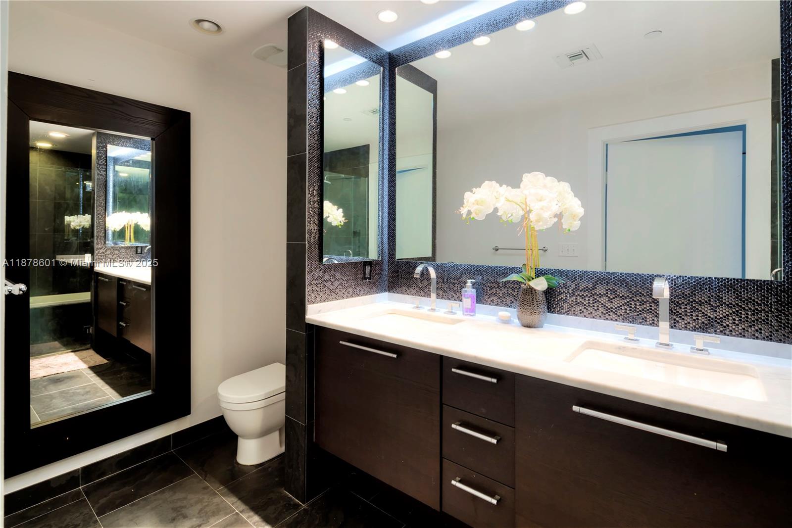 1,006 sq/ft 1 Bed + DEN, 2 Full Bath condo w/direct bay & ocean views. Expansive floor plan, Carrara marble flooring & floor-to-ceiling glass windows. Modern kitchen w/marble countertops & Sub-Zero/Miele appliances. Spa-like master bath w/glass-enclosed shower & soaking tub. Custom walk-in closet. Oversized terrace w/stunning views of Biscayne Bay & Miami Beach skyline. Washer/Dryer in unit. Amenities: 2 pools, private theater, fitness center & full-service spa.