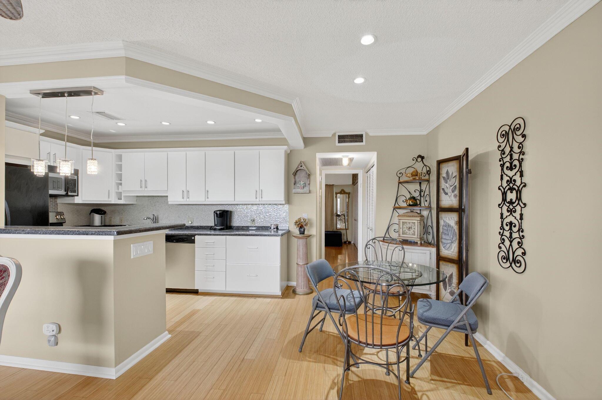 HOME SWEET HOME! Fully renovated penthouse condo right next to the pool. Beautiful granite counter, large open concept kitchen! Warm honey bamboo flooring in living areas. Adorable modern guest bathroom. Lovely master en suite has walk in shower! Wonderful views-front- water body and lanai - garden view.. Beautiful Ethan Allen furnishings -negotiable. Turnkey ready and so so close to house of worship and clubhouse-must see!