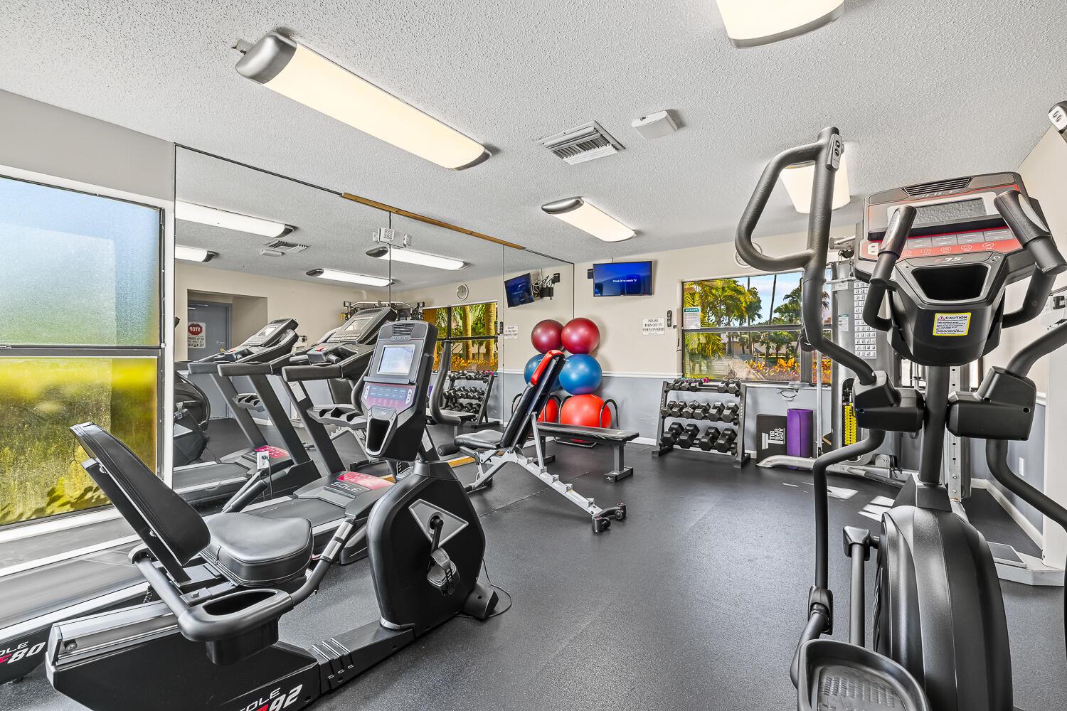Rare find - All ages and no country club fees! Perfect for first-time homebuyers - own this updated Boca Glades condo with as little as 5% down. Upgraded with tile floors, updated kitchen and bathrooms, high-hat lighting, smooth ceilings, new washer and dryer, a custom master closet, and custom plantation shutters. The split-bedroom layout adds comfort, while the large glassed-in patio with privacy shades expands the living space. First-floor corner unit with the first parking spot outside. Enter the gated community along a palm tree-lined street and enjoy two pools, gym, sauna, tennis courts, and clubhouse. Low monthly fees with no assessments. New roof. Walk to the renovated Publix plaza, reach Uptown Boca and A-rated schools in minutes, and access the Turnpike with ease.