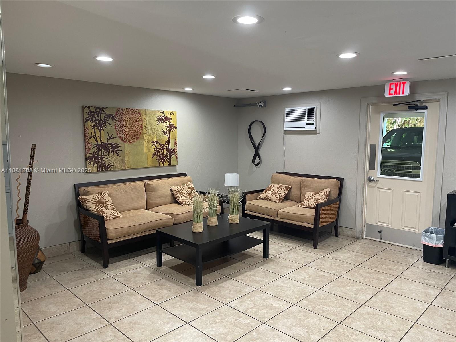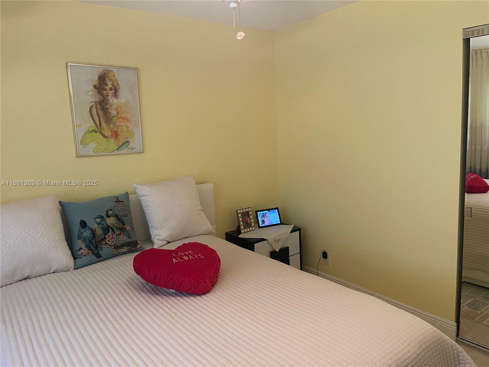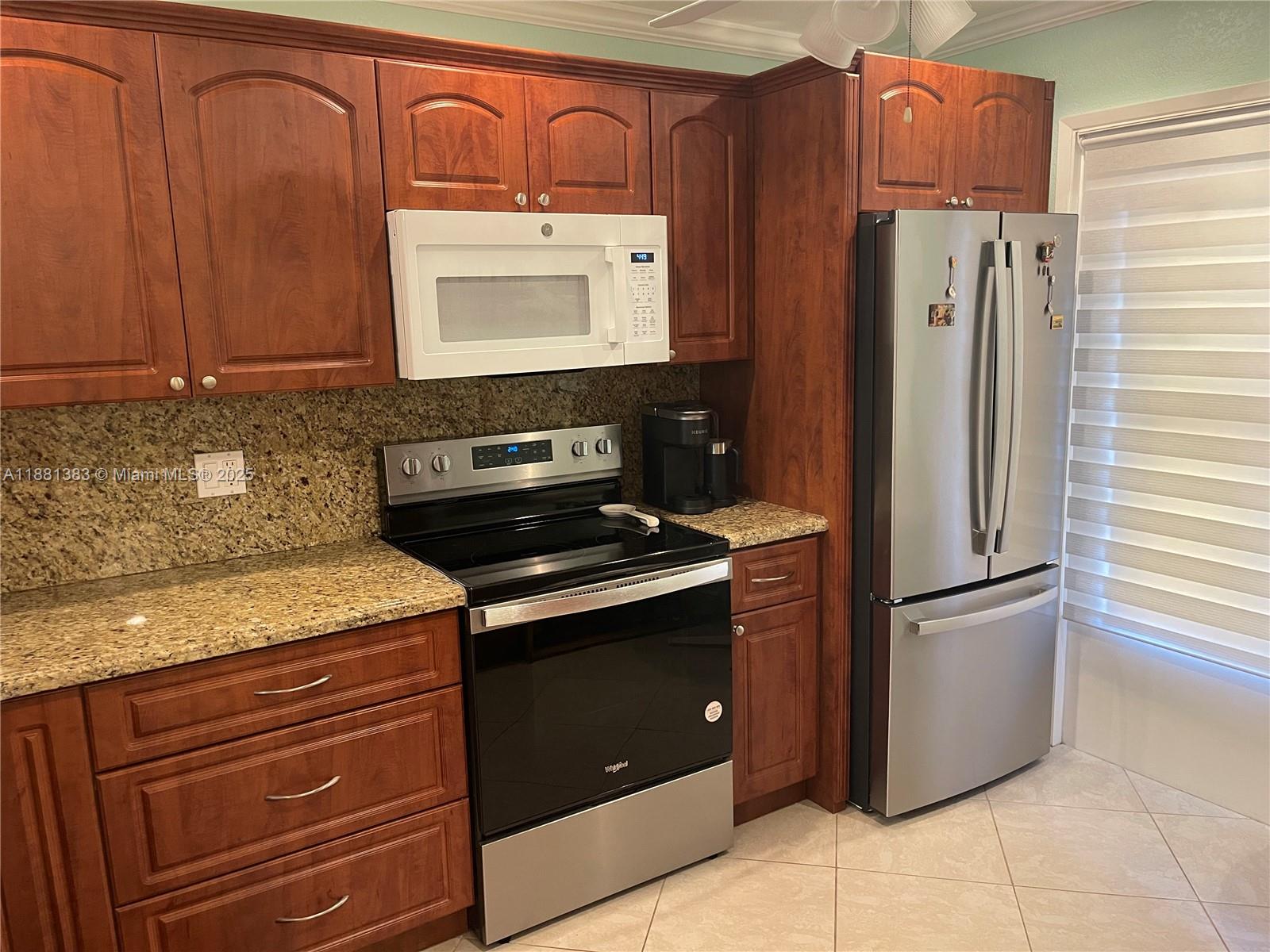 Spacious apartment with renovated open style kitchen in a quiet 55+ co-op community. Enjoy tropical garden views from your screened in private balcony. Impact windows and sliding glass doors for your peace of mind. Huge primary bedroom with walk in closet and ensuite bathroom. Conveniently located near shopping, dining, houses of worship and minutes to the beach! Secured building with assigned covered parking and extra storage space. Low maintenance cost!