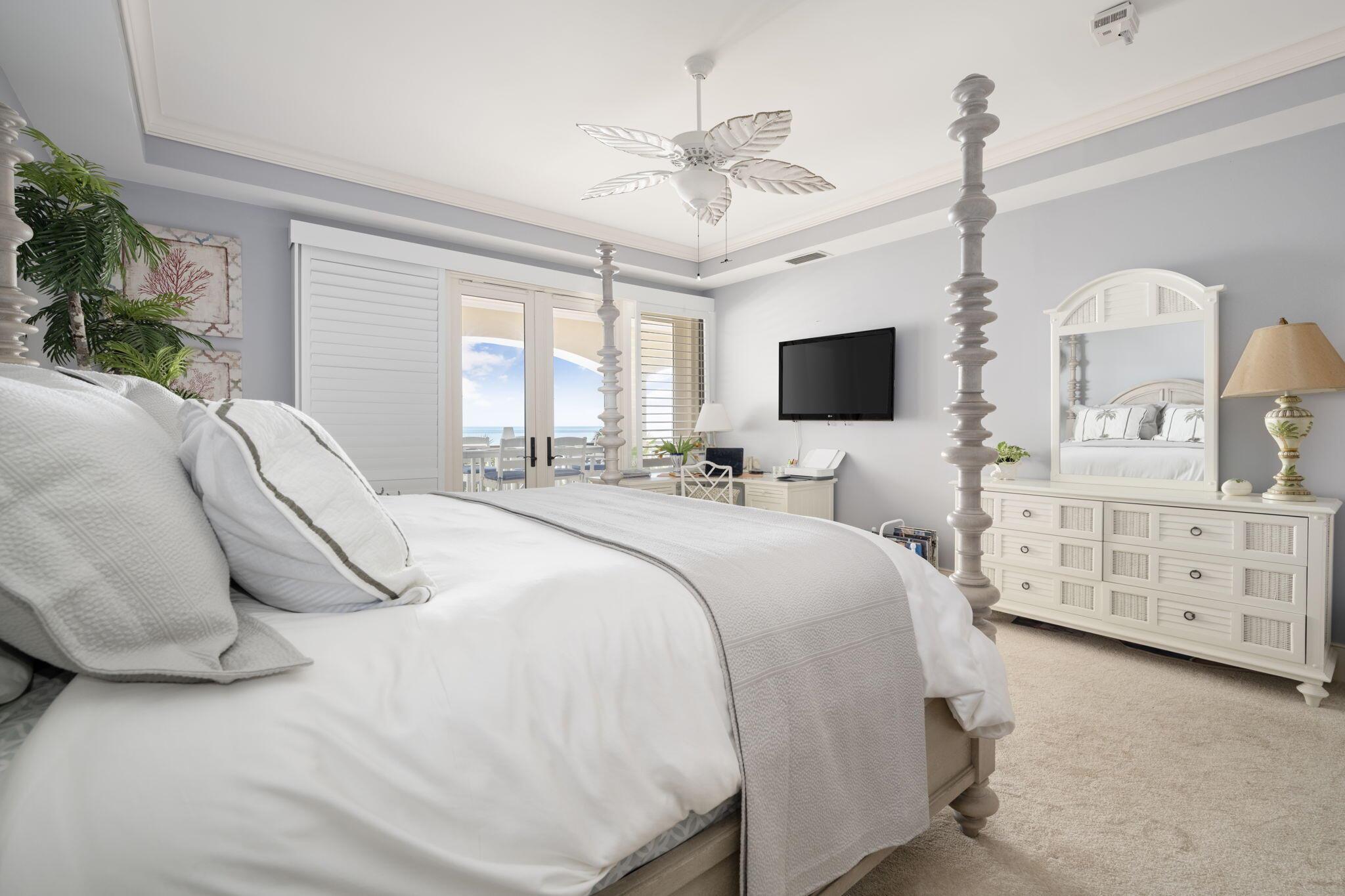 Oceanfront luxury with breathtaking panoramic views! This stunning condo offers a wraparound porch with full southern exposure--perfect for sun-soaked mornings and ocean breezes. Just steps from the beach, enjoy 10-foot ceilings, extensive molding, and an open, airy layout. Located in a guarded, golf community offering privacy, security, and top-tier amenities. Live the fabulous Florida lifestyle in style and comfort with unmatched views and coastal elegance. A rare gem!