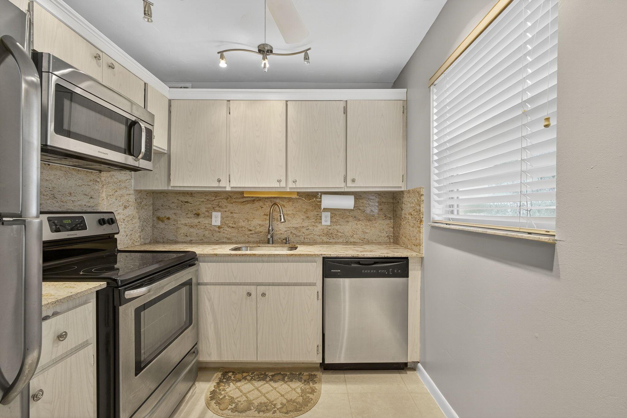 SAY HELLO TO YOUR DREAM RETREAT 2 BED, 1 1/2 BATH GROUND FLOOR UPDATED CORNER CONDO. FURNISHED AND READY FOR YOU TO MOVE INTO. LOCATED INTHE SOUGHT AFTER CENTURY VILLAGE OF W.P.B., A GATED COMMUNITY FOR ACTIVE ADULTS 55+ . EMBRACE THE FLORIDIAN FLAIR WITH ITS BRIGHT AND AIRY SPACES THAT CREATE A WELCOMING ATMOSPHERE. KITCHEN IS COMPLETE WITH QUARTZ COUNTERTOPS AND STAINLESS STEEL APPLIANCES. CENTRAL AIR TILE THROUGHOUT STYLISH FURNITURE PLENTY OF CLOSET SPACE.ENJOY BEAUTIFUL GARDEN VIEW. STEPS TO THE DORCHESTER POOL AND CLOSE TO HASTINGS FITNESS CENTER. WELL MANAGED ASSOCIATION. laundry room, assigned parking spot plus visitor parking available; local bus for errands/shopping both within & outside the village. COME & ENJ RESORT STYLE LIVING IN THIS VERY CLEAN &SUNFILLED UNIT. CLU