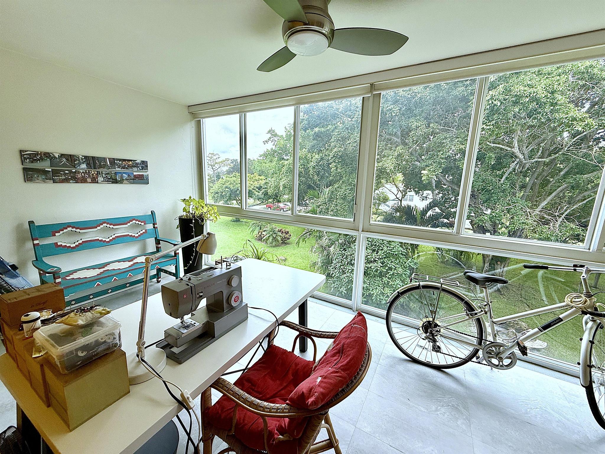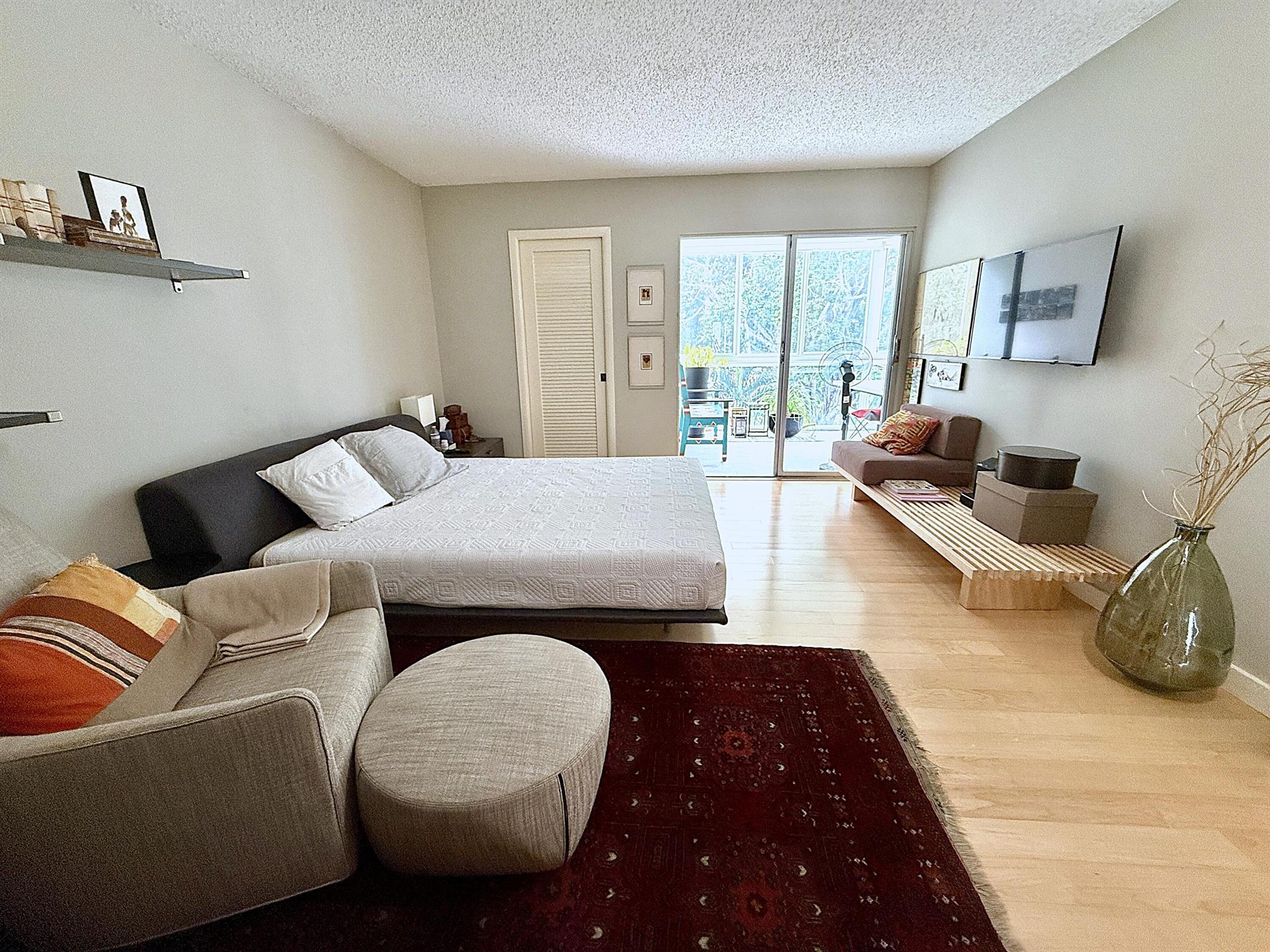 Outstandiing Garden View from Large Enclosed Patio w/ Impact Hurricane Windows & Impact Front Door. Enjoy this Lovely, Spacious 2 BR 2 Baths 1000 SF unit. Renovated kitchen with stainless steel appliances. Replaced AC & hot water heater 2022. Gorgeous hard wood floors throughout & plantation shutters in LR & DR. Building well maintained & roof replace in 2022. Walking distance to Oakridge community pool. Clubhouse has indoor+outdoor pools, cafe, 1600 seat theater, clubs, tennis, billiards, pickleball, volleyball, ping pong, bocce, shuffleboard, fitness center, hiking+bike trails, putting green. Close to beaches, entertainment, dining, shopping. 55+ age.