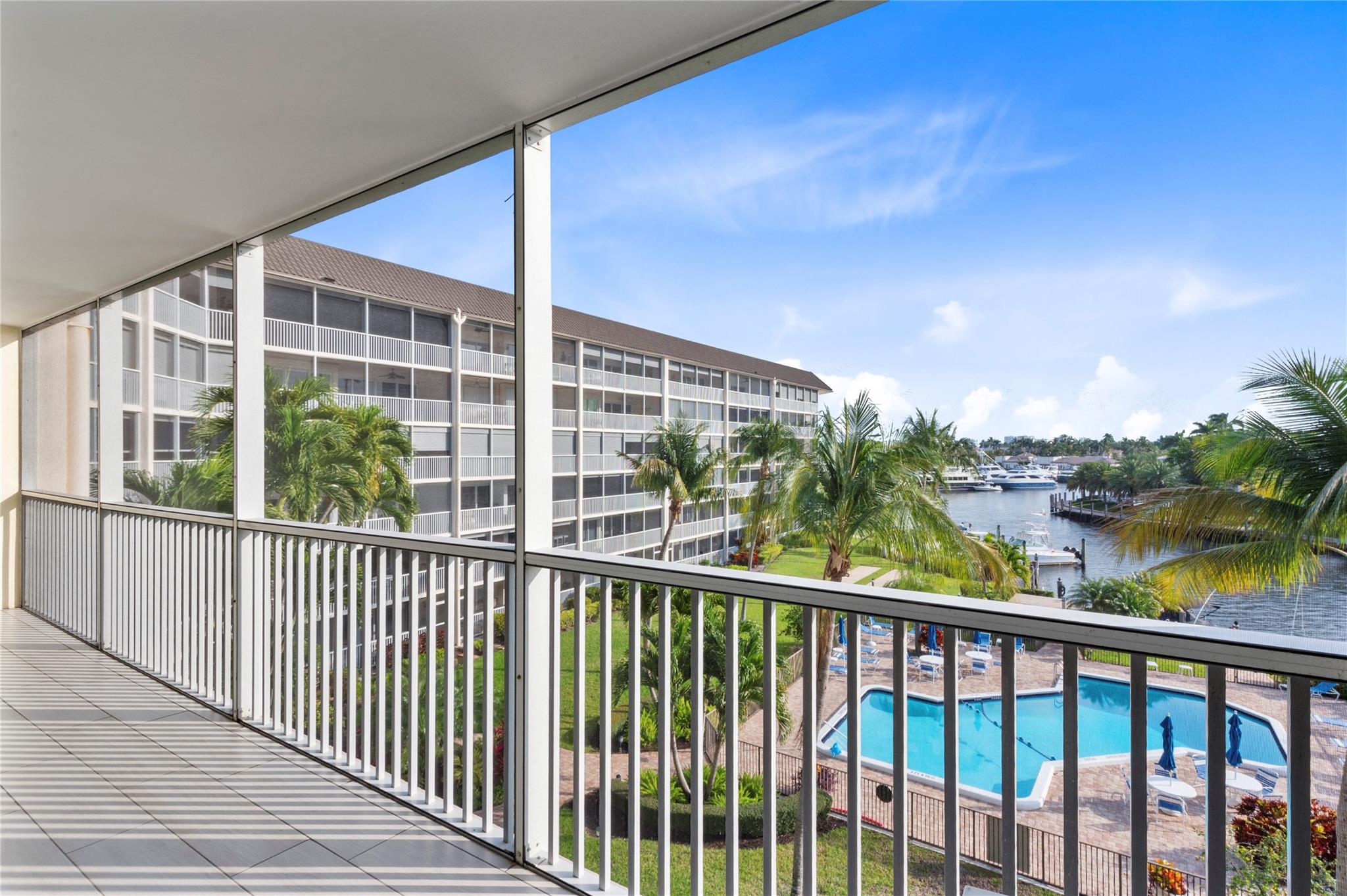Stunning Waterfront Condo w/Beautiful Views! Enjoy breathtaking sparkling water views right from your condo, whether you're relaxing on the large screened balcony, swimming with friends, or fishing from the dock. This spacious 2-bedroom, 2-bathroom condo offers an open floor plan w/porcelain tile has immediate water views, perfect for anyone who loves the tranquility of waterfront living. The updated kitchen features wood cabinets, granite countertops, and a brand-new refrigerator. Impact windows and doors, you can feel safe and secure while soaking in the beauty of the Hillsboro River and the prestigious Royal Palm Estate. River House Towers has passed its 40-year certification. The maintenance fees include cable TV and internet. Laundry and additional storage are located on each floor.