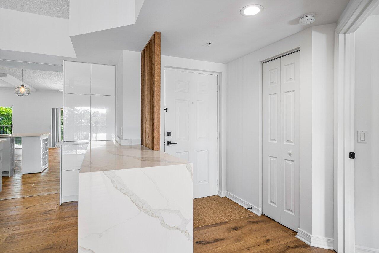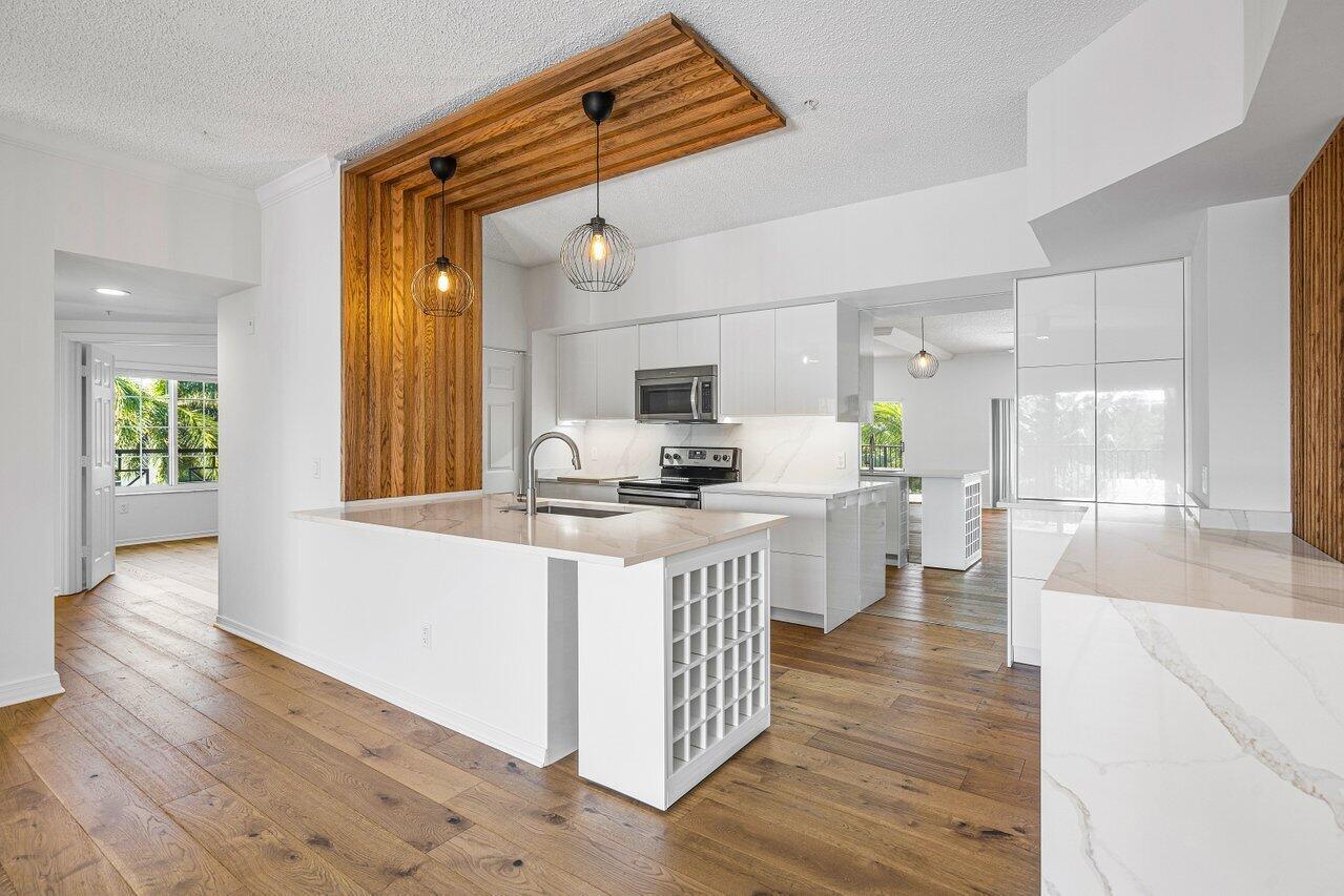 Sophisticated corner penthouse residence with walls of windows and timeless oak floors throughout. The reimagined open layout highlights a chef's kitchen with Stainless Steel Whirlpool Appliances, extended Golden Calcutta Quartz counters and custom cabinetry. Enjoy the convenience of an in-unit washer/dryer and relax on the expansive tiled patio with serene preserve views and accordion shutters. Thoughtfully curated design and refined finishes elevate this beautifully remodeled home.Amenities include clubhouse, pool, fitness, tennis, pickleball, library, picnic area, on-site manager. Plus Car Wash area by Bldg 4. Parking spaces: 620 (covered) & 878. Leasing ok, 2x/year, 3 month min. 2 pets allowed. AC 2018.