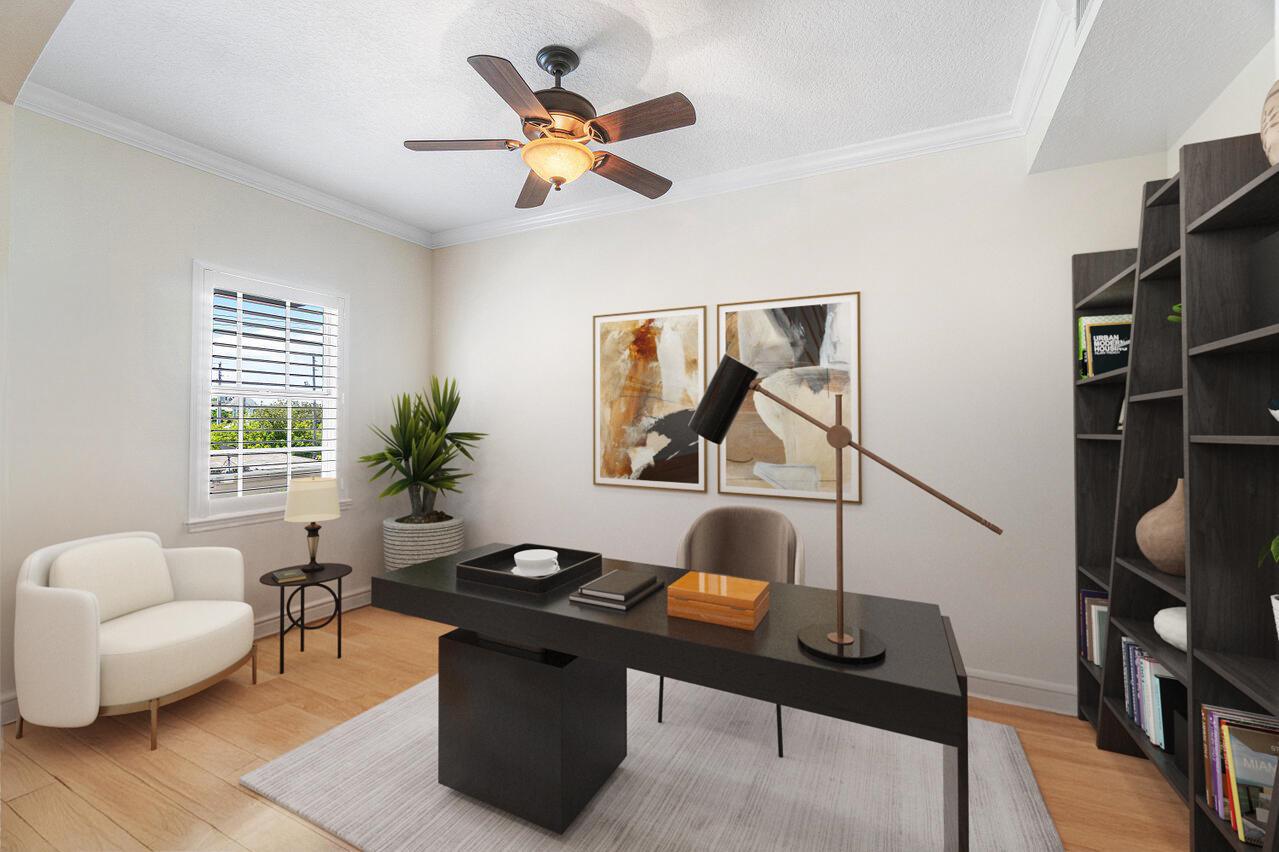 Experience the best of City Walk living in this rarely available corner unit. Its expansive, 2,200+ square foot layout and a large wraparound balcony make it feel more like a single-family home than a condo. Inside, the kitchen has been meticulously updated with new cabinets and gorgeous quartz countertops. The spacious primary suite is a true retreat, complete with a stunning en-suite bath. For peace of mind, all windows are impact-rated. Convenience is key with an assigned parking space right at your door and a large, private storage unit included. Enjoy the ultimate Delray Beach lifestyle with a short stroll to the vibrant shops, restaurants, and beautiful beach of Atlantic Avenue. 3rd bedroom is set up as office. (no closet)