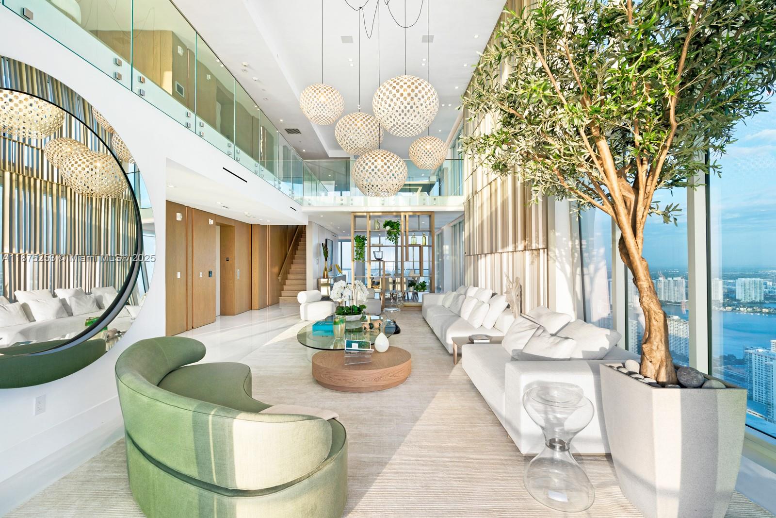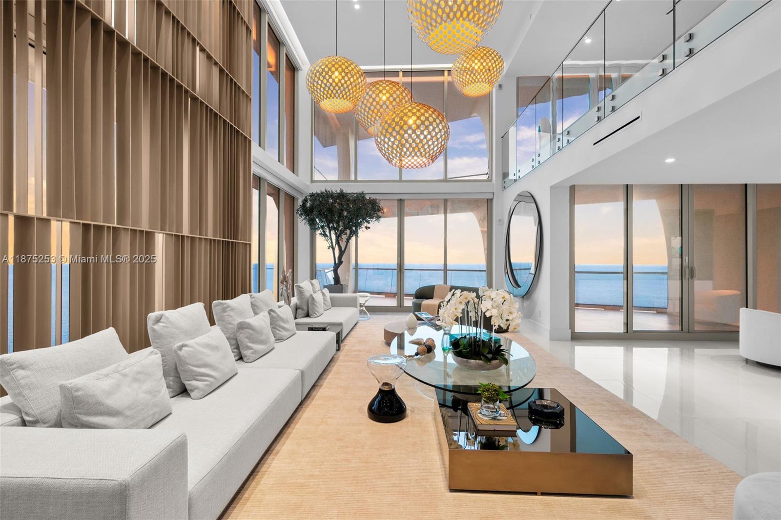 Welcome to Sky Villa 5105 at Jade Signature, a rare two-story residence in the sky curated entirely by Artefacto. Spanning over 6,500 SF, this 5-bedroom, 6.5-bath home offers soaring double-height ceilings, walls of glass, and seamless indoor-outdoor living with expansive terraces + service quarters. Every space is masterfully designed with bespoke finishes, custom millwork, and a private elevator. The oceanfront primary suite offers a spa-inspired bath and oversized dressing room, while a private elevator ensures effortless access. Residents enjoy resort-style amenities including beachfront service, world-class spa, fitness center, kids’ club, wine bar, valet, and full concierge. An unmatched lifestyle of elegance and ease awaits.