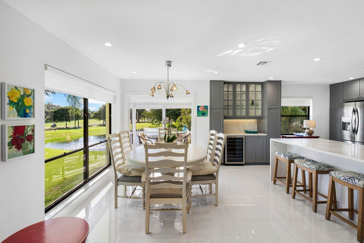Welcome to this beautifully updated second-floor residence featuring breathtaking views of 3 golf holes & serene lake views. This bright & airy home boasts gorgeous tile flooring throughout, enhancing the abundance of natural light that flows through the space.The open-concept kitchen has been thoughtfully updated, creating the perfect setting for cooking & entertaining. Custom built-ins in the dining area, including a wine cooler, provide both functionality and a touch of elegance.Relax and unwind in this meticulously maintained home, where every detail has been designed for comfort and style. Don't miss this opportunity to live in a home that combines luxurious finishes with picturesque views. Enjoy the Quail Ridge lifestyle with golf, tennis, pickleball & clubhouse. Offered furnished!