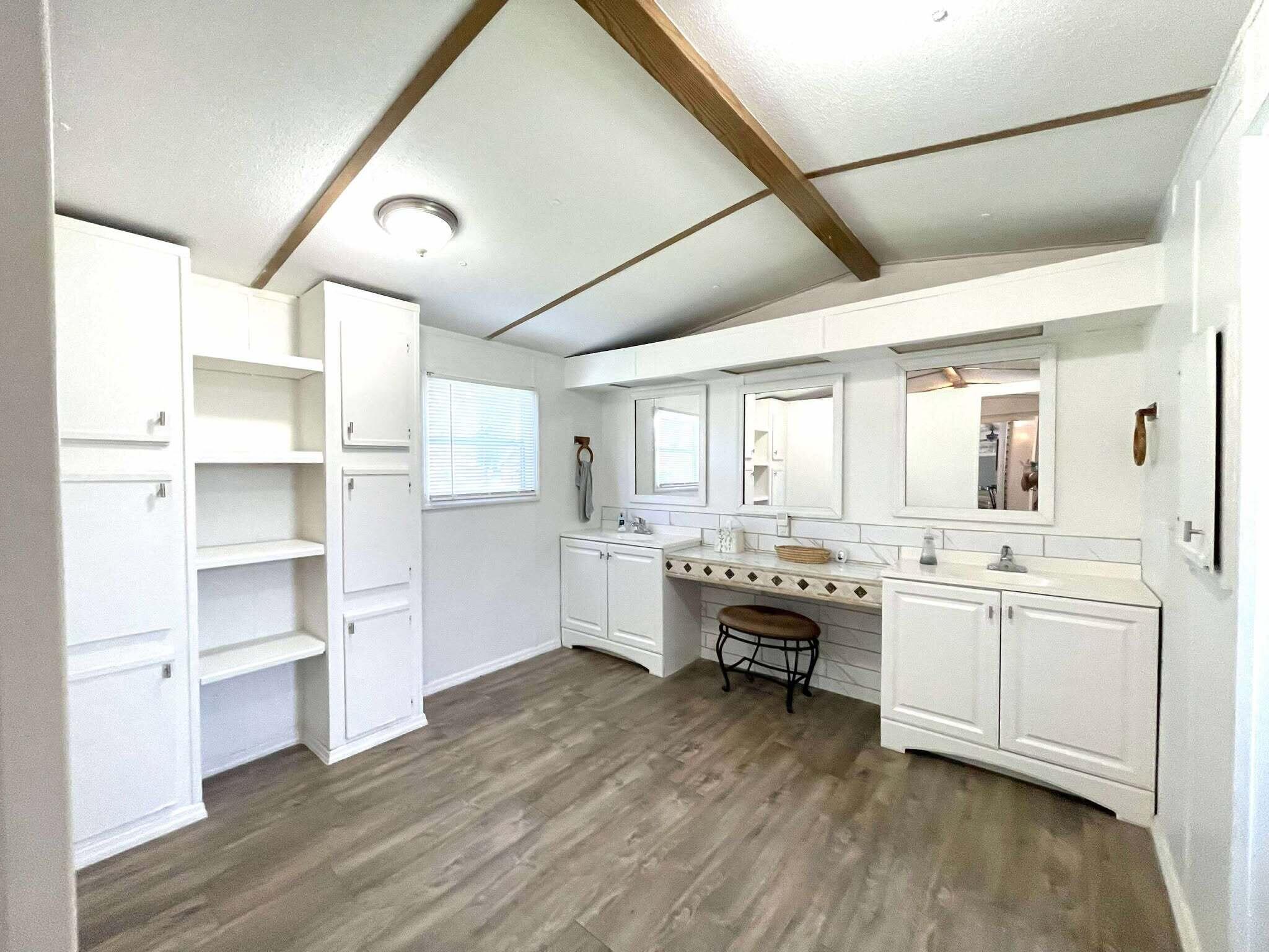 This gorgeous 2 bedroom, 2 bath split-floor plan manufactured home on half an acre has been totally renovated and is move-in ready. If you've been waiting for the perfect mix of country charm +modern updates! Spacious open layout with a split bedroom design for privacy.Massive master suite with spa-like en suite bathroom. Newly updated kitchen + stylish new flooring = modern farmhouse vibes. Huge 12x24 detached shed/metal building for storage, workshop, or toys.Brand new well pump! A Water treatment system. Brand new 3-ton A/C. Ample cement driveway parking for RV / Boat.Roof coated just 2 years ago. Backyard backs up to a peaceful and beautiful wooded ranch. Wake up to wide open views and fresh country air. Whether you're looking for your forever home, or a seasonal retreat.