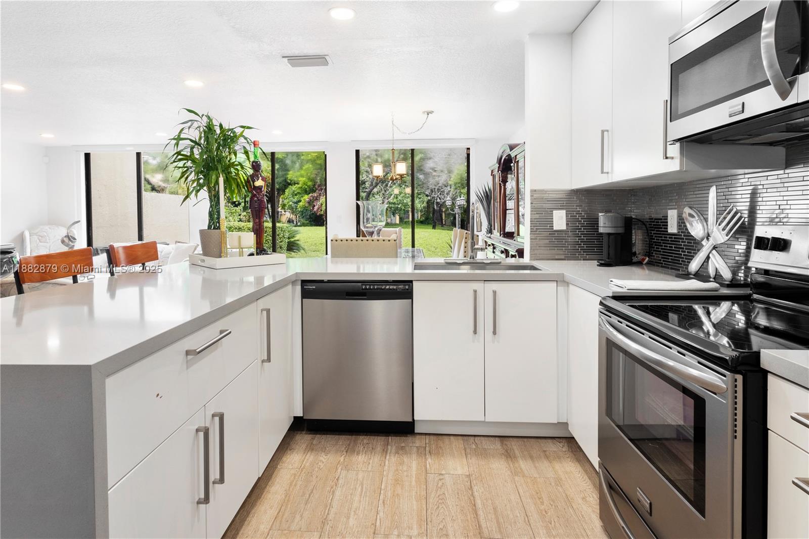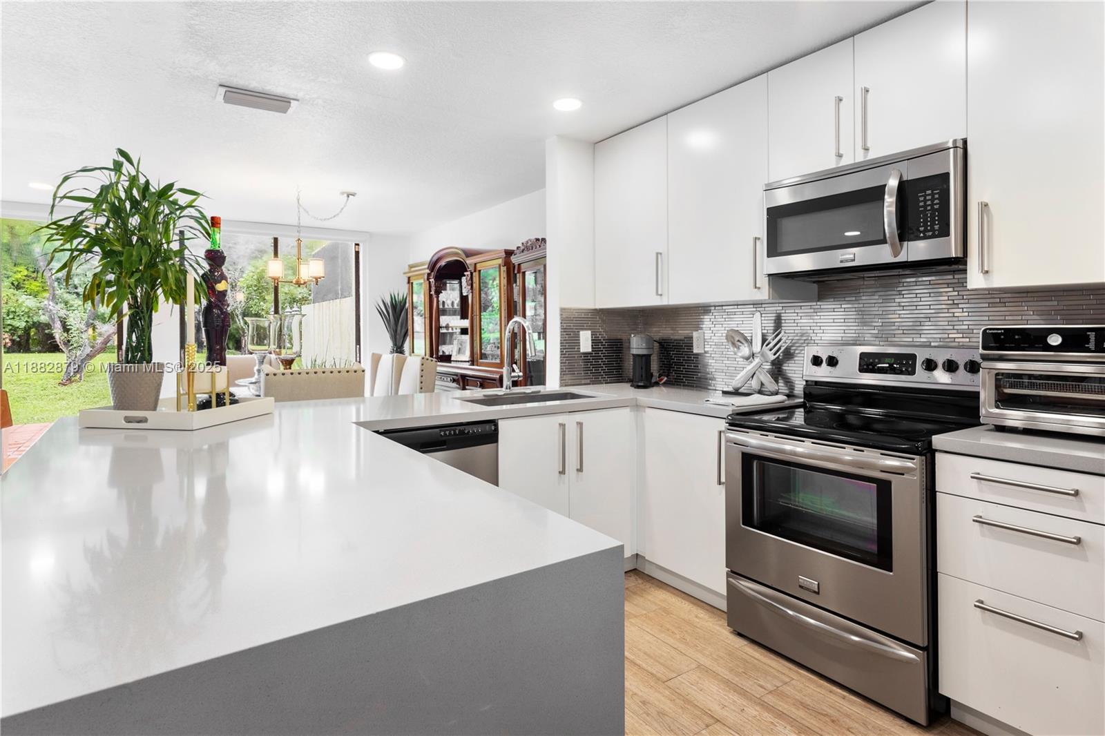 Stylish townhouse in the heart of Doral, offering 3 spacious bedrooms, 2.5 bathrooms, and 1,712 sq ft of modern living. The home showcases updated finishes, sleek stainless steel appliances, and an electric water heater. Enjoy the convenience of two private driveway spaces plus guest parking. Nestled within a gated golf community surrounded by lush greenery, serene lakes, and natural beauty. Residents can indulge in top-tier amenities including a pool, clubhouse, tennis and basketball courts, playground, and more. Ideally located just minutes from Doral Central Park, City Place, shopping destinations, and a wide selection of dining options.