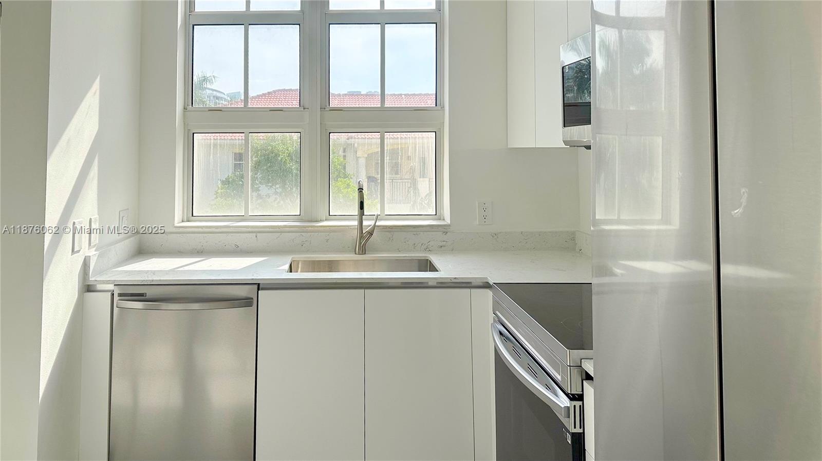 Unique & modern 3-bedroom, 2-bath corner unit at Alaqua, beautifully updated with porcelain floors, a redesigned kitchen with premium appliances, and elegant finishes. The bright open layout with 10-ft ceilings extends to a private balcony overlooking the waterway. Features include granite countertops, walk-in shower, Roman tub, double vanities, full-size washer/dryer, and ample storage. Alaqua offers resort-style amenities: Mediterranean courtyard, oversized pool and spa, fitness center, clubhouse, marina, valet, 24/7 security, and covered parking. Maintenance covers cable, internet, and water. Ideally located near Aventura Mall, dining, schools, houses of worship, beaches, and parks.