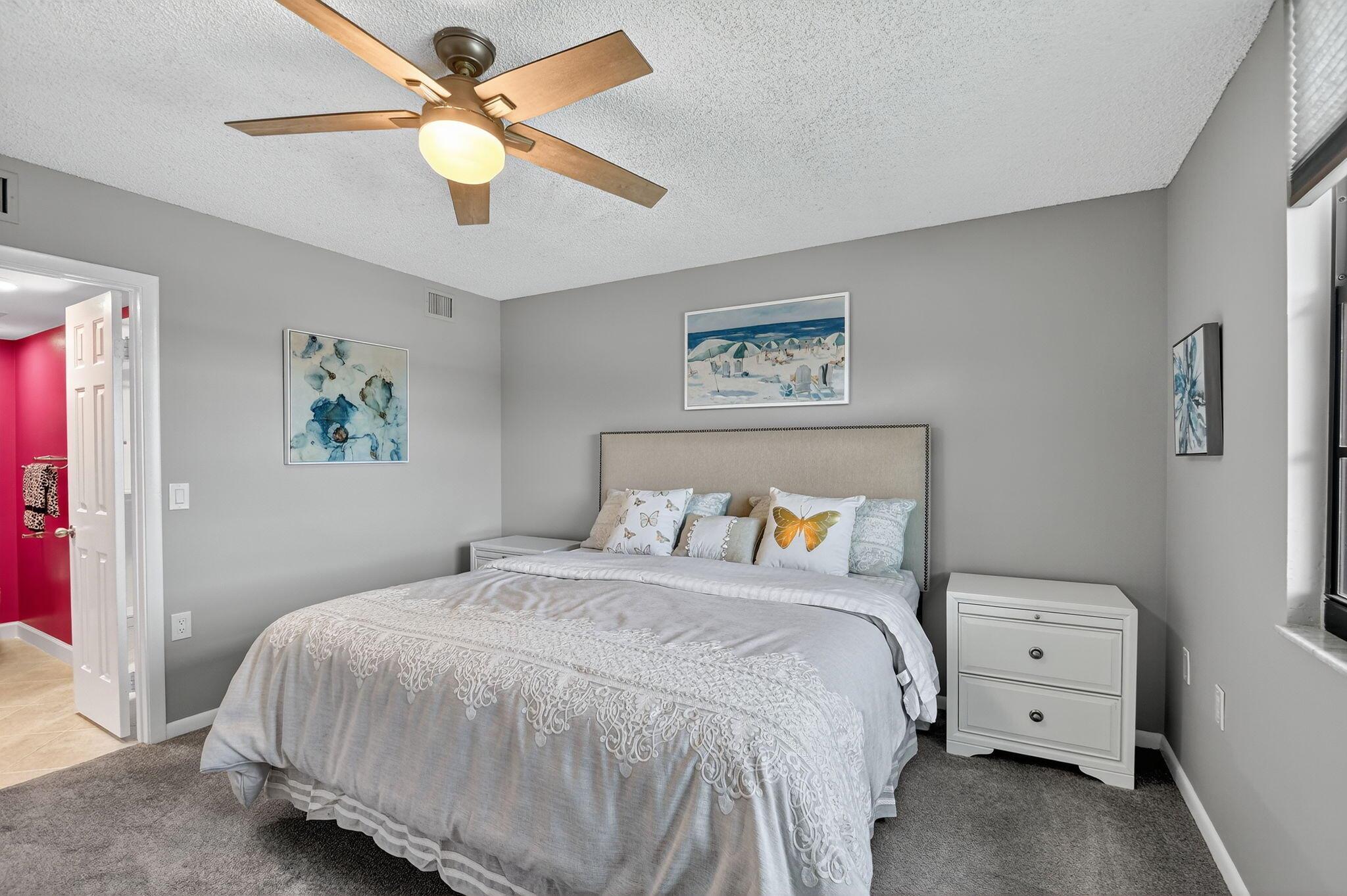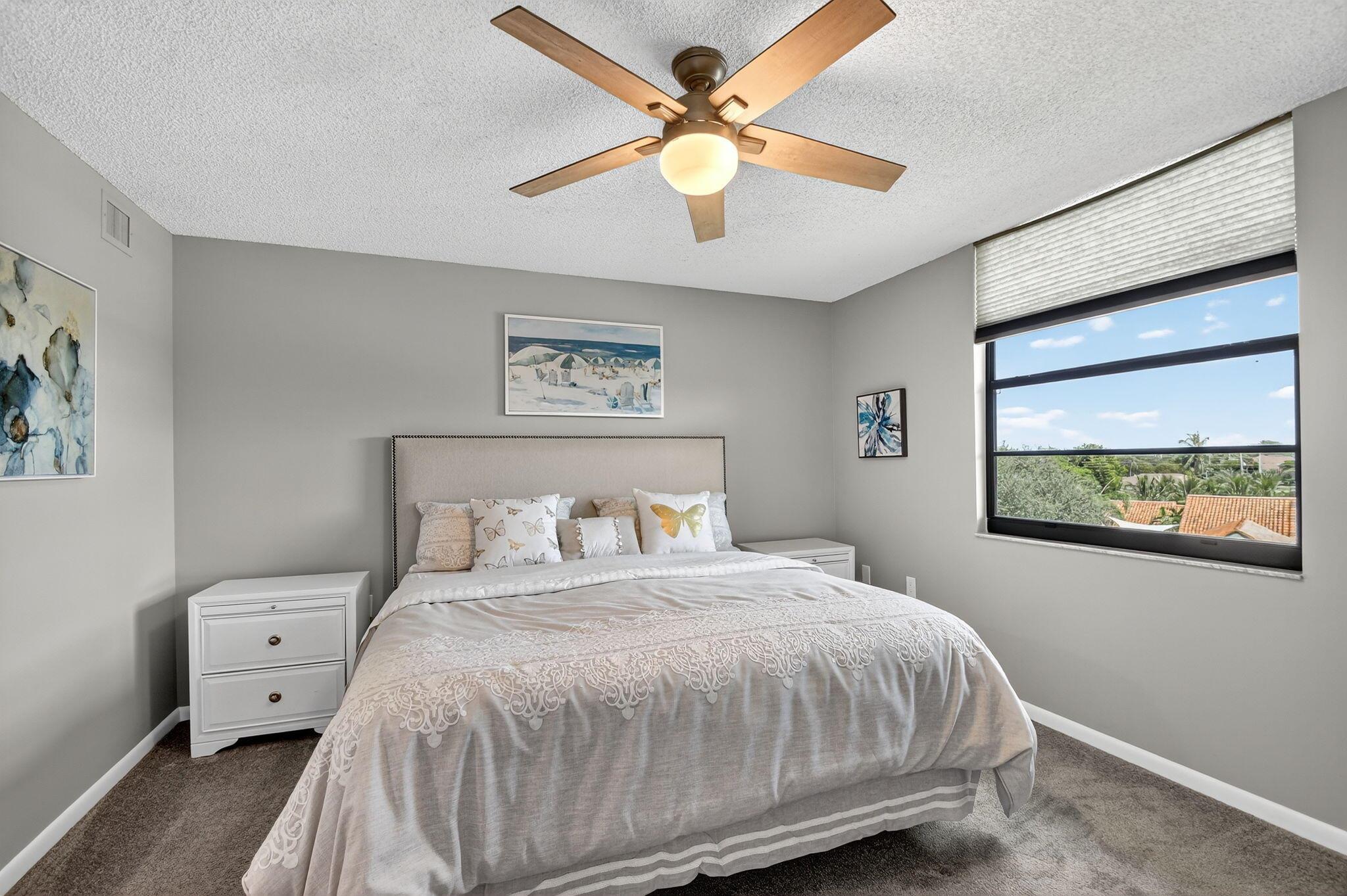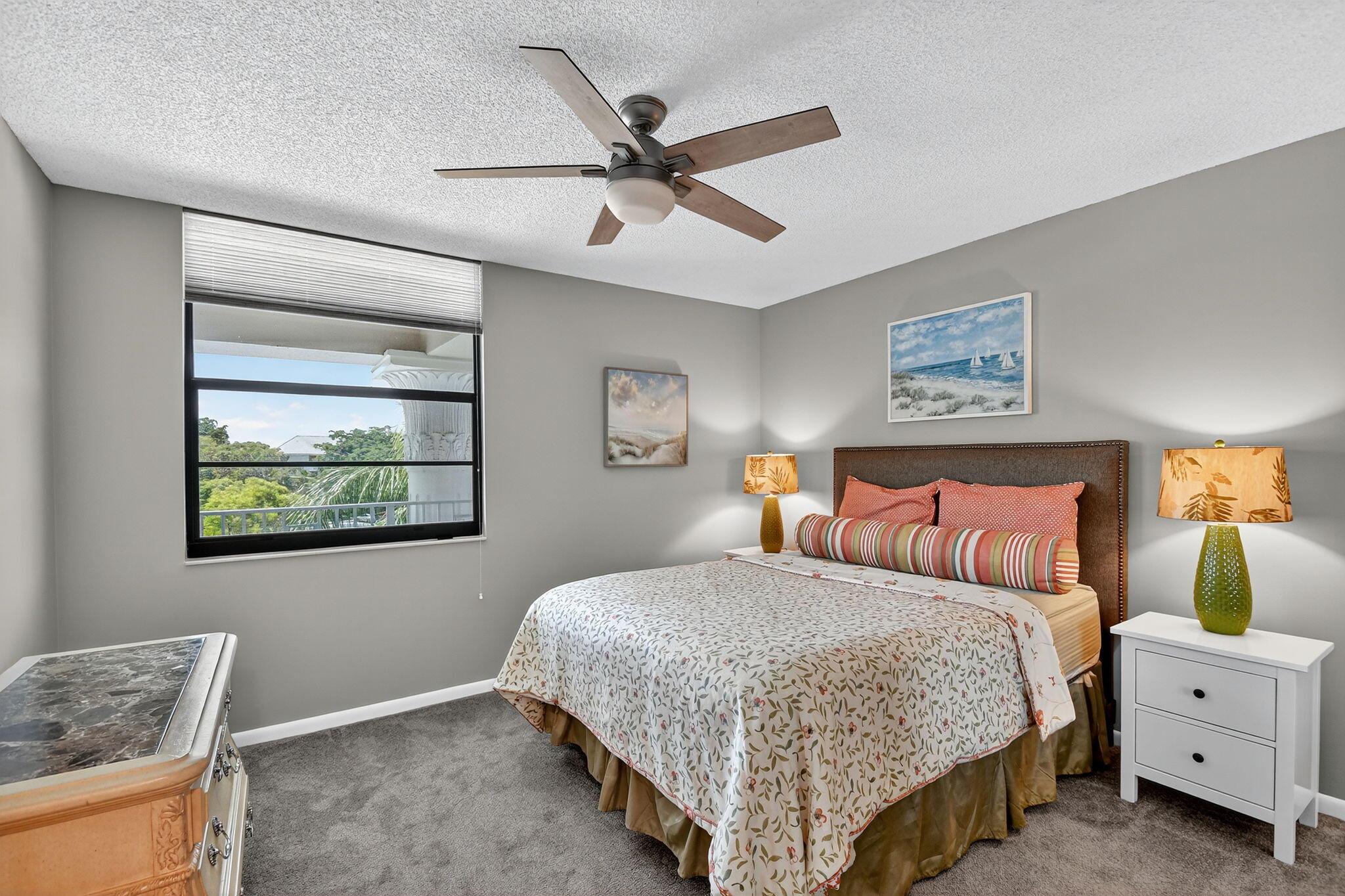 One of most desirable units at Whitehall! Top floor with spectacular lake views! Unit is highly updated with newer paint, carpet, impact windows, hot water heater and A/C. Other great features are open design kitchen with granite counter tops and no floating cabinets. Master bedroom has custom closet with plenty of storage. Second bedroom is like a separate apartment with a private entry and bathroom. Utility area has a laundry sink and second refrigerator. Extra room can be used as an office and for storage. The building has elevator access. The Whitehall community is gated and located adjacent to Dutchman's Pipe world class golf club and resort. Great location near shopping, restaurants airport, downtown, outlet mall and ocean.