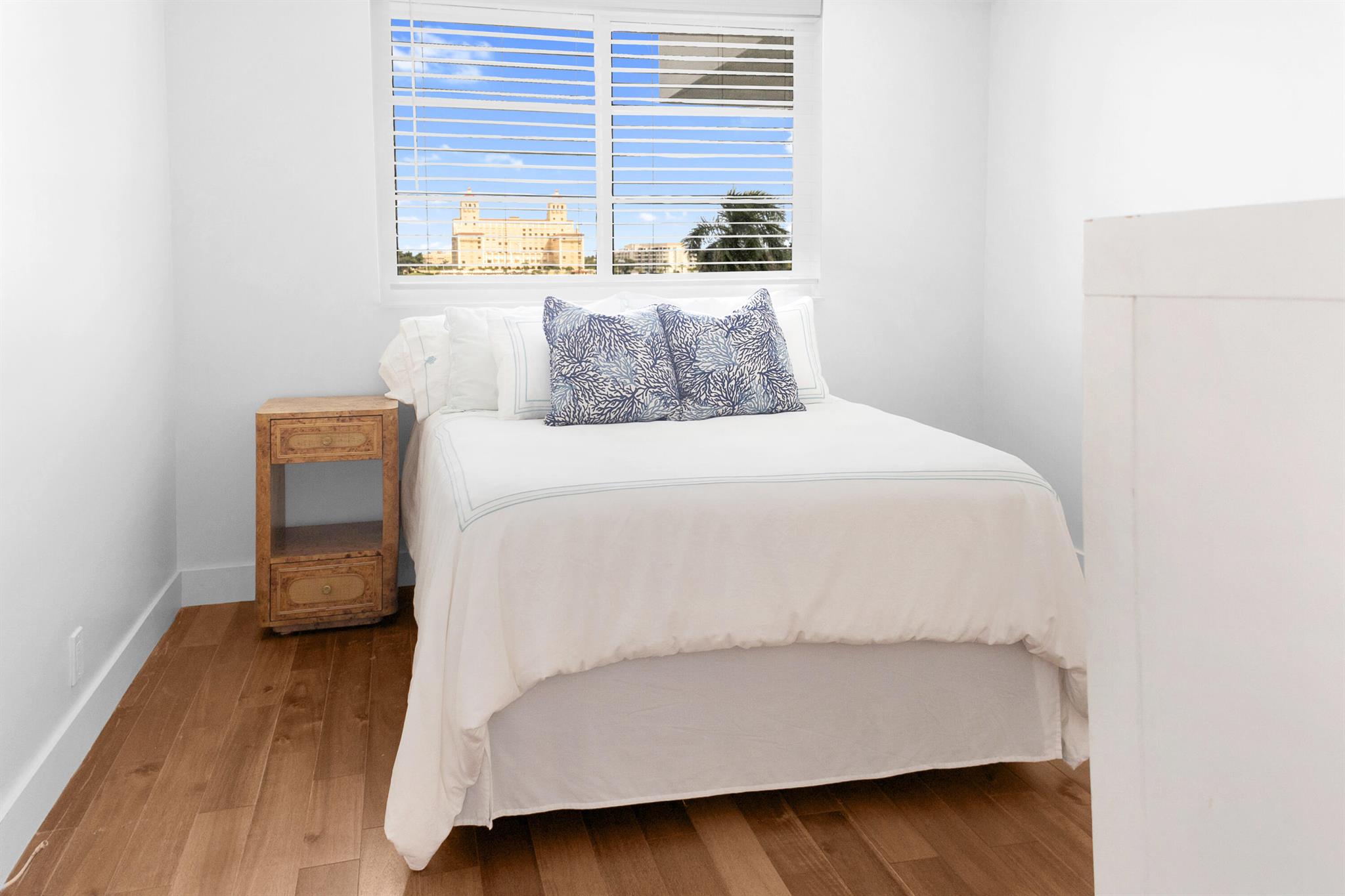 Renovated condo with direct east facing views of the Intracoastal and Palm Beach! Open and airy with a tropical feel, the space is a calm retreat that also exudes classic charm for entertaining. Completely updated kitchen and baths, new flooring, open living area, 2 spacious bedrooms with en suite baths, walk in closets, exclusive parking, pristine swimming pool, open air hallways and stairs as well as lobby and elevator.