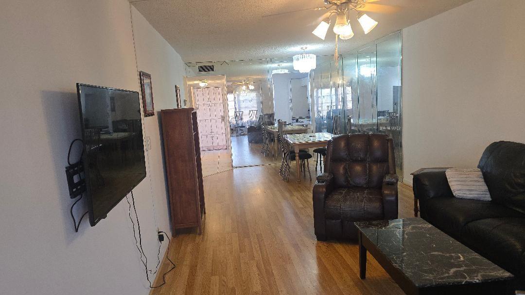 Beautiful Spacious, 1 bedroom, 1.5 bath unit with a large enclosed balcony. This unit is one of the largest in the community. large kitchen with stainless steel appliances, laminated wood floors through. This is an age 55+ community, well kept complex with resort style amenities, including two large pools, tennis court, barbeque area and Gym. Close to shopping, restaurants, public transportation and major highways. Shows very nice and clean ready for a new owner easy to show.