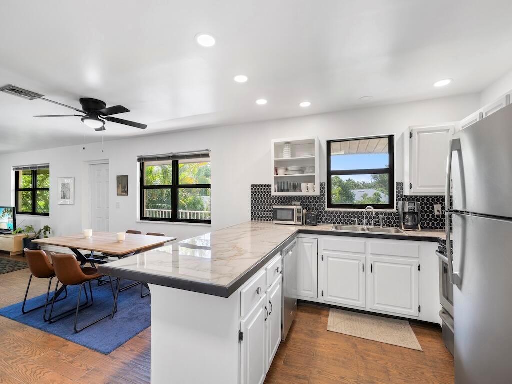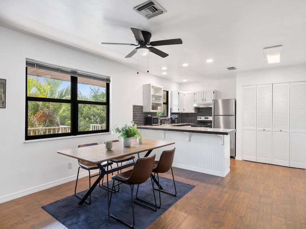 OPEN HOUSE 11/15 from 12-2!! Just Two Blocks from the BEACH! PRIME Location on Hutchinson Island, where A1A ends in a community that directly borders the Fort Pierce Inlet State Park--340 acres of protected land and pristine coastline--this beautifully renovated 2-BR, 2-bath condo w/ new hurricane windows and sliding door, offers the ultimate coastal lifestyle. Only a 4-unit complex, walking distance to a secluded beach, was built with CBS construction and topped with a 2023 roof. The community is just moments from boat ramp, fishing piers, kayak launches, and local favorite, Little Jim's, setting the tone for a laid-back, island rhythm. Step onto your private balcony to take in lush, tropical views from this elevated second-floor condo.
