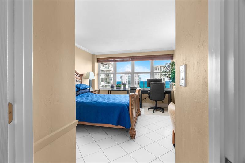 Beautiful one bedroom and one bath ocean view apartment offers an unmatched blend of luxury, comfort and convenience with large porcelain tile flooring and an updated stainless steel kitchen appointed with granite counters. Wake up to breathtaking sunrises, from the expansive glass balcony that frames the stunning ocean view, bringing the serene outdoors in and filling your home with natural light. Coral Ridge Towers offers all the conveniences of beachside living, with the added peace of mind of 24/7 security and professional onsite management. This 55+ Co-Op community is located on the barrier island with shopping, grocery stores and restaurants close by. The building offers an array of great amenities including a heated pool surrounded by tropical landscaping, exercise room and more.