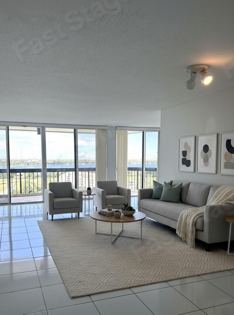 This spacious 2/2 corner unit with million dollar views from the 17th floor overlooking all of north Palm Beach county. 2 Balconies, from every room. Convertible 2nd Bedroom with owner willing to install a wall to close it off. All shiny white tile throughout the unit with fabulous light coming in. spectacular views and location. Won't last long. Overlooking Dutchmans Pipe private golf club and new Belgrove hotel,just minutes to downtown,beaches,PBIA and walking distance to Tanger outlets with shopping and dining.