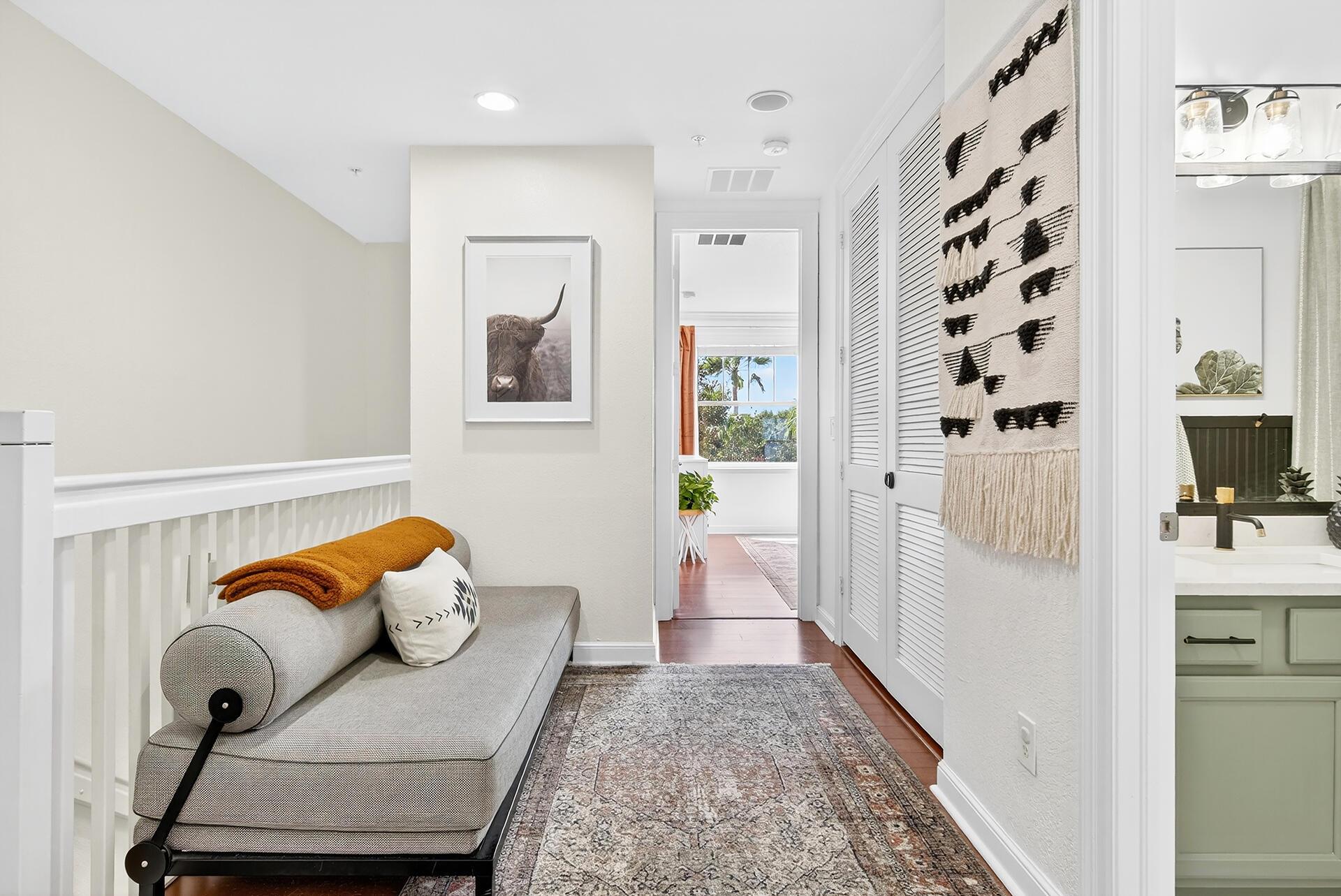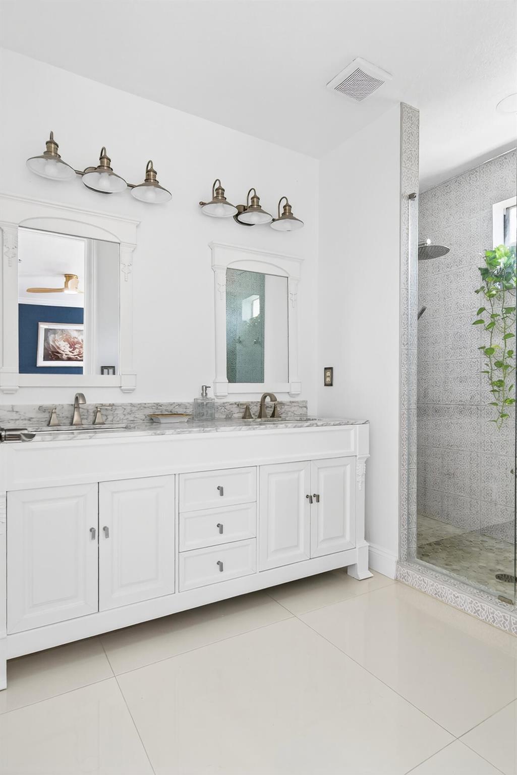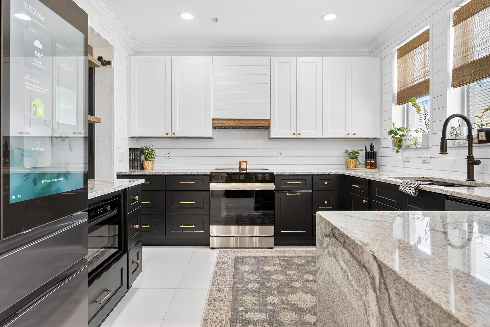 Stunning! Thoughtfully upgraded 4 bed 3.5 bath corner unit offers bright, open living with soaring 10' ceilings & tons of natural light. Features 32'' white tile & wood floors, crown molding, accent wall entry, modern fans, HUE lights, Nest thermo, etc. BRAND NEW kitchen is a showstopper, boasting granite waterfall edge with bar seating, slow-close cabinetry with 42'' uppers, open shelves, shiplap siding, black work station sink, & spacious pantry with a sliding barn door. Outfitted with top of the line Samsung Bespoke appliances, including a Family Hub touchscreen refrigerator & 3-drawer wine/beverage cooler, this kitchen is both stunning & smart. All bathrooms have been beautifully updated with new floors, counters, sinks, toilets, lighting & fixtures. New Bespoke W/D. 2 car garage.