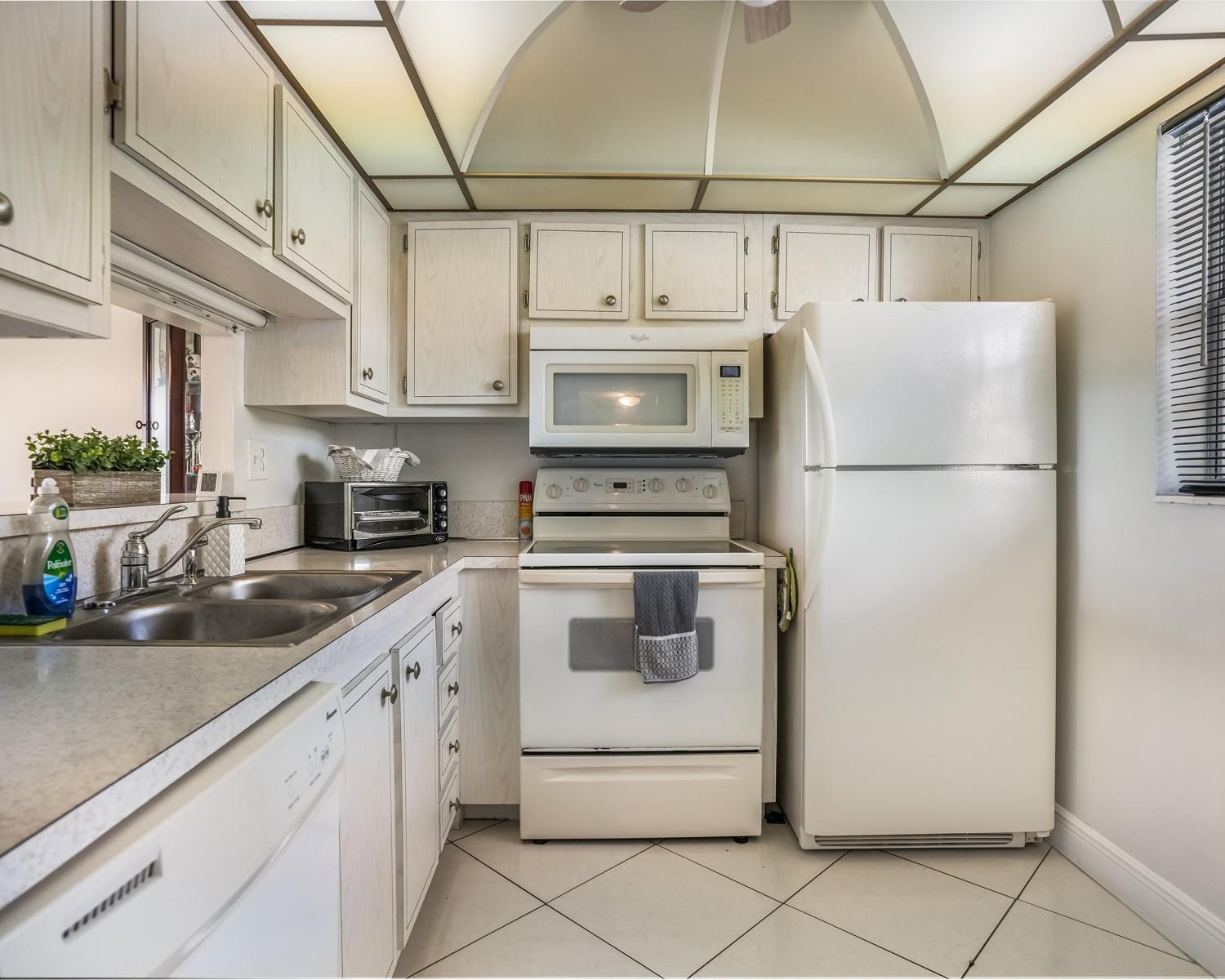 Discover this charming 1 bed, 1 bath home in 55+ Poinciana Gardens. Enjoy serene lake views from the enclosed patio, perfect for relaxing or entertaining. The immaculately kept kitchen, bathroom, and flooring serve as the perfect blank slate for your dream renovations. This lovely residence combines comfort and style in a vibrant community. Don’t miss your chance to make this beautiful home your own—schedule a visit today!