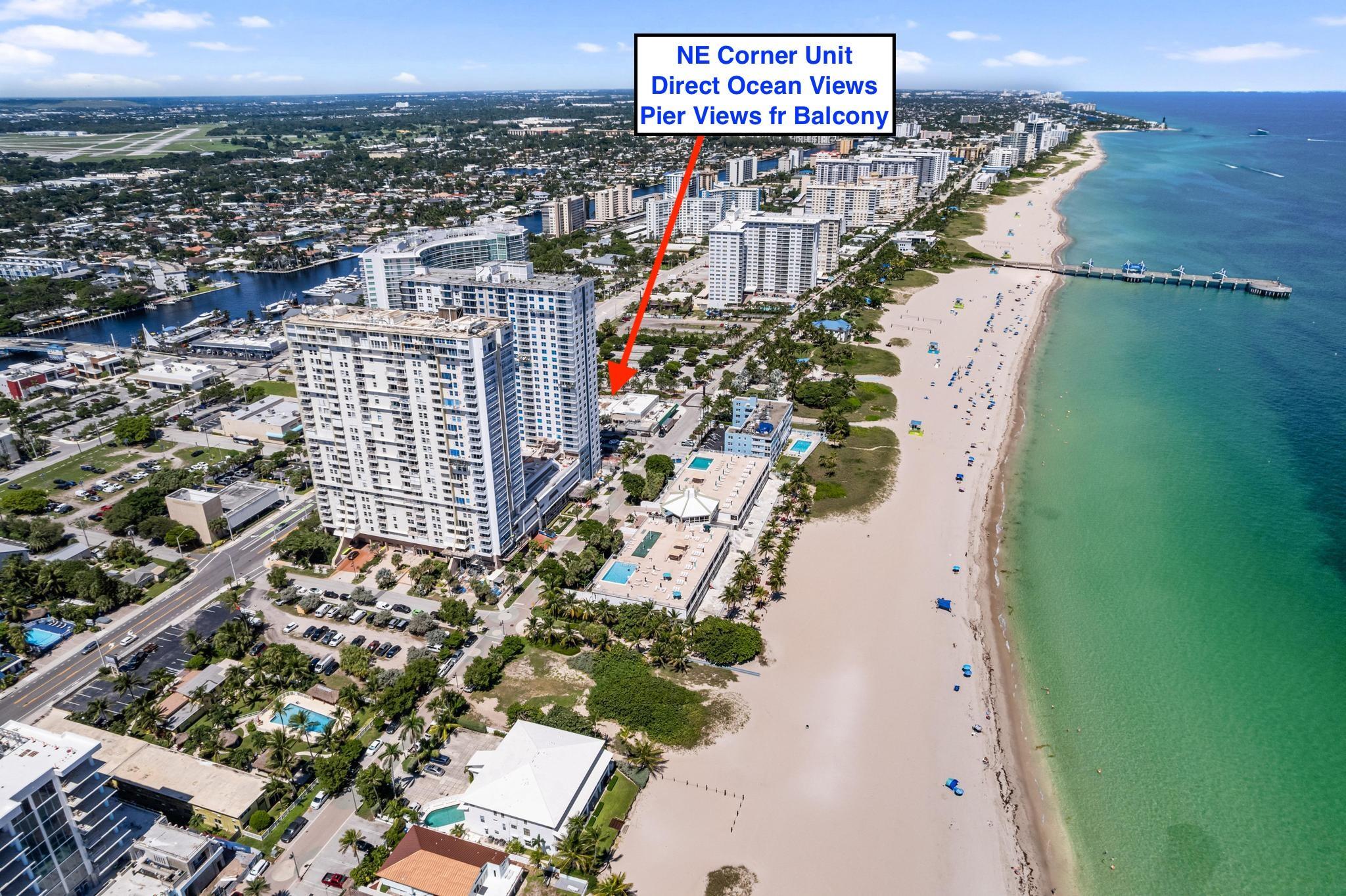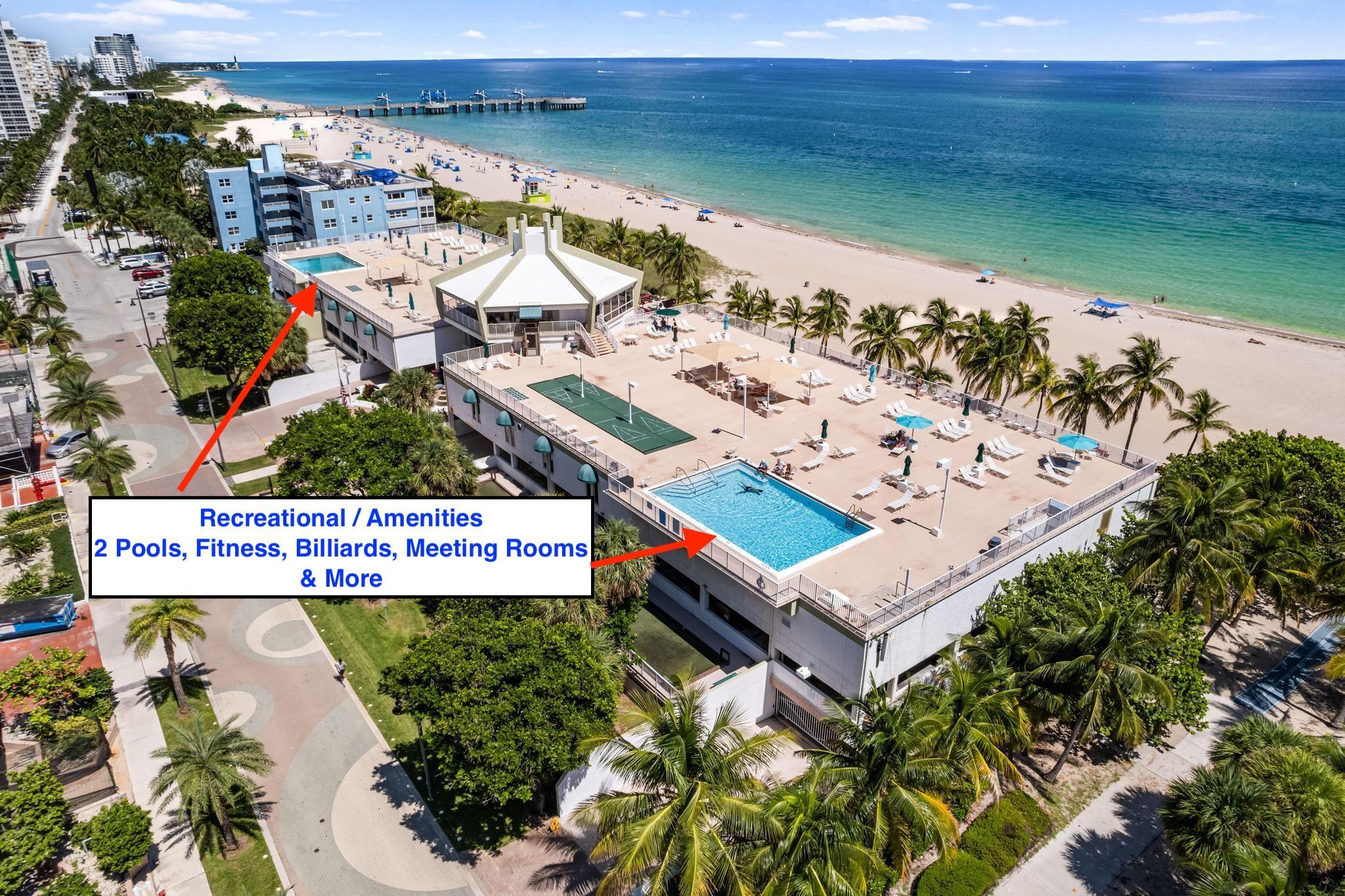 Welcome to this Private Waterfront Community with Direct Ocean Views! Located on the 7th floor this Northeast Corner 2 bd/2 bath unit is overlooking the Atlantic Ocean and Pompano Bch Pier. Walk to beach,4- Story Recreational Center/Amenities across street on the Beach. Assigned garage parking, 24/7 security on site.A fabulous recreation center multiple game rooms, 2 heated swimming pools, 2 exercise rooms, an amazing private Bottle Club/Cafe on the top floor with Panoramic Atlantic Ocean views.