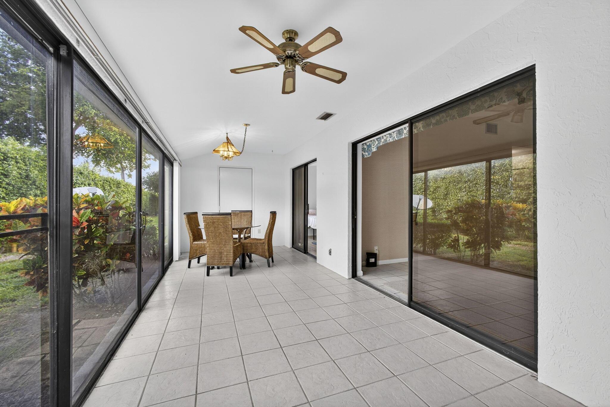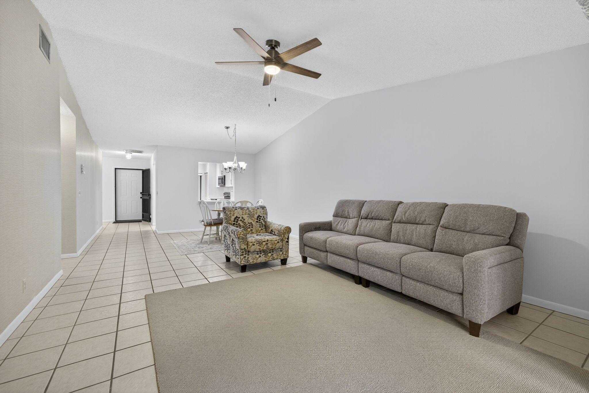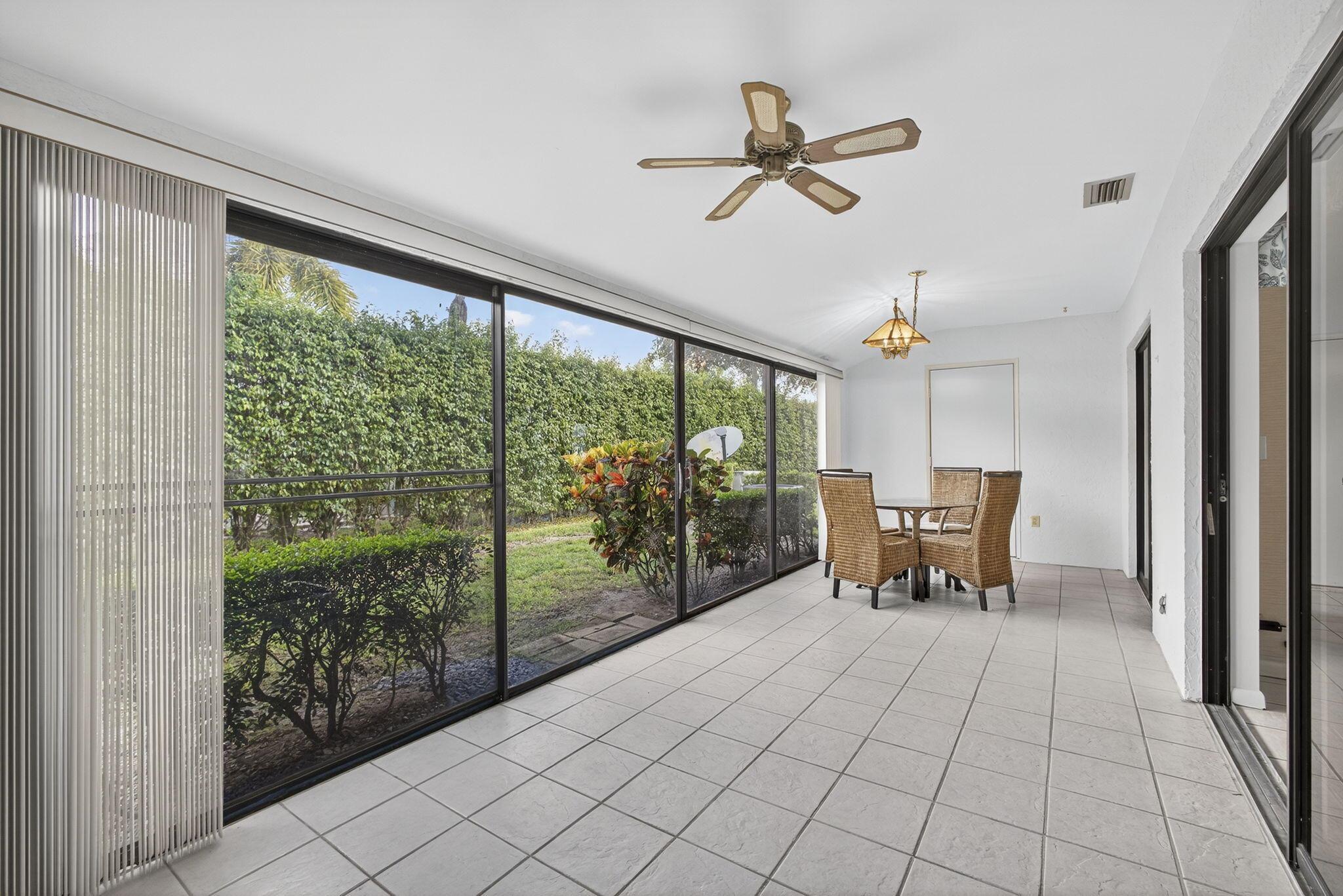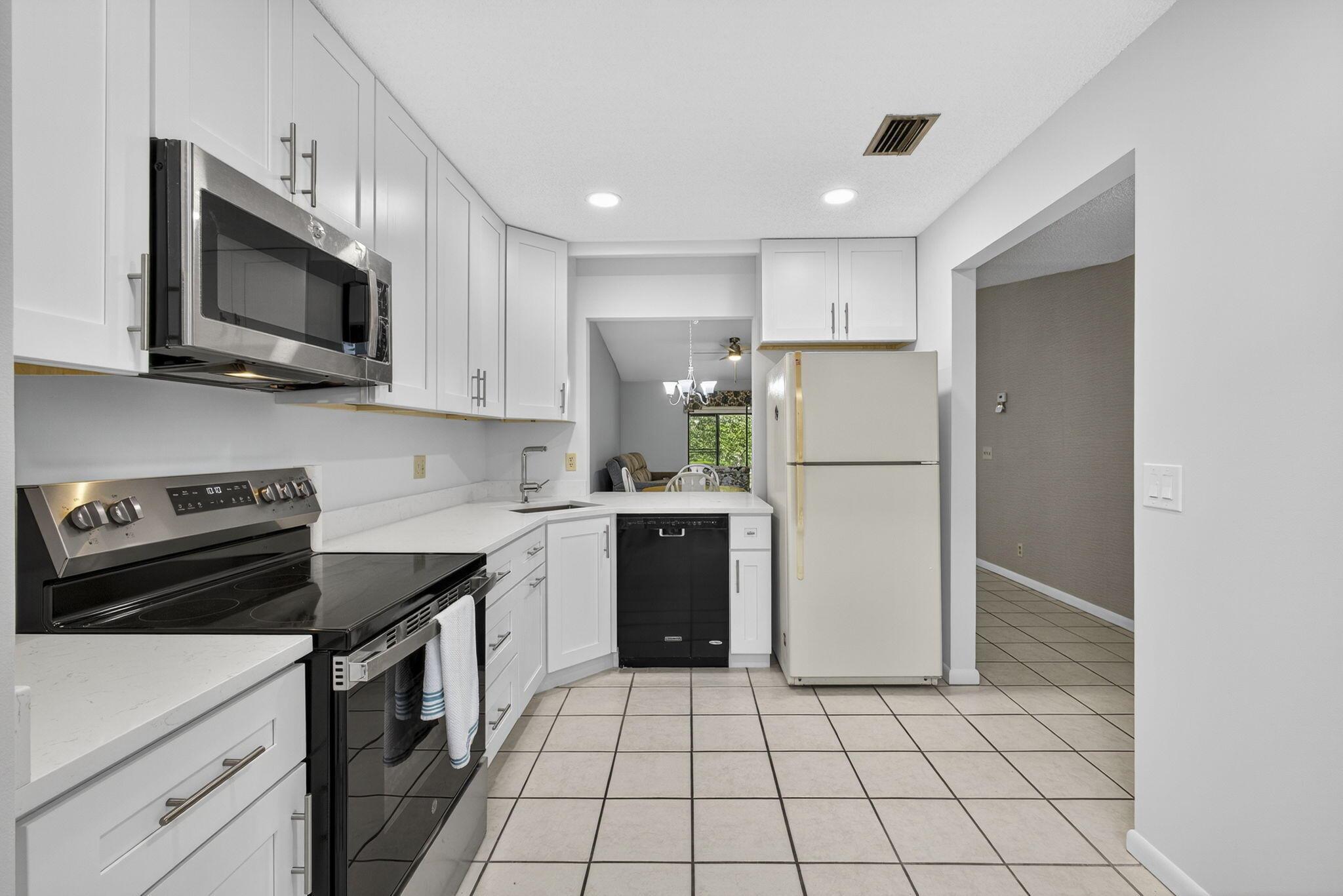 Welcome to The Arbours, a desirable 55+ community offering a relaxing lifestyle with amenities that include clubhouse, pool, and tennis courts. This beautifully updated 3-bedroom, 2-bathroom split floor plan villa features a 1-car detached garage with additional parking right outside your door. The remodeled kitchen boasts stainless steel appliances, Quartz countertops, and white shaker cabinets, creating a bright and modern space. The home is completely tiled throughout and includes a remodeled guest bathroom, impact windows (2021), and walk-in closets in every bedroom. The spacious Florida Room is perfect for entertaining and conveniently includes the laundry room with a full-size washer and dryer. Recent upgrades, new roof 2022, A/C 2022, water heater 2024