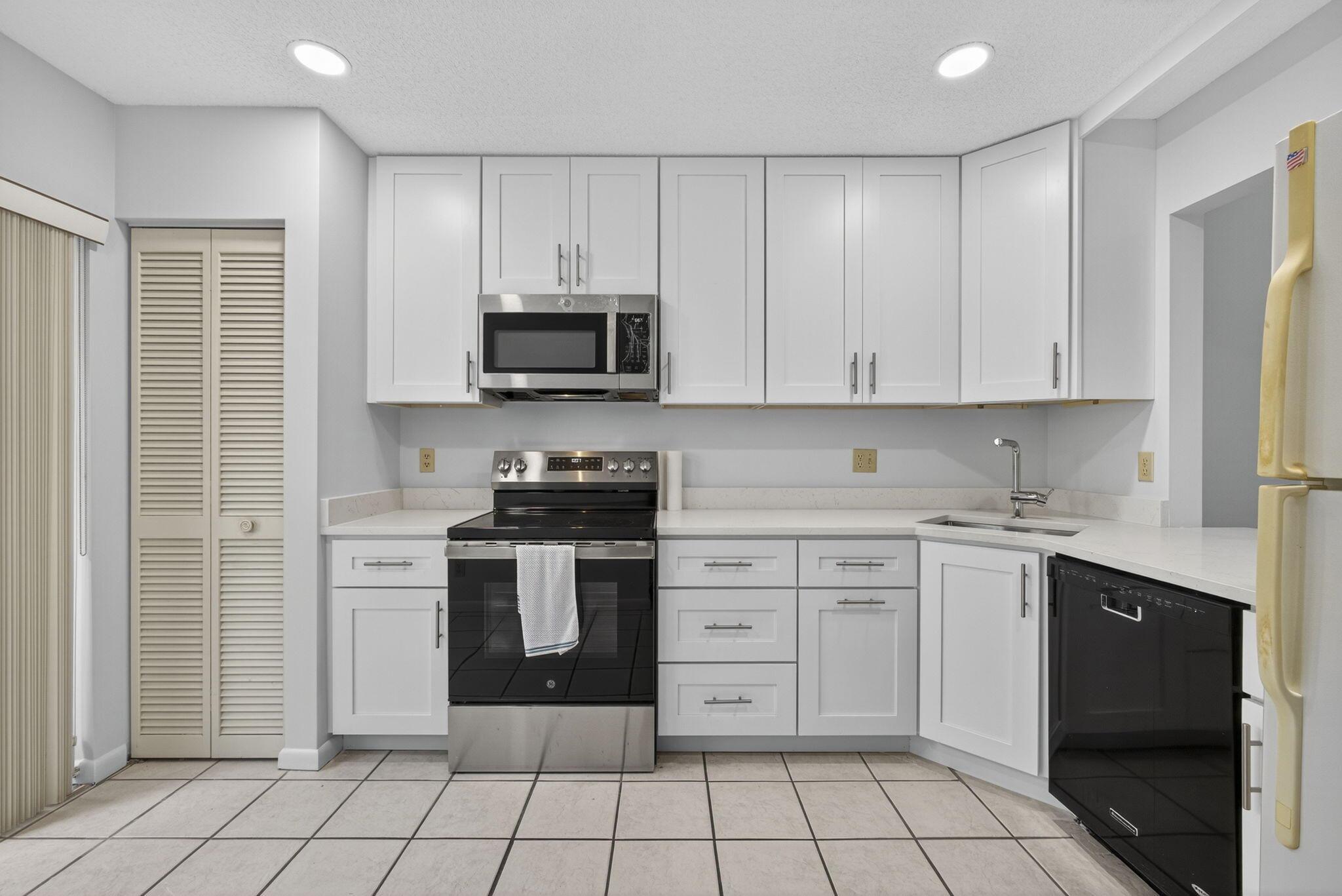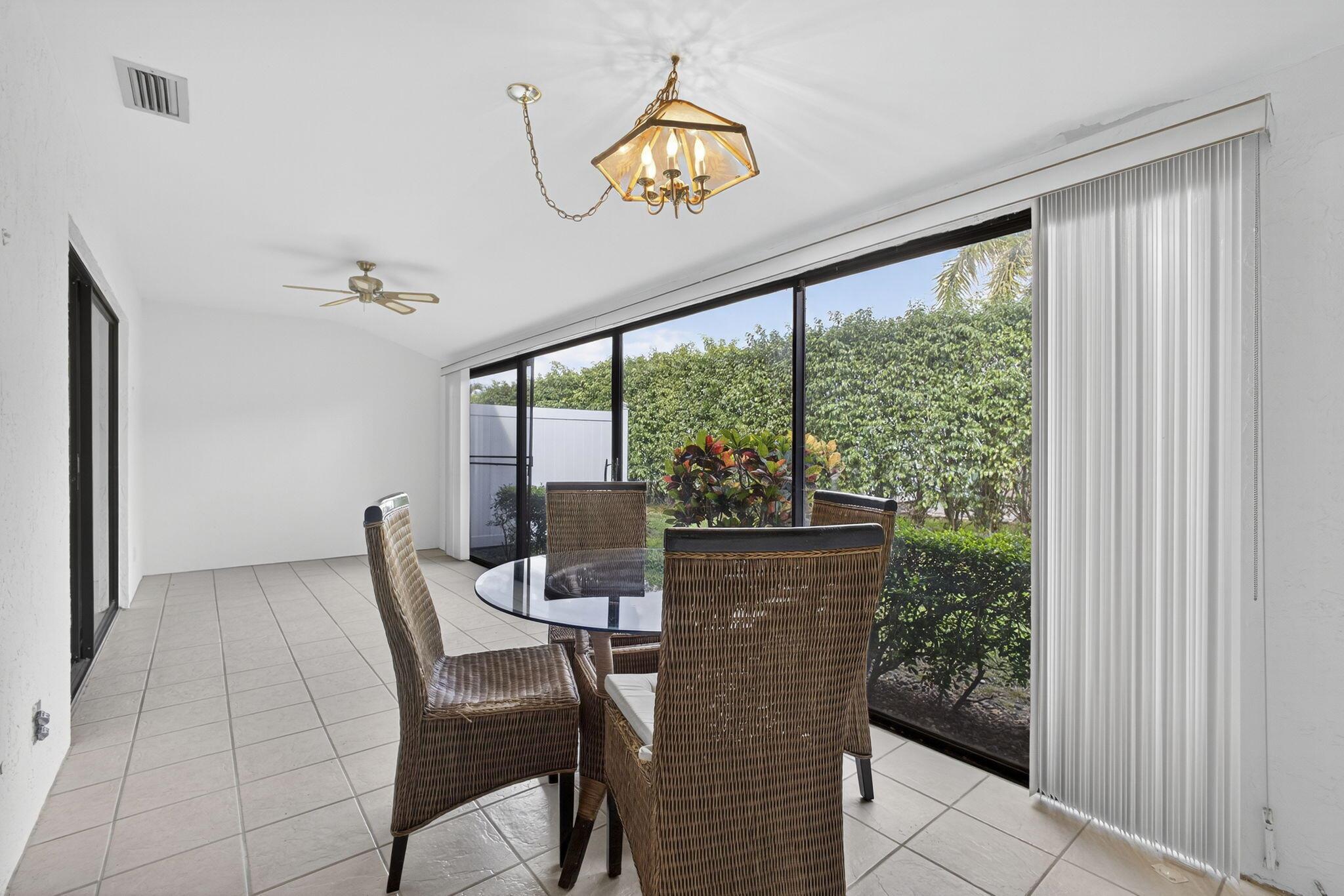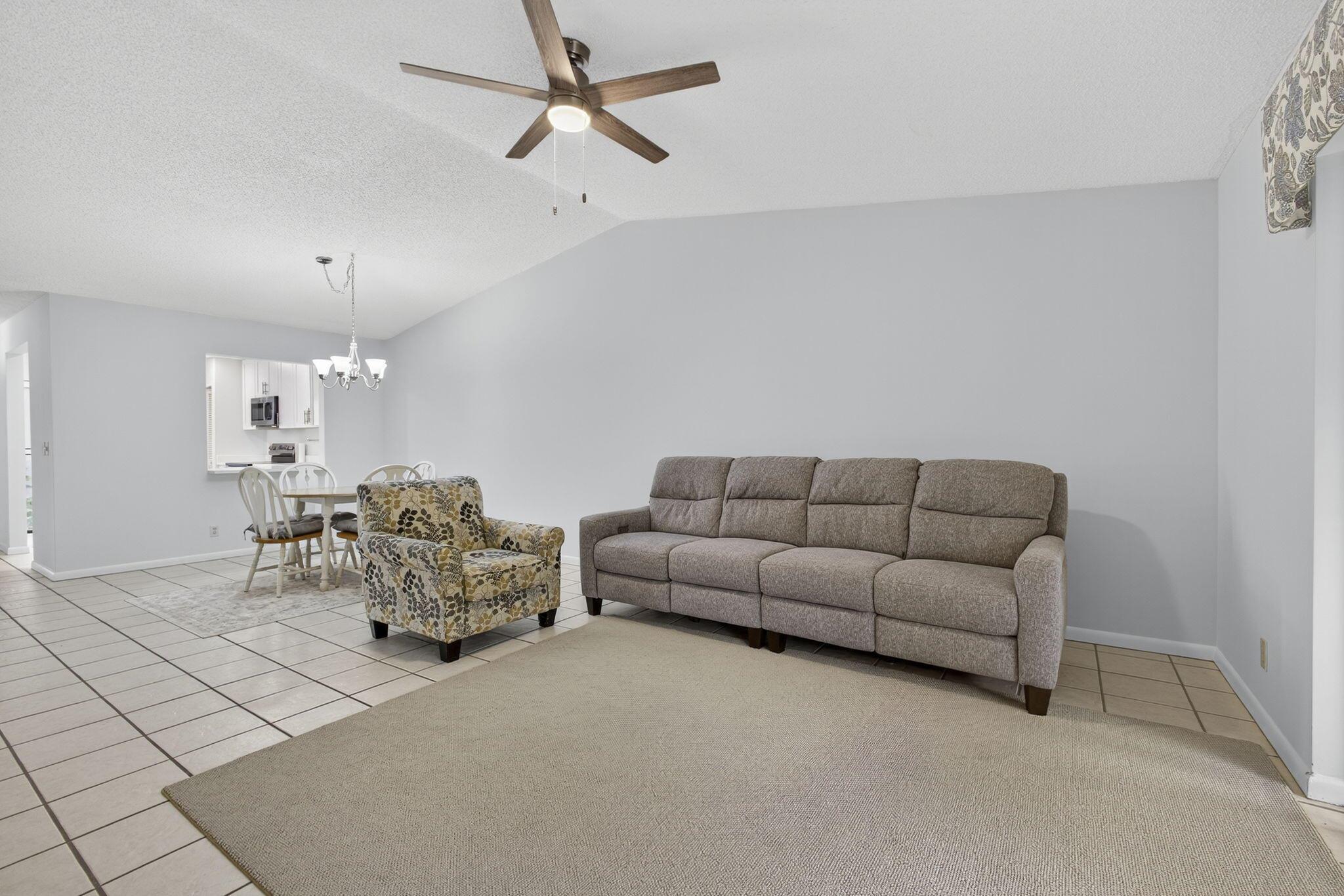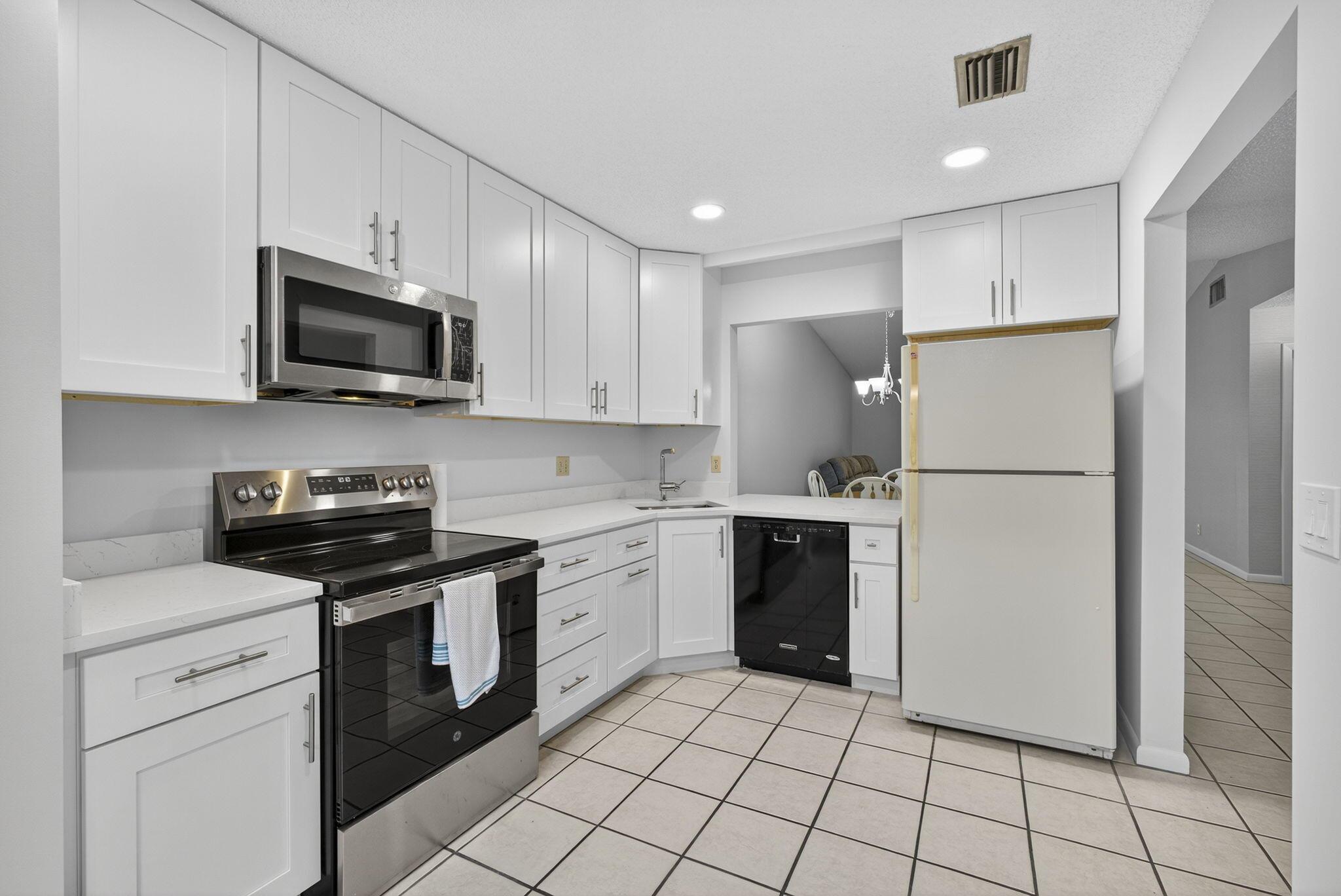 Welcome to The Arbours, a desirable 55+ community offering a relaxing lifestyle with amenities that include clubhouse, pool, and tennis courts. This beautifully updated 3-bedroom, 2-bathroom split floor plan villa features a 1-car detached garage with additional parking right outside your door. The remodeled kitchen boasts stainless steel appliances, Quartz countertops, and white shaker cabinets, creating a bright and modern space. The home is completely tiled throughout and includes a remodeled guest bathroom, impact windows (2021), and walk-in closets in every bedroom. The spacious Florida Room is perfect for entertaining and conveniently includes the laundry room with a full-size washer and dryer. Recent upgrades, new roof 2022, A/C 2022, water heater 2024